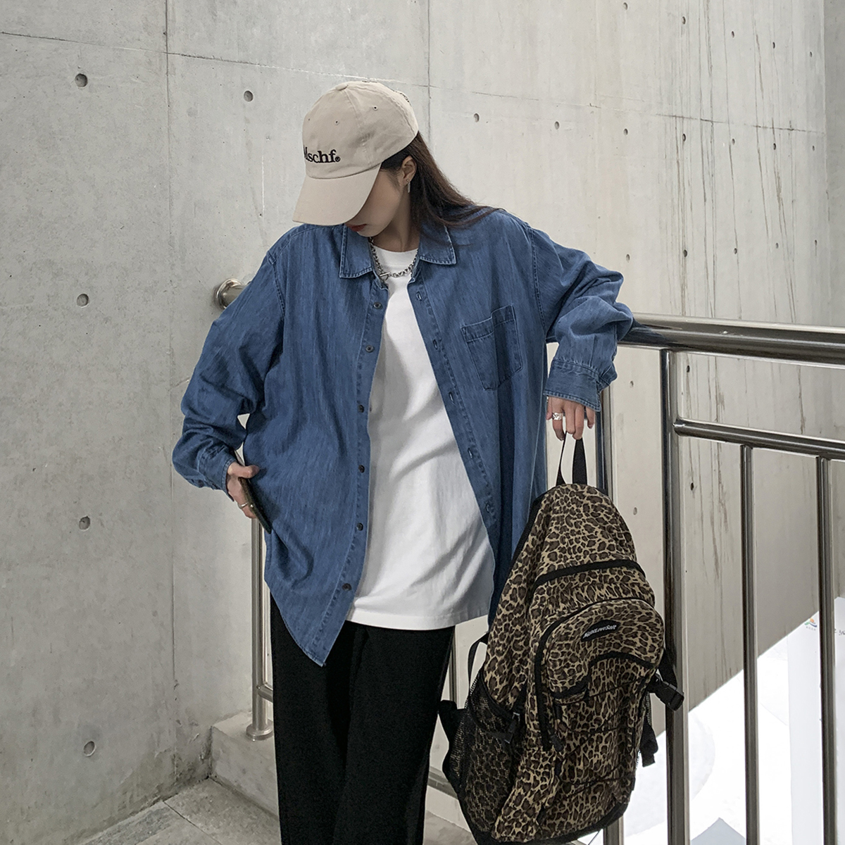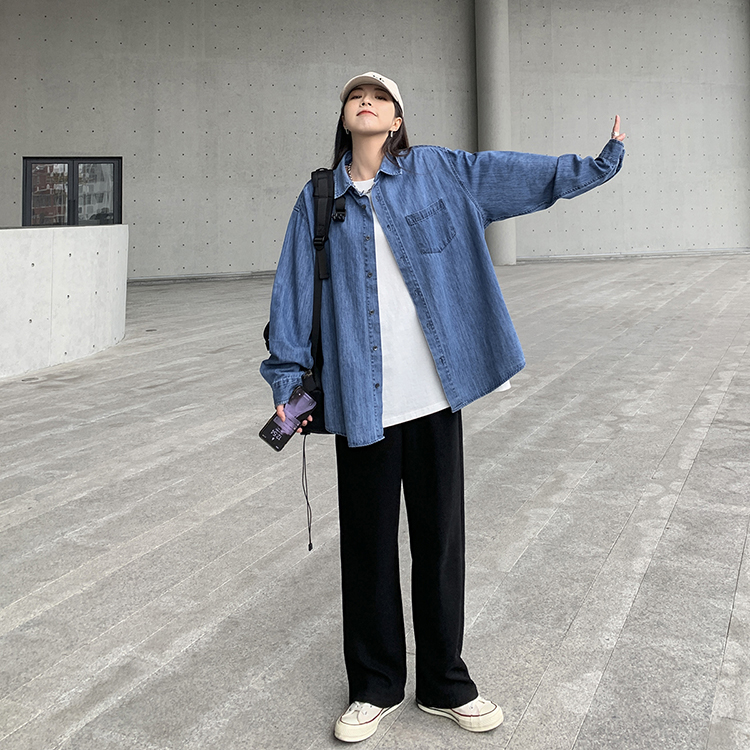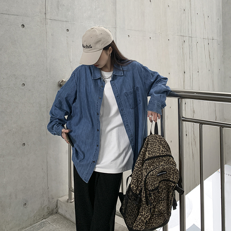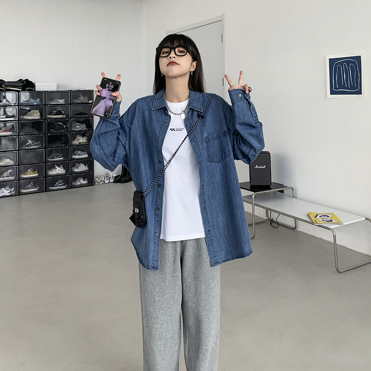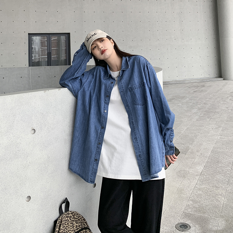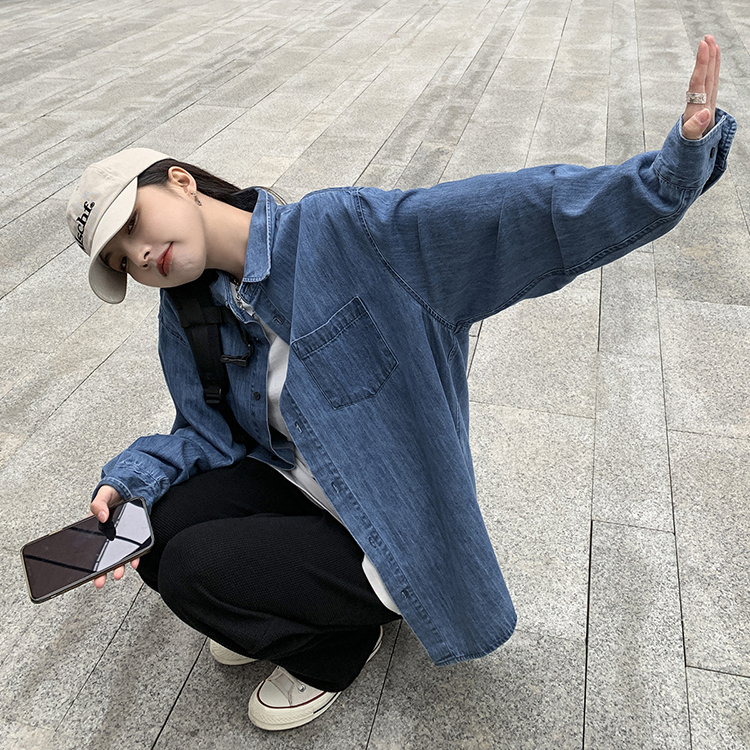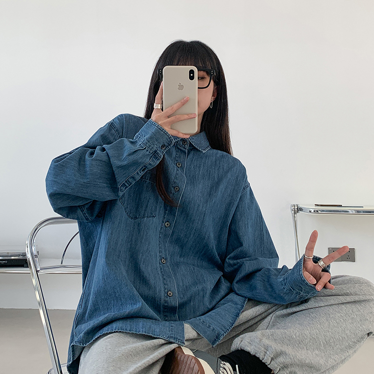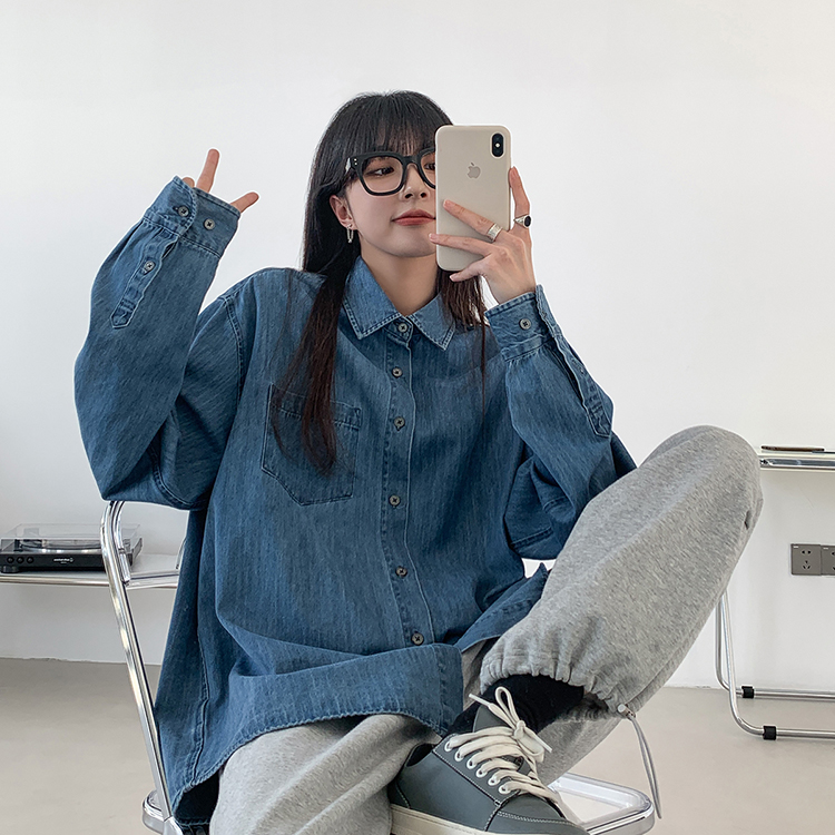 SIXI四喜家春秋 復古水洗藍 舒適牛仔襯衫女寬鬆顯瘦疊穿襯衫