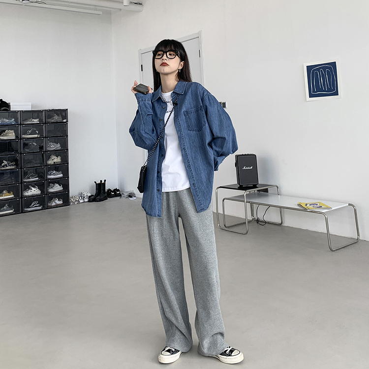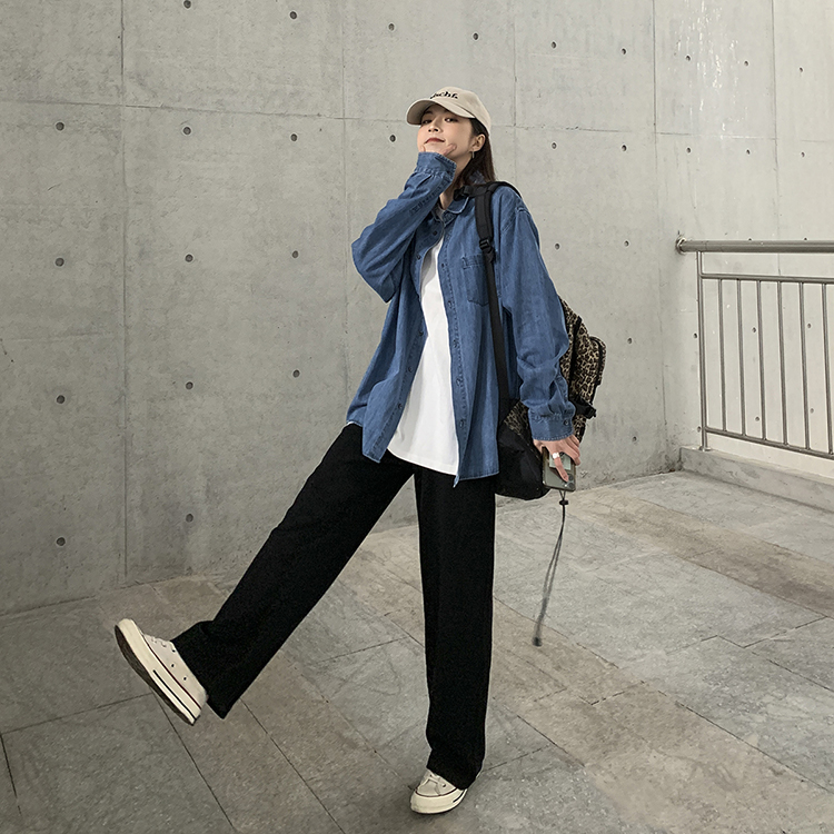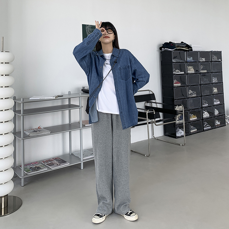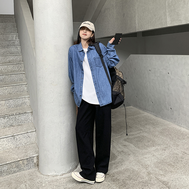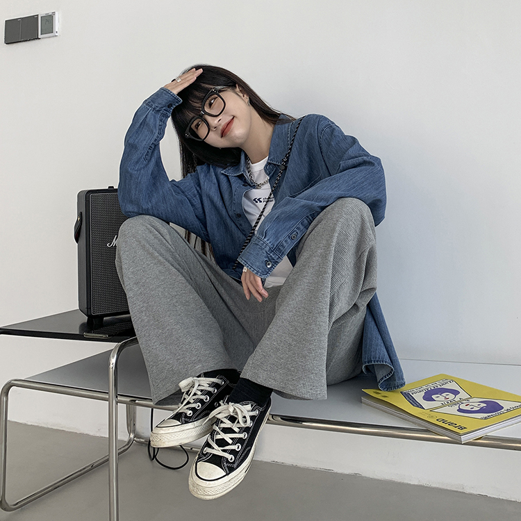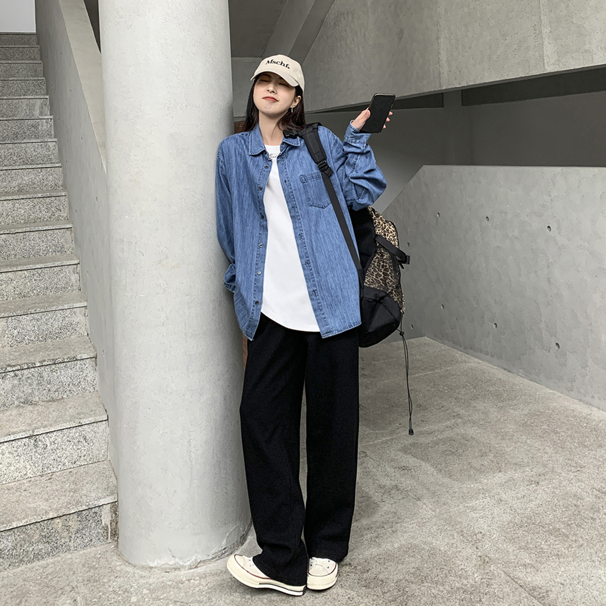 SIXI四喜家春秋 復古水洗藍 舒適牛仔襯衫女寬鬆顯瘦疊穿襯衫