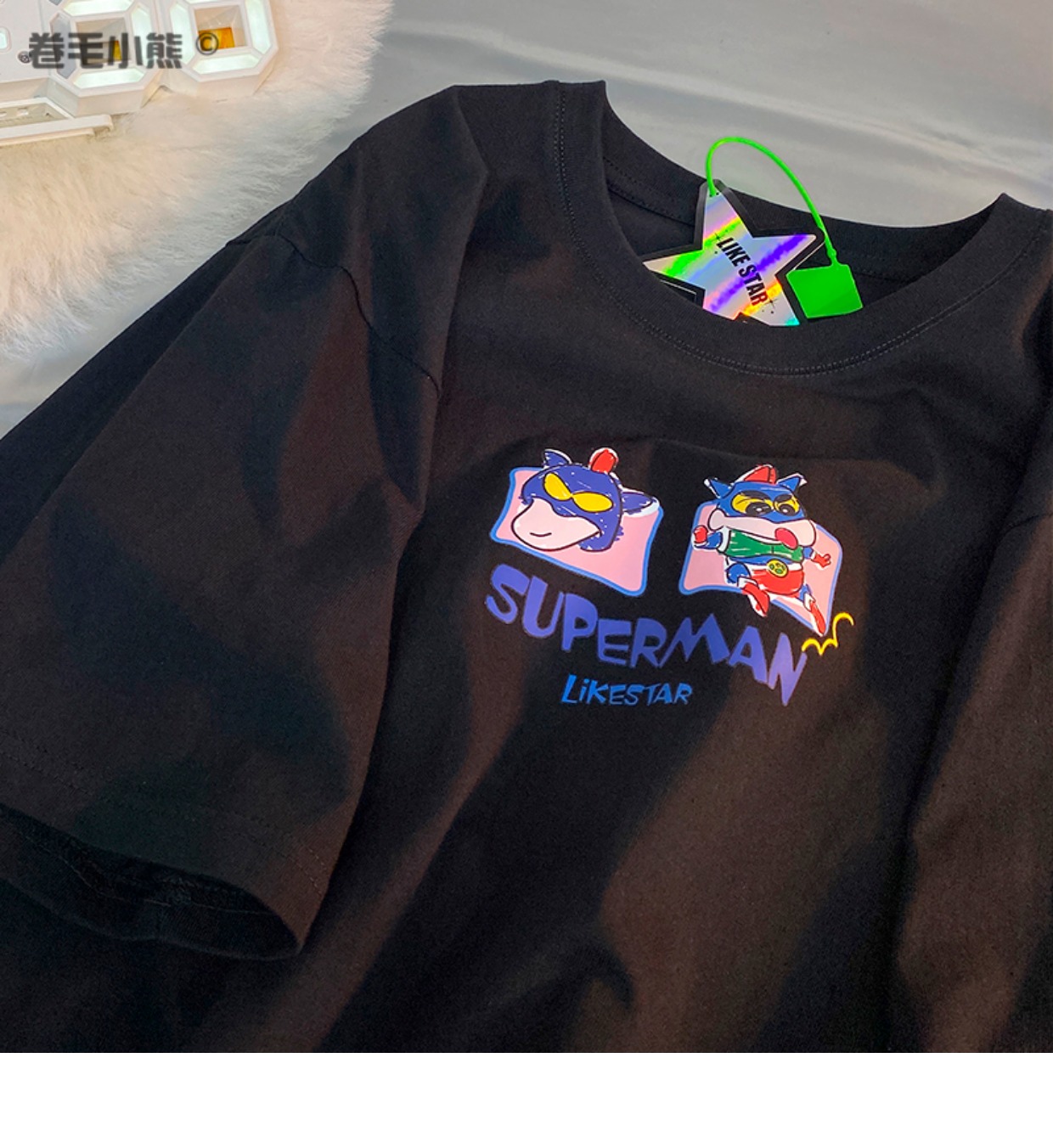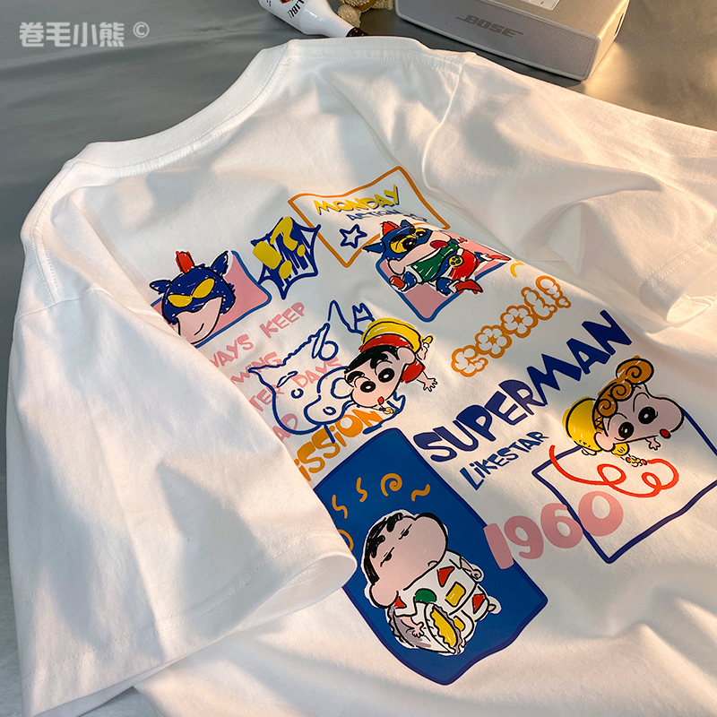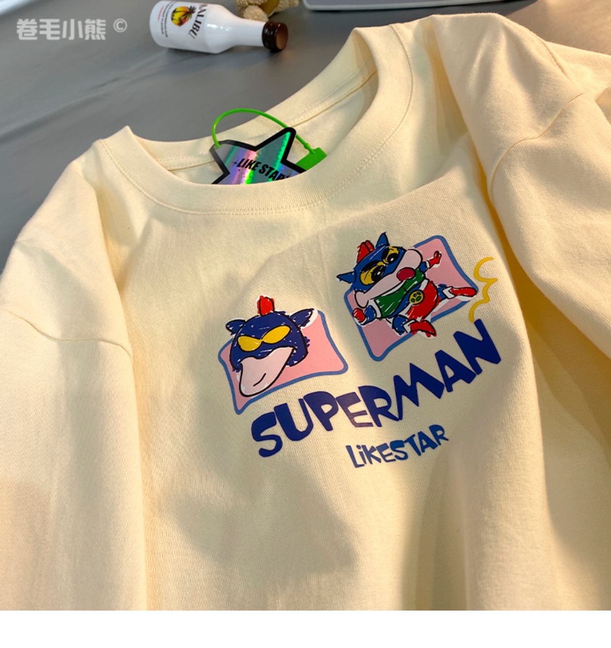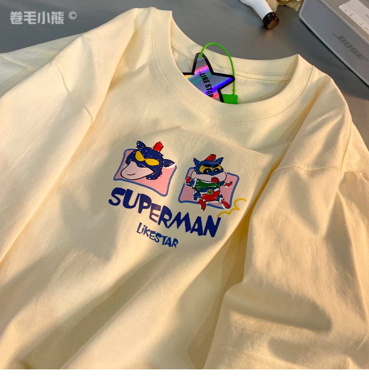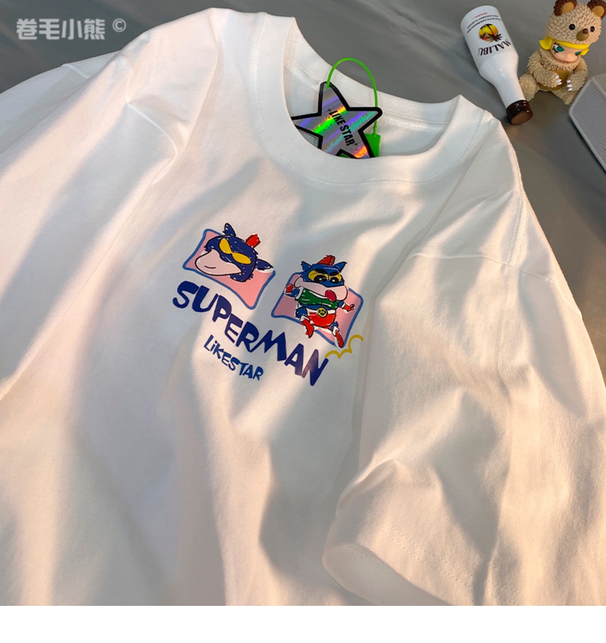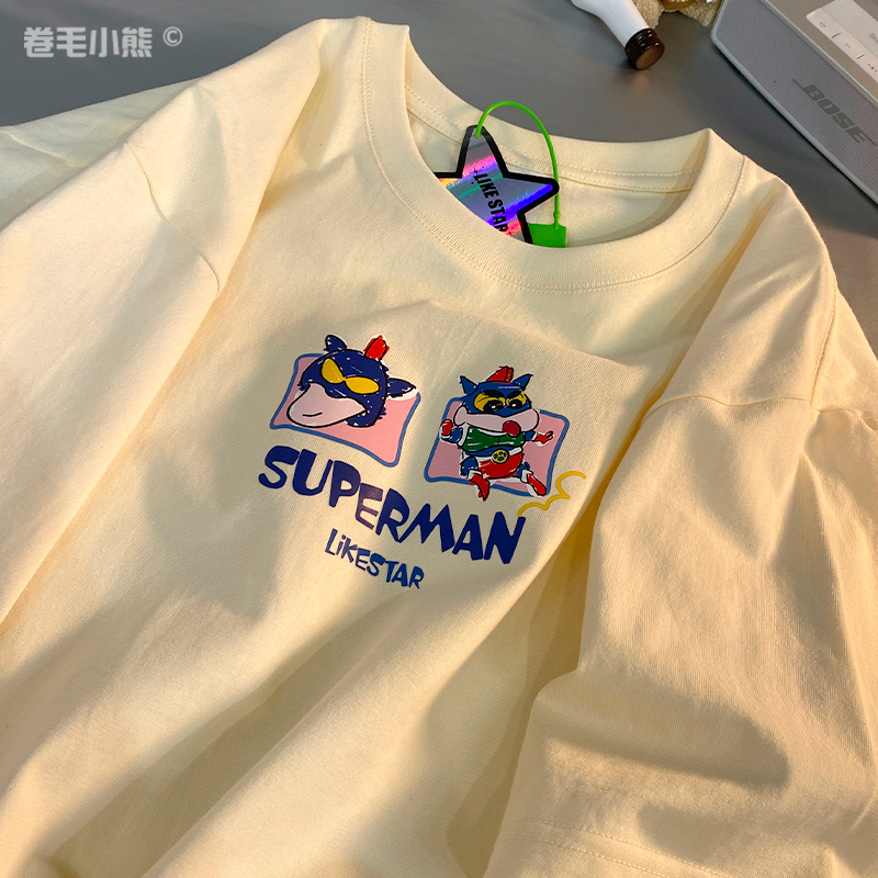 4.1捲毛小熊重磅純棉短袖t恤女2023年新款寬鬆韓版美式上衣