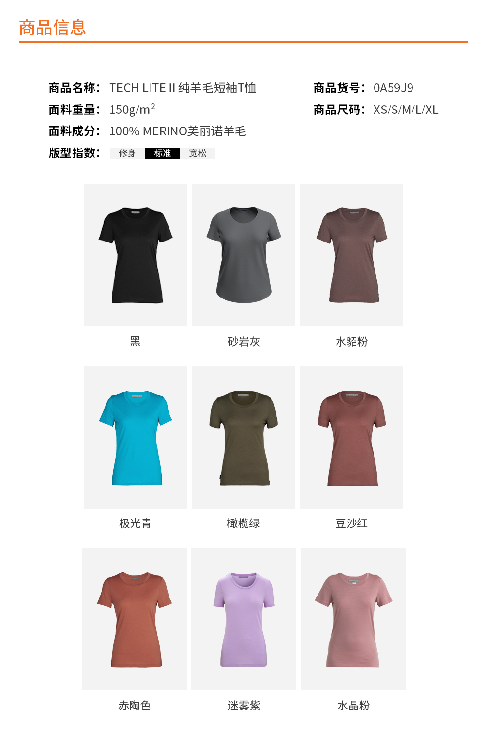 icebreaker美利奴純羊毛女Tech Lite II短袖T恤速乾防曬戶外休閒