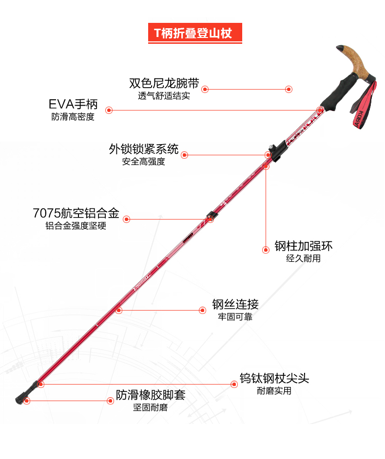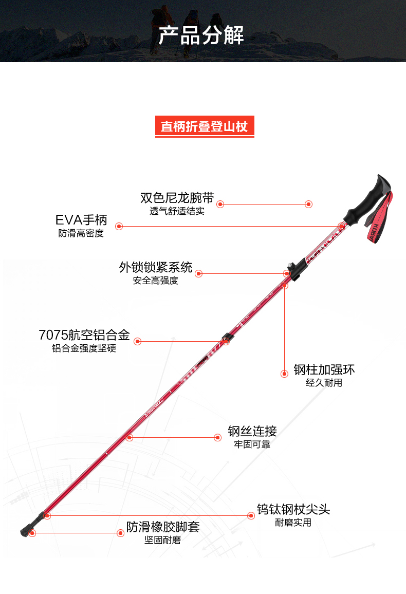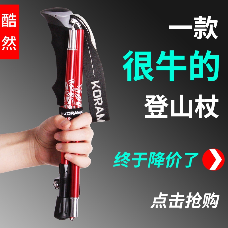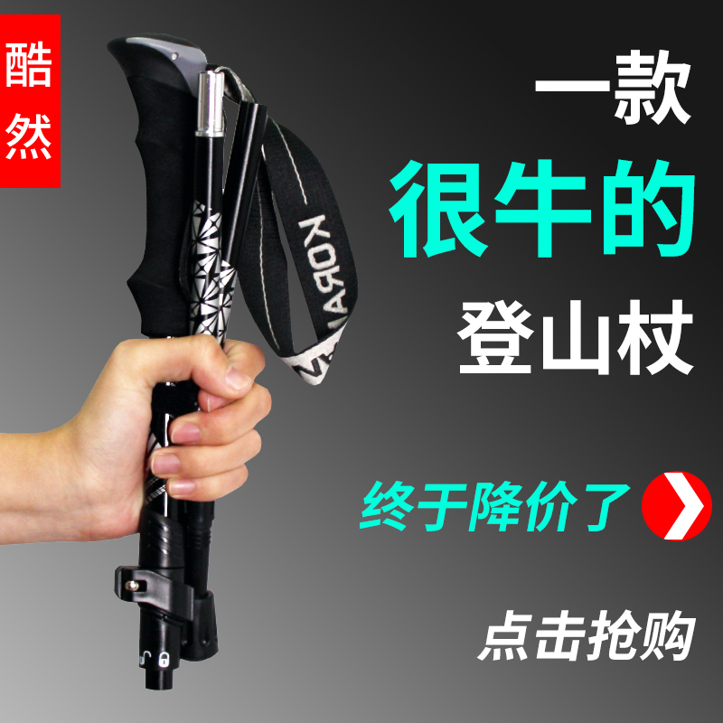 酷然戶外多功能登山杖男女摺疊款碳素超輕伸縮爬山手杖拐扙棍裝備