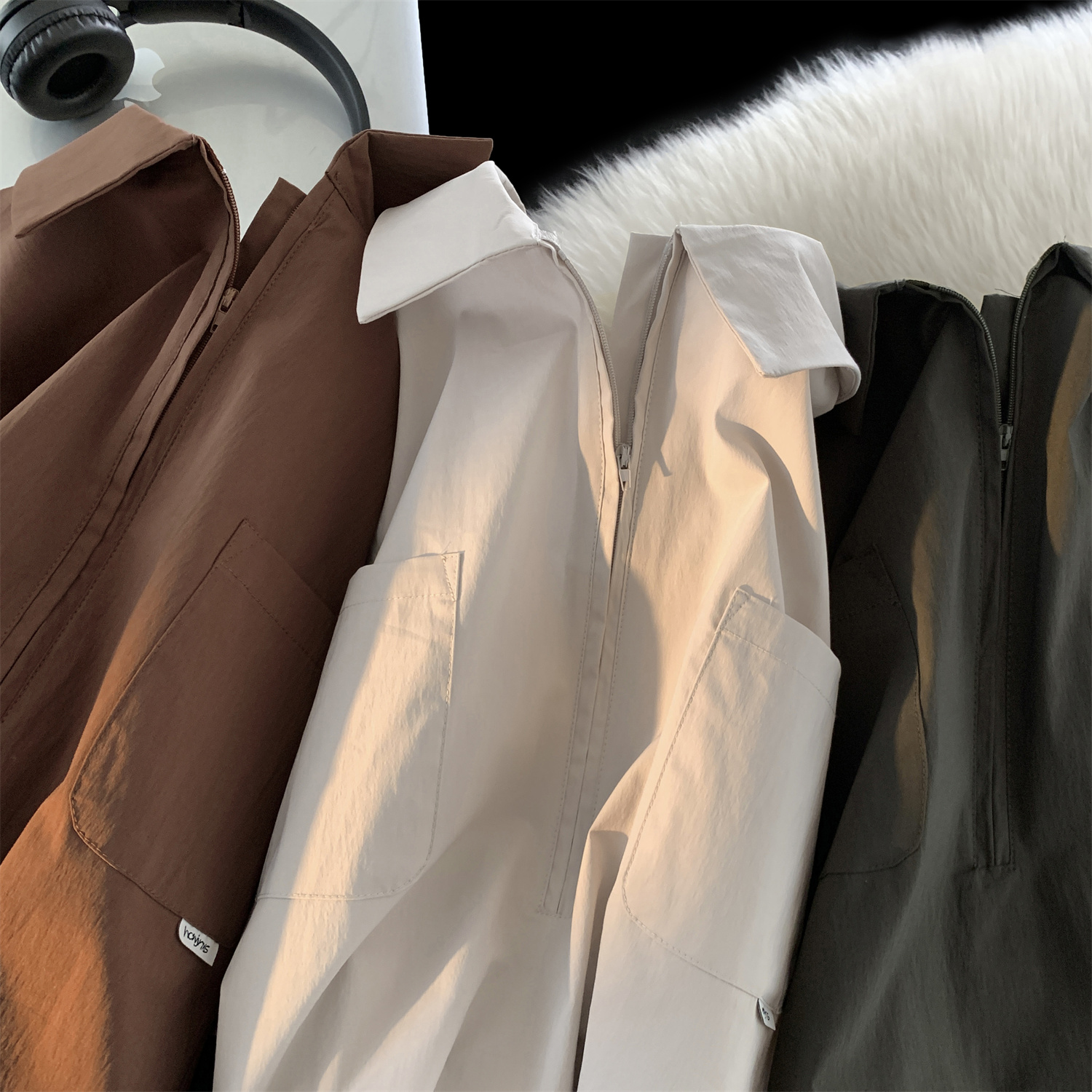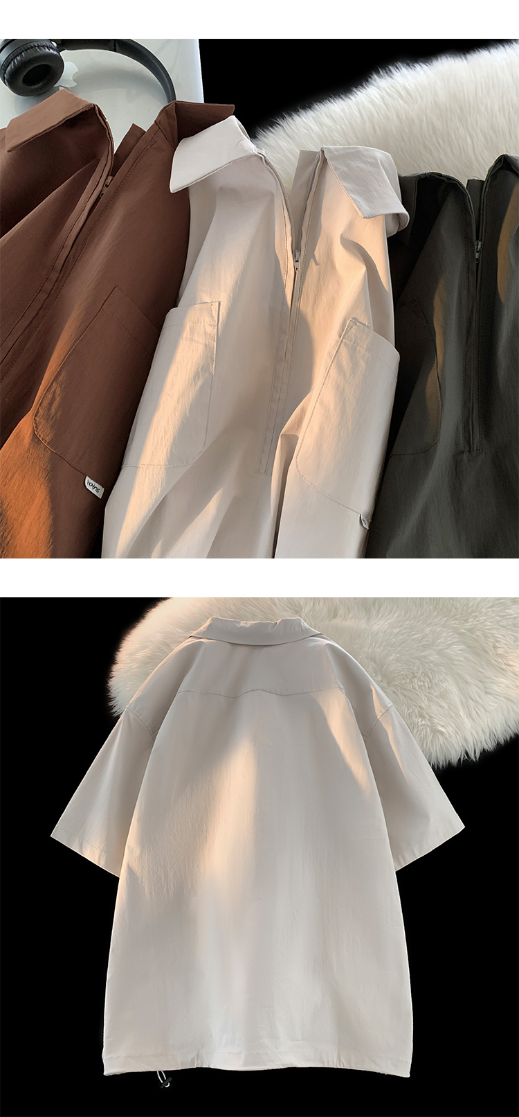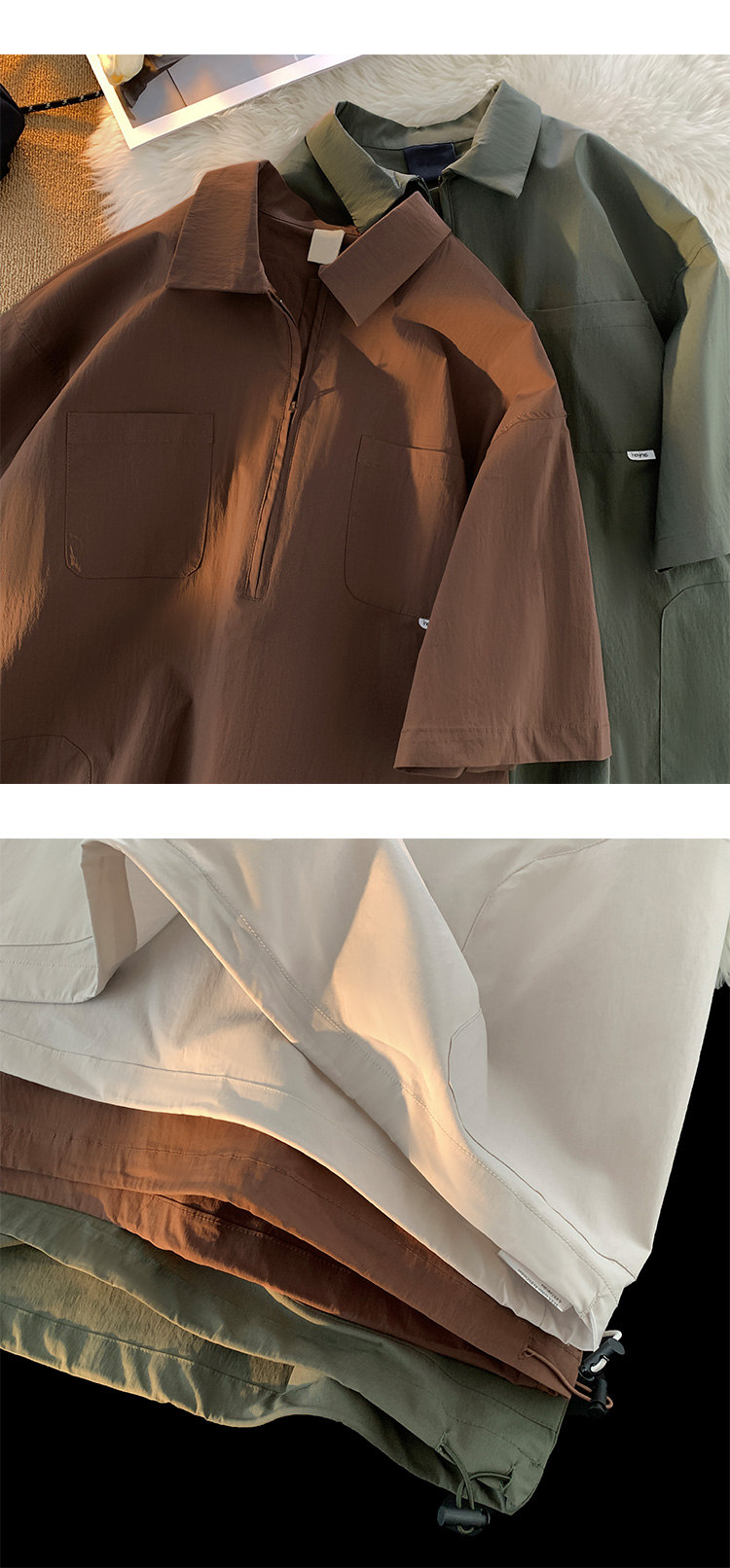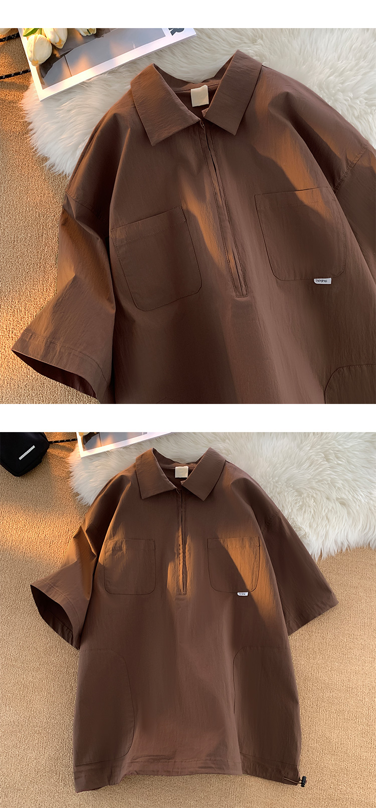 日系半拉鍊polo衫男夏季潮牌翻領短袖t恤ins潮流簡約寬鬆百搭襯衫