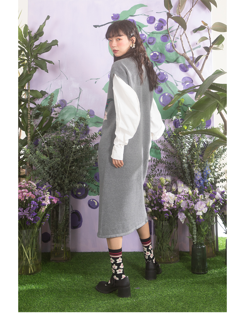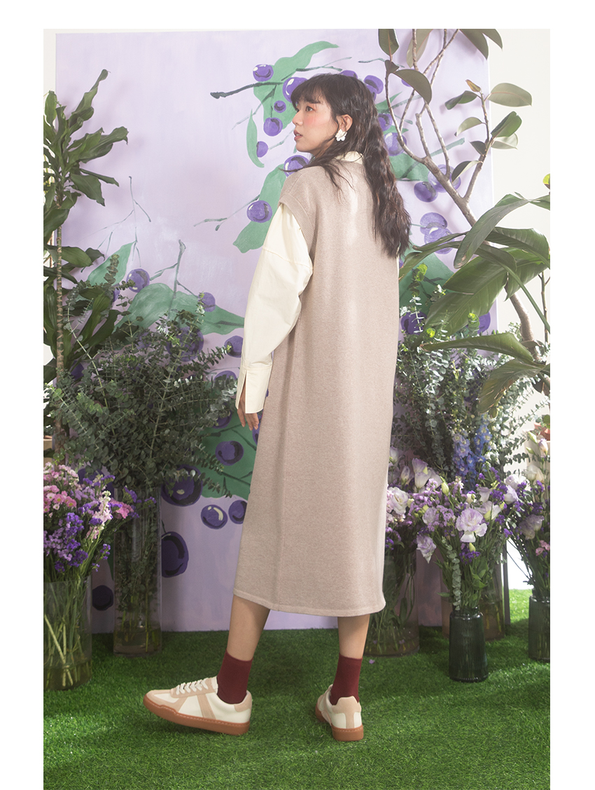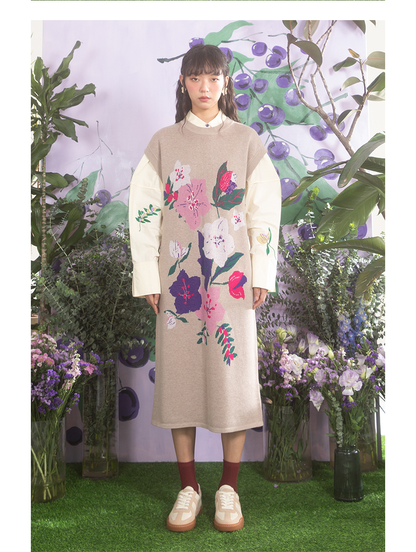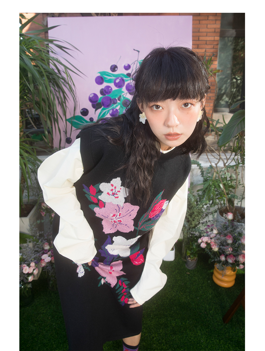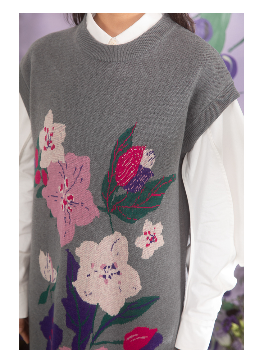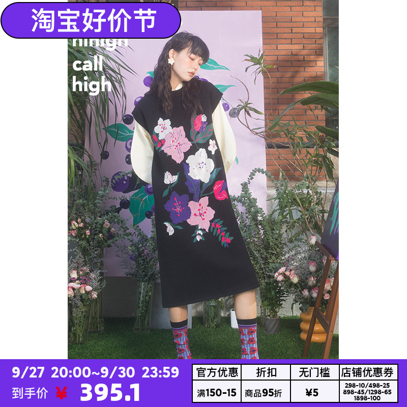 HHCH口海 日系復古少女手繪櫻花圖案寬鬆馬甲背心針織無袖洋裝