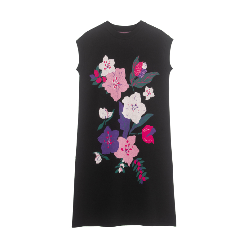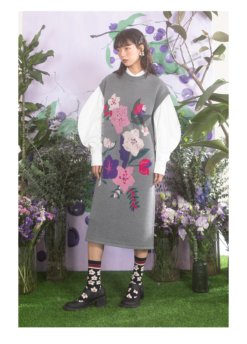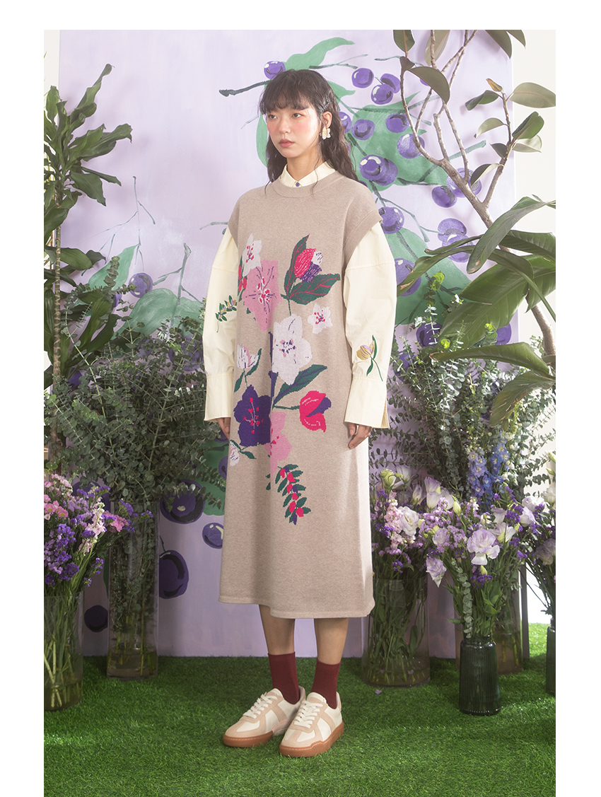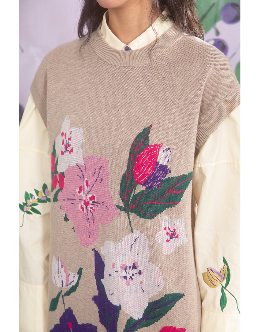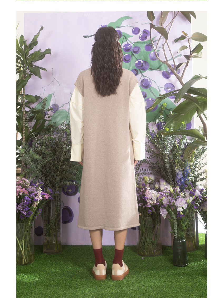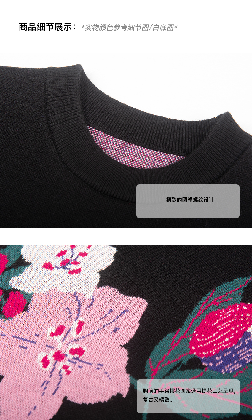 HHCH口海 日系復古少女手繪櫻花圖案寬鬆馬甲背心針織無袖洋裝
