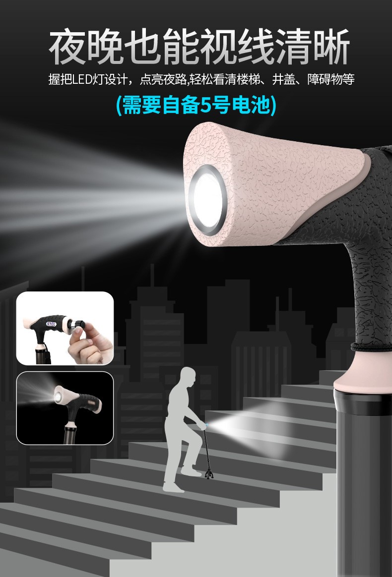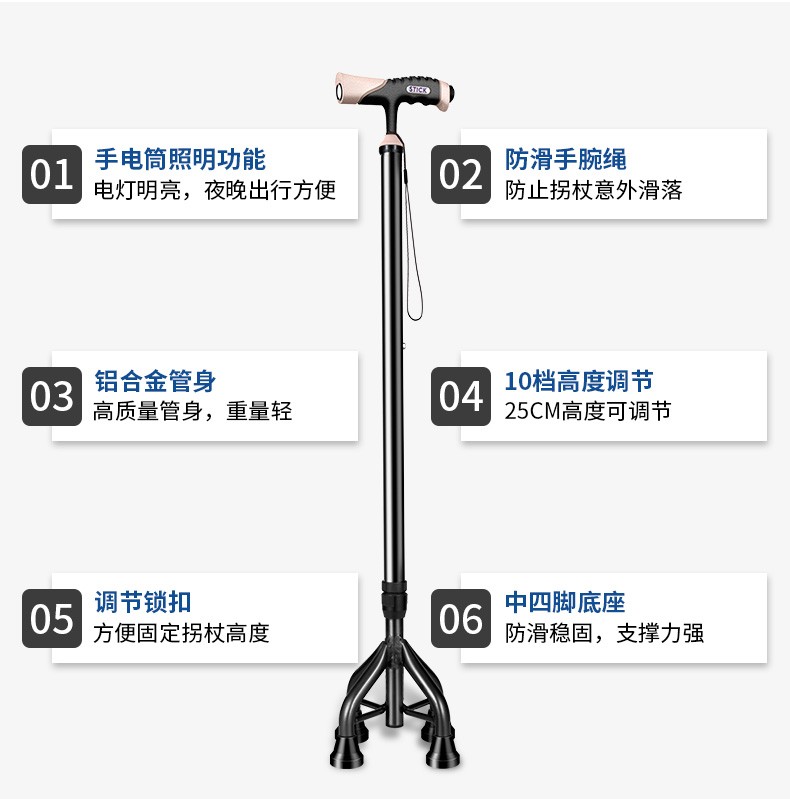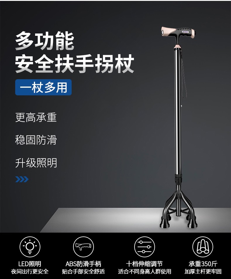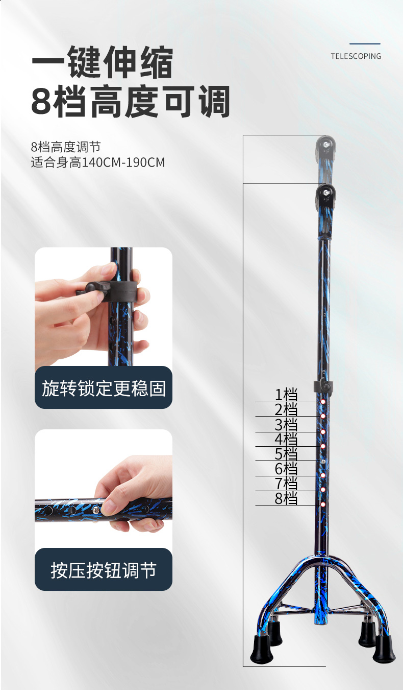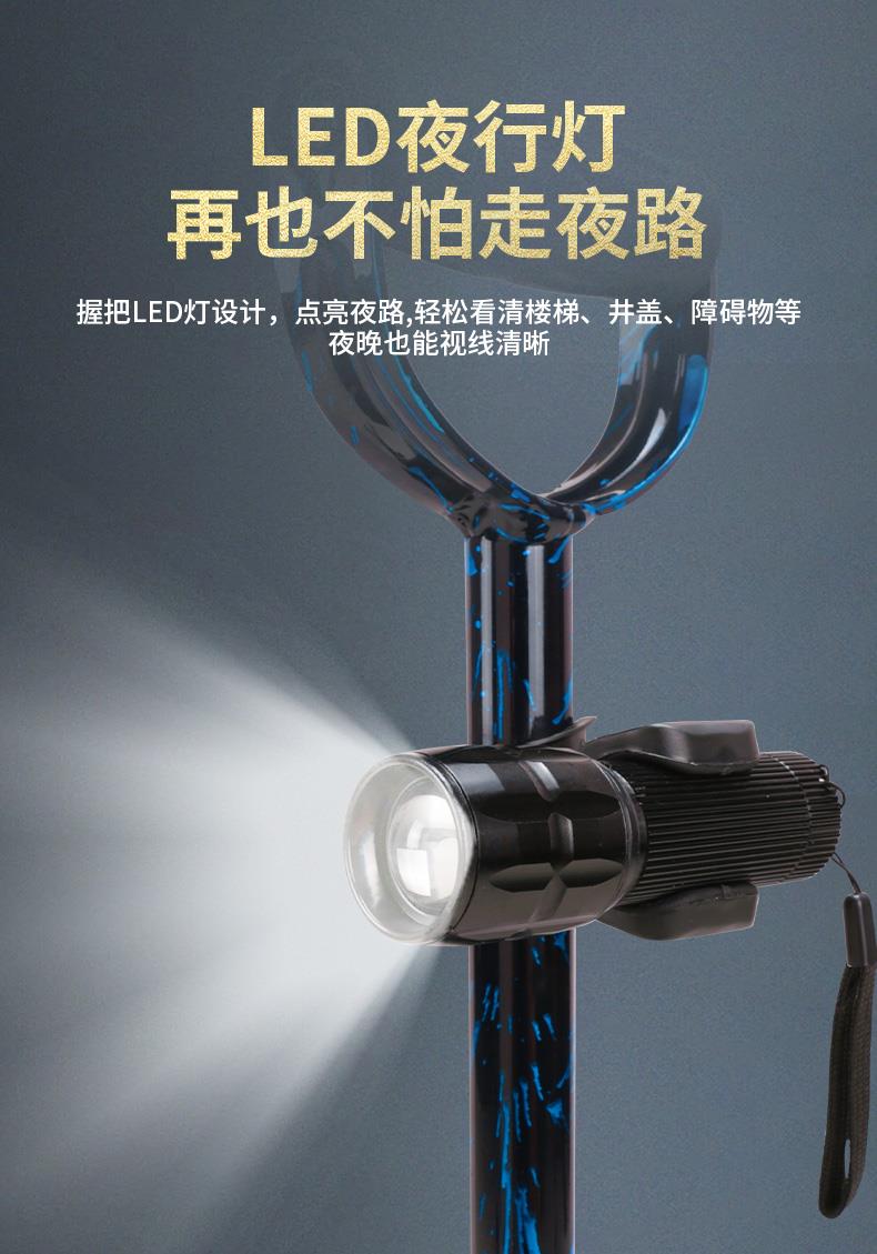 顏色分類 磨砂黑色-單腳-帶燈手柄-高度可調節 磨砂黑色-迷你四腳-帶燈手柄-高度可調節 咖啡色-全鋁中四腳-帶燈手柄-高度可調節 焰火藍-全鋁加大四腳-加大手柄-高度可調節