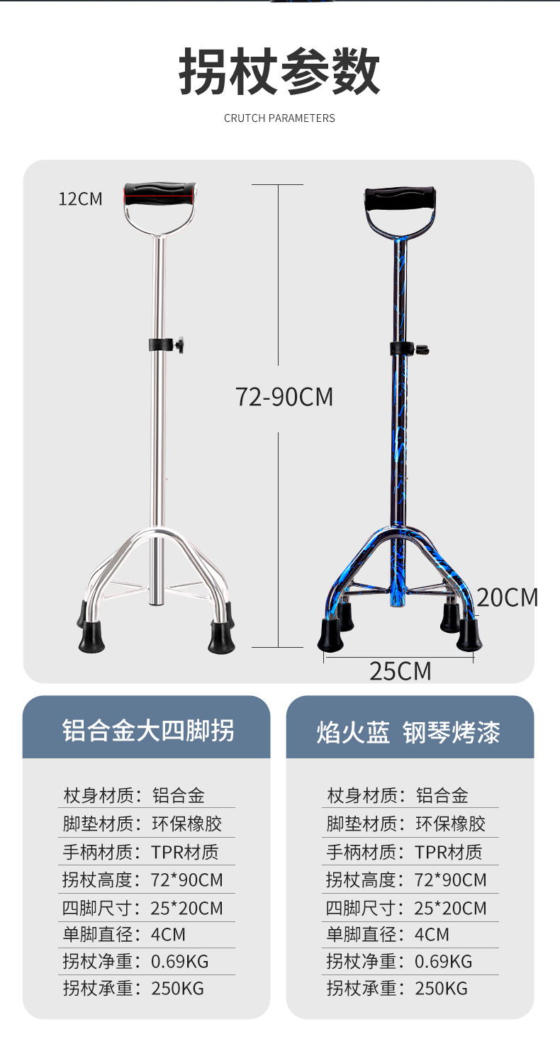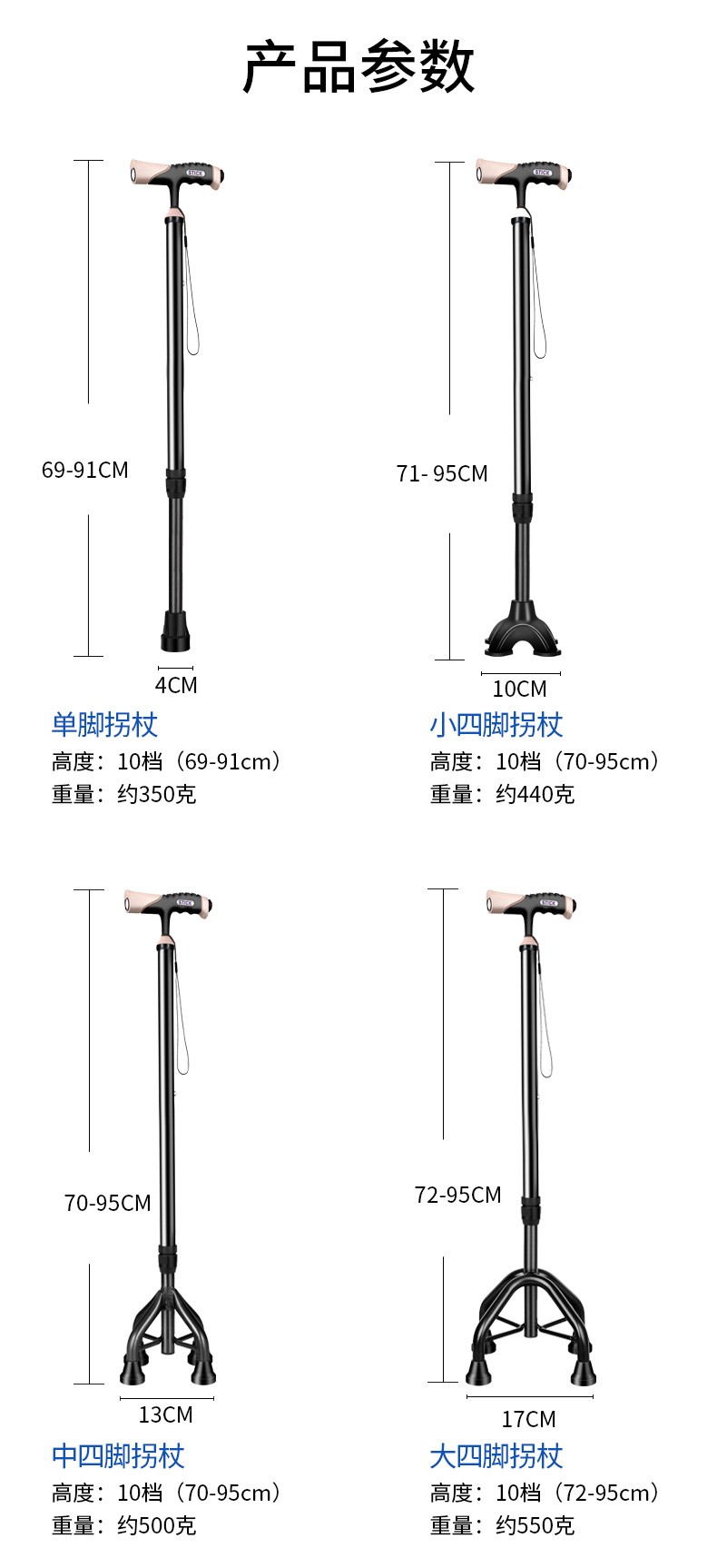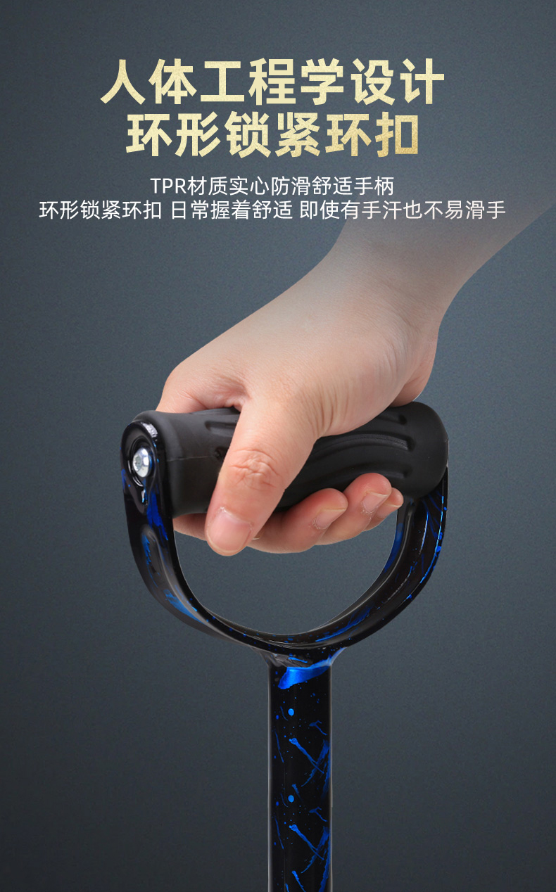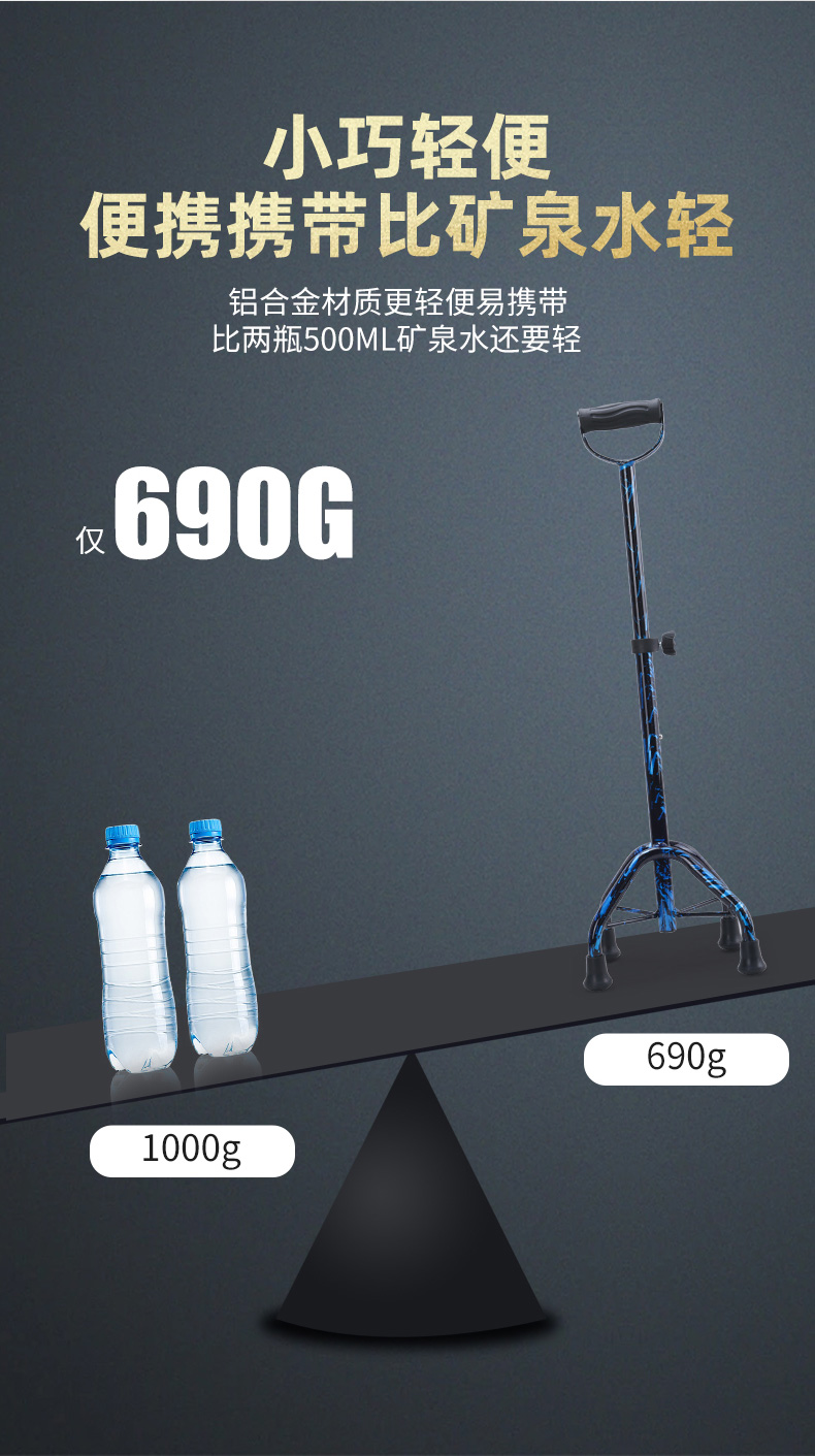 顏色分類 磨砂黑色-單腳-帶燈手柄-高度可調節 磨砂黑色-迷你四腳-帶燈手柄-高度可調節 咖啡色-全鋁中四腳-帶燈手柄-高度可調節 焰火藍-全鋁加大四腳-加大手柄-高度可調節