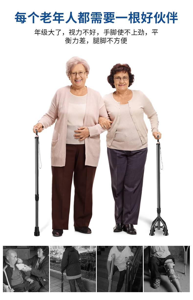 老人柺杖四腳防滑柺棍老年手杖助步器四角拐扙輕便鋁合金伸縮捌杖