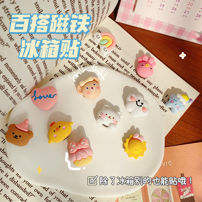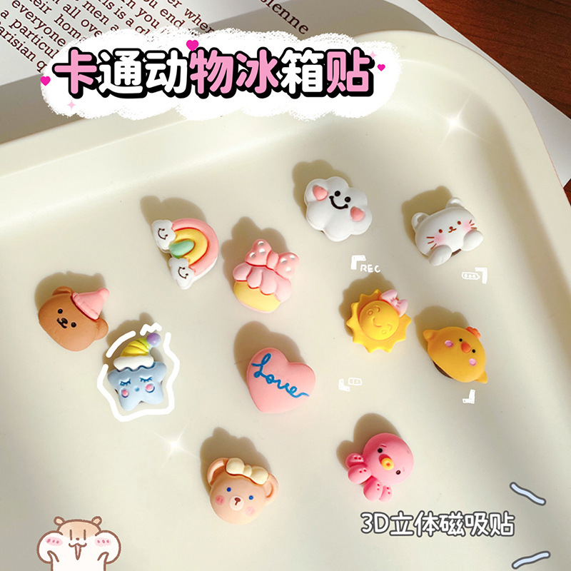 百搭可爱卡通动物款简约爱心 三色冰箱贴磁扣贴留言磁性贴 留言贴