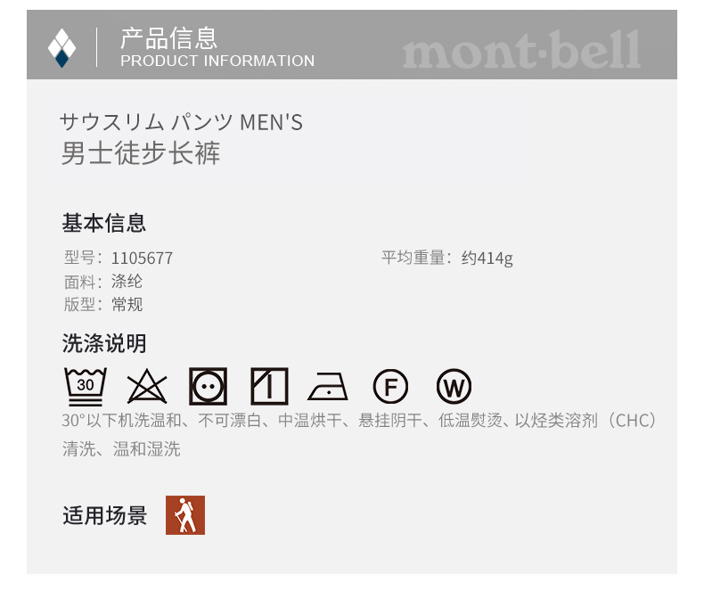 日本直郵MONTBELL 戶外男士中厚款耐磨徒步速乾長褲3色1105677