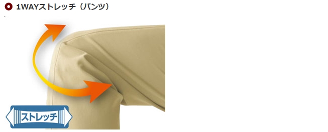 【特長】ジッパー付きポケット5個(腰2、両腿各2、右後1)/イージーベルト/1WAYストレッチ/立体裁断