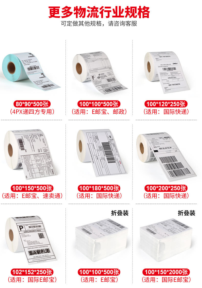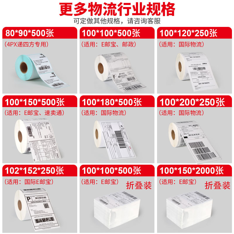 尺寸 品质三防100*150*350张(E邮宝)撕线,品质三防100*150*500张(E邮宝)撕线,经济三防100*100*500张 (E邮宝)撕线,品质三防100*100*500张(E邮宝)撕线,三防热敏纸100*100*2000(叠装)*5叠,三防热敏纸100*150*500(叠装)*20叠,三防热敏纸100*200*250张,三防热敏纸100*180*500张,三防热敏纸100*100*5000(叠装)*2叠,三防热敏纸80*90*500张 4PX递四方,三防热敏纸100*180*500(叠装)*24叠,三防热敏纸100*150*2000(叠装)*8叠,三防热敏纸60*30*800张,一防热敏纸50*30*700张,一防热敏纸40*30*2500张双排,三防热敏纸100*60*500张,一防热敏纸70*50*500张,一防热敏纸60*40*700张,一防热敏纸100*80*500张,一防热敏纸50*30*6000双排(叠装),三防热敏纸50*30*1000,三防热敏纸70*50*500单排,三防热敏纸70*30*400,一防热敏纸100*70*500,三防热敏纸102*152*250张(4*6英寸),三防热敏纸100*50*1000张撕线,一防热敏纸80*60*1000,三防热敏纸100*150*2000(叠装),三防热敏纸40*70*300单排竖向,三防热敏纸40*60*400单排,三防热敏纸40*30*800单排,三防热敏纸40*20*1500单排,三防热敏纸30*20*1000单排,三防热敏纸25*15*1500双排,三防热敏纸 20*10*3000双排,三防热敏纸70*40*700单排,三防热敏纸100*100*2000(卷装),三防热敏纸100*150*5000折叠*2叠