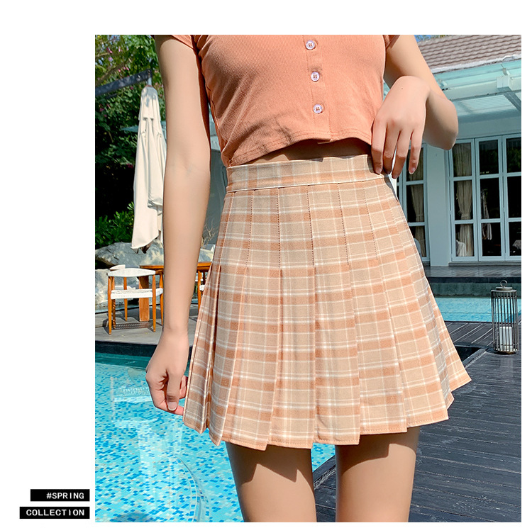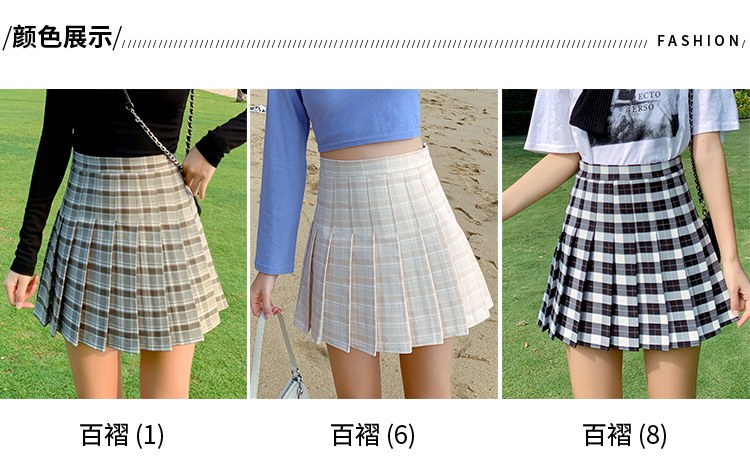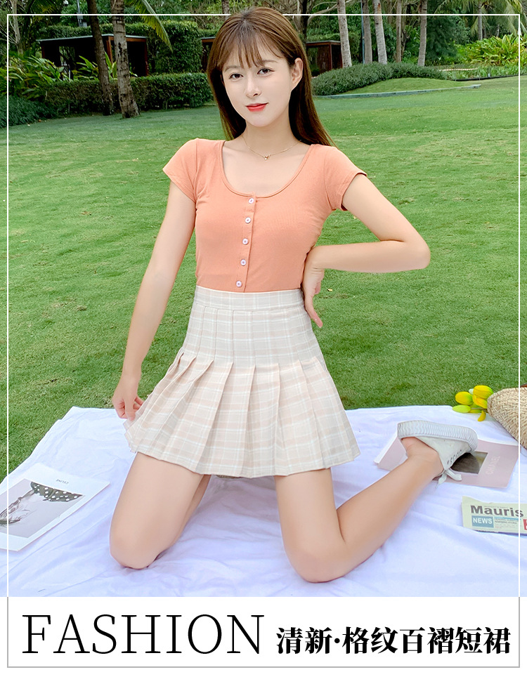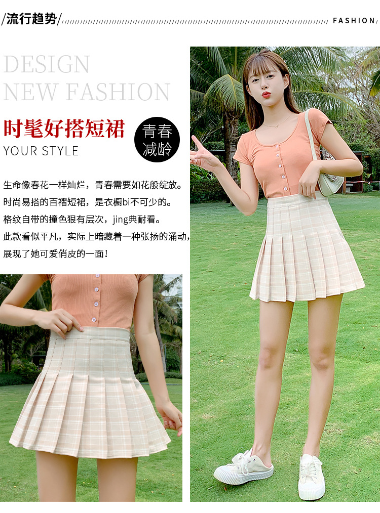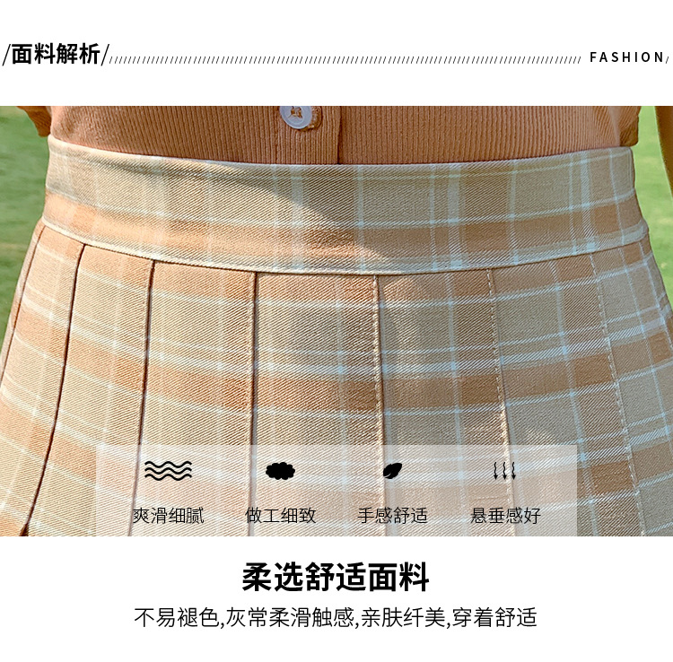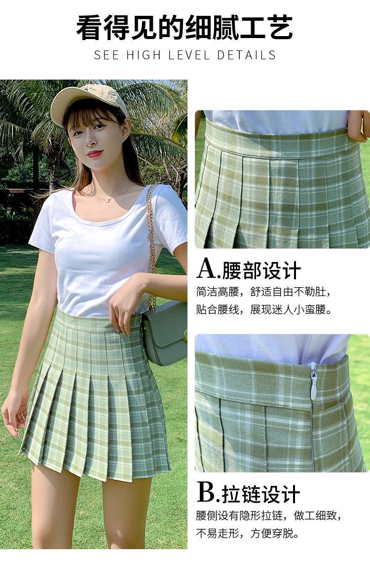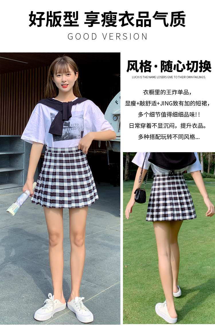 半身裙女夏季2023新款韩版高腰显瘦百搭防走光a字格子百褶裙短裙