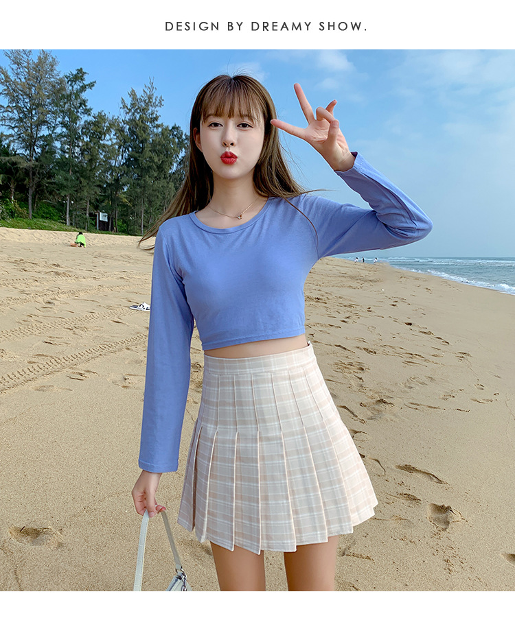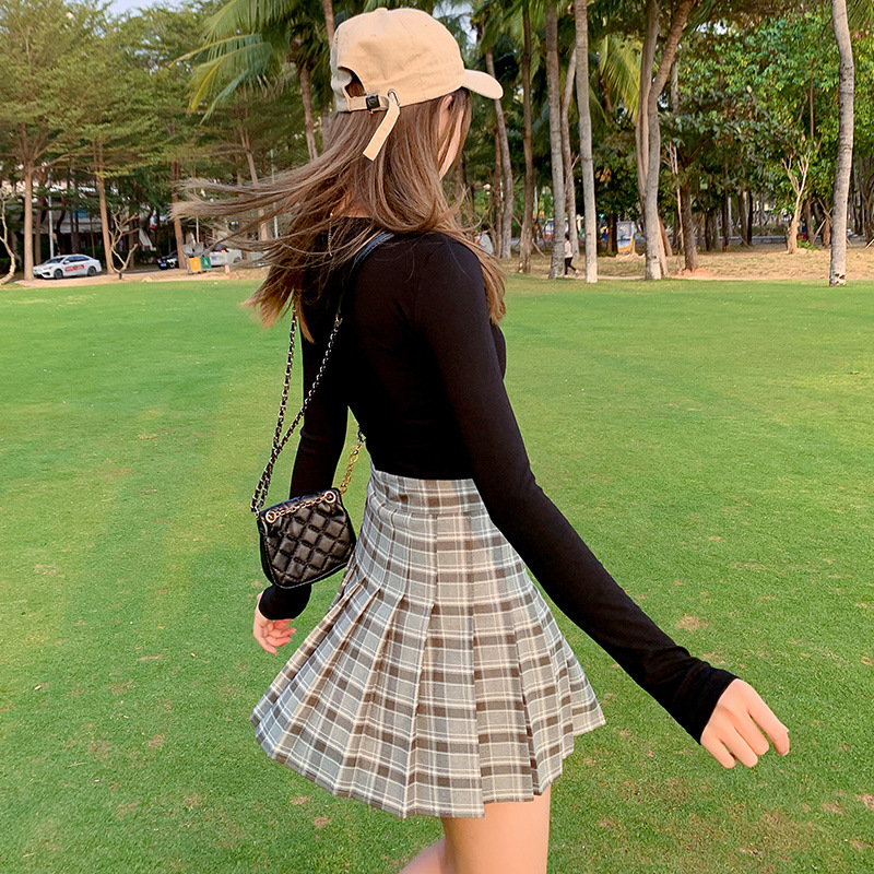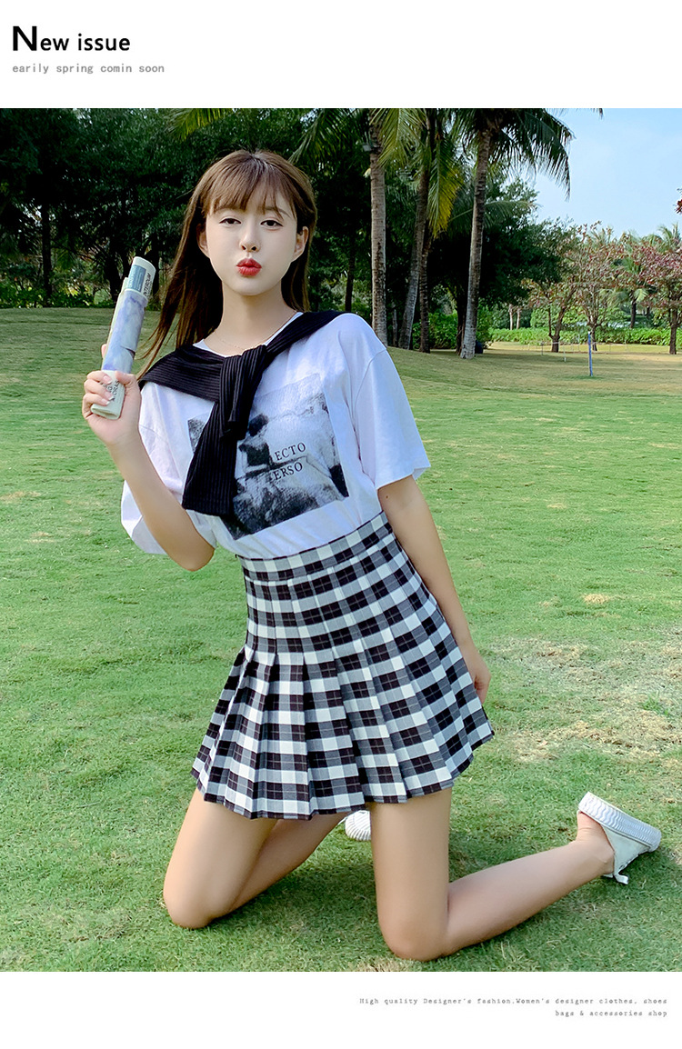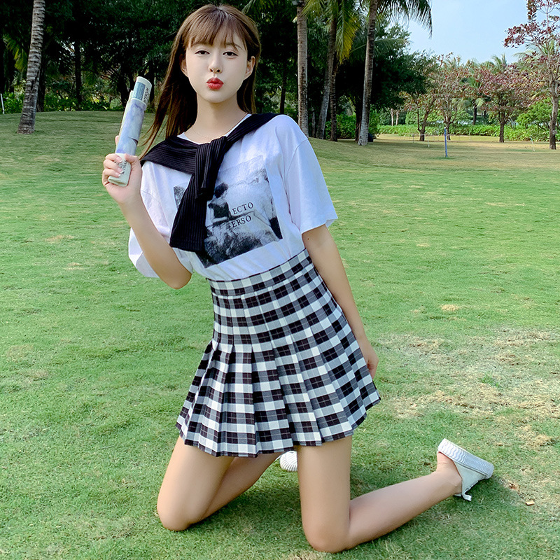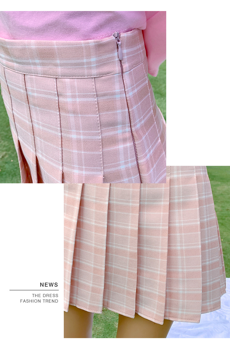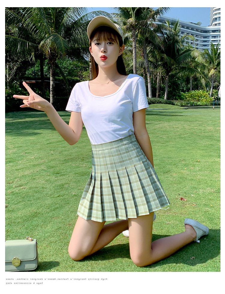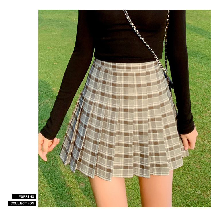 半身裙女夏季2023新款韩版高腰显瘦百搭防走光a字格子百褶裙短裙