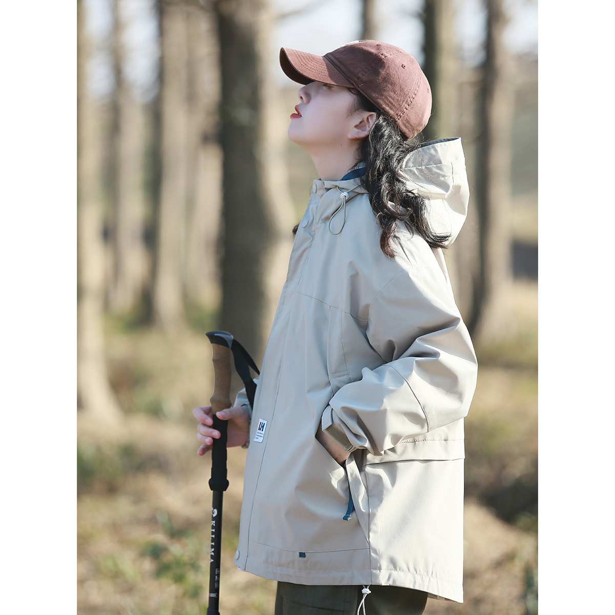 直立行走 原創戶外衝鋒衣外套女設計感工裝大口袋潮牌登山服學生