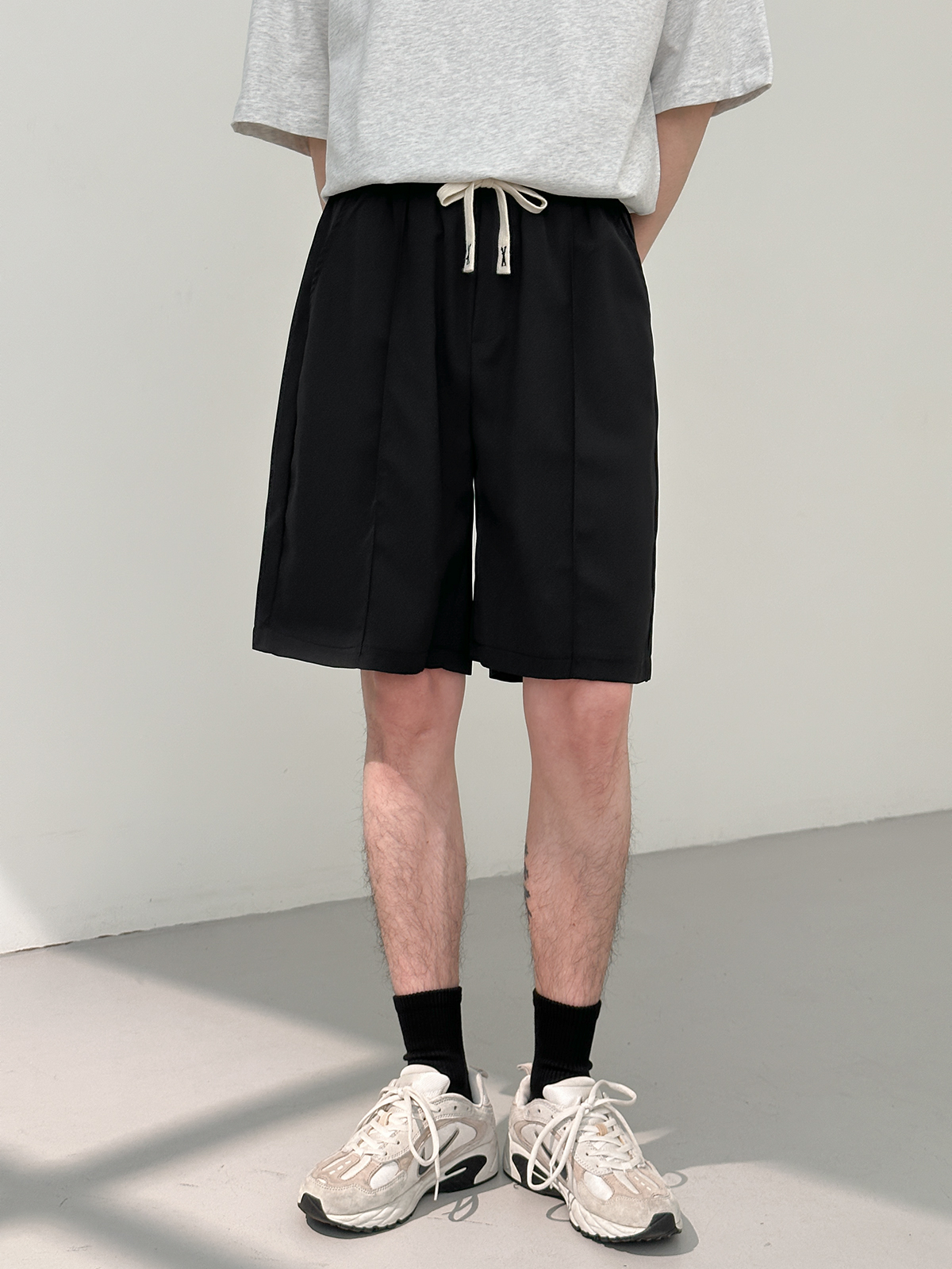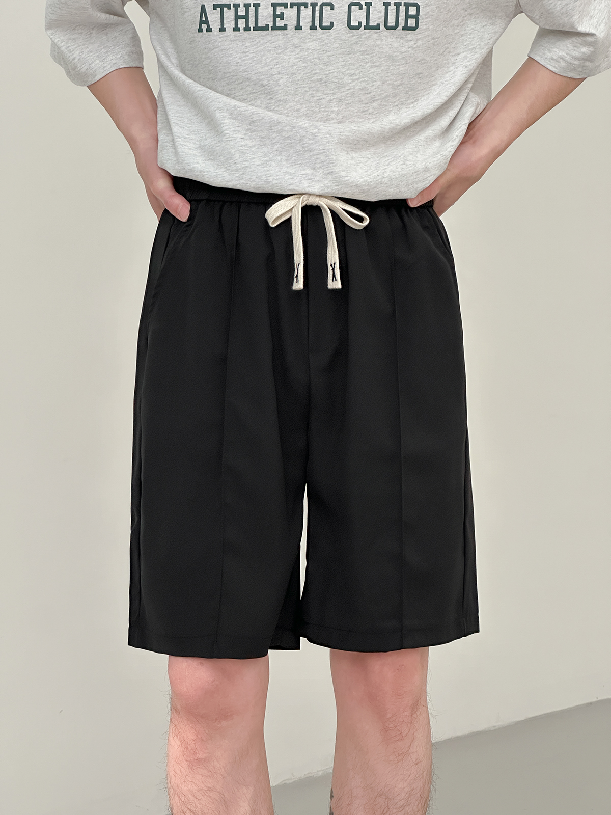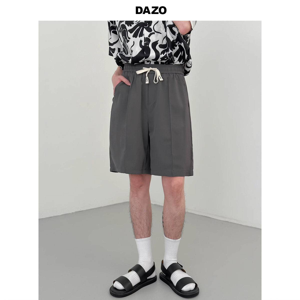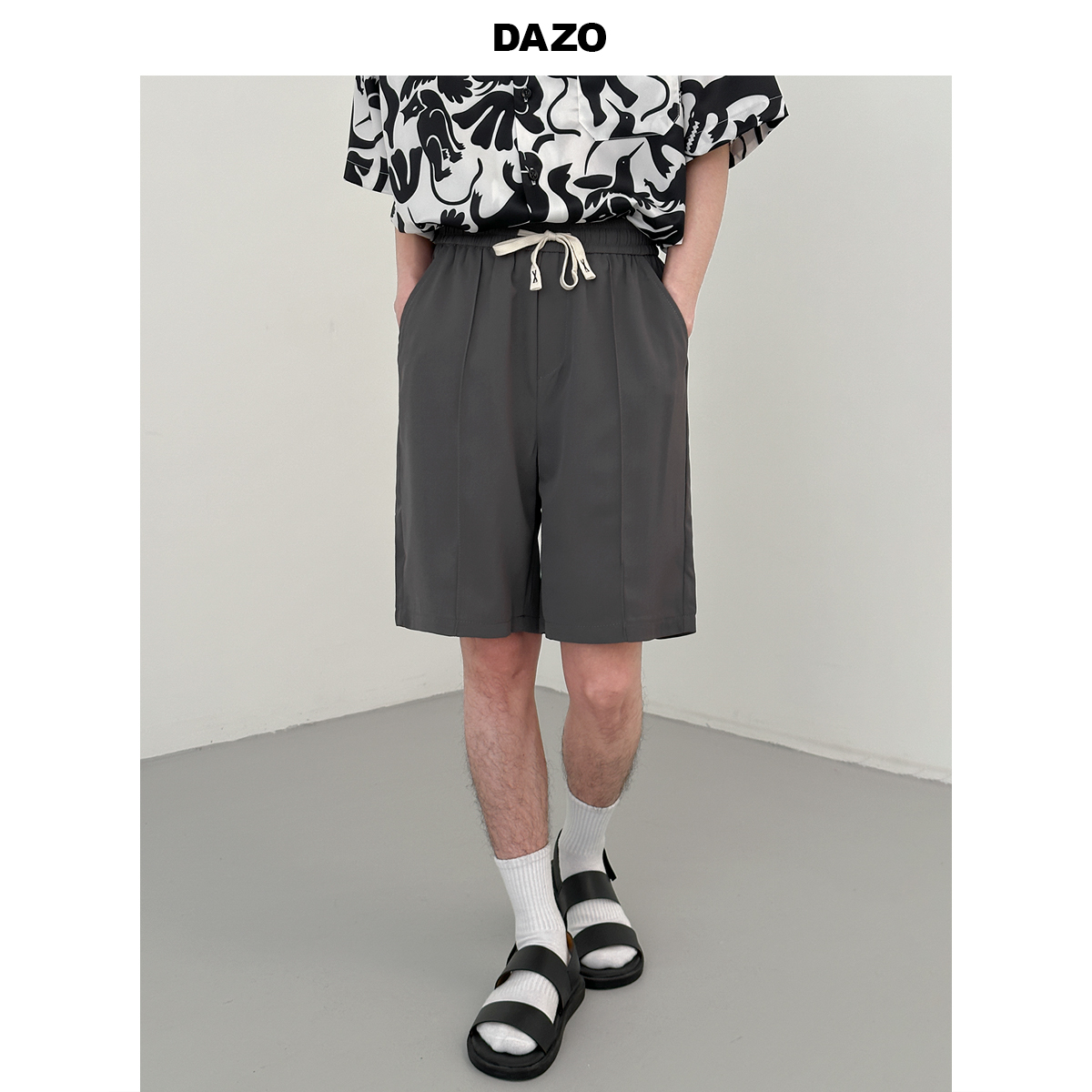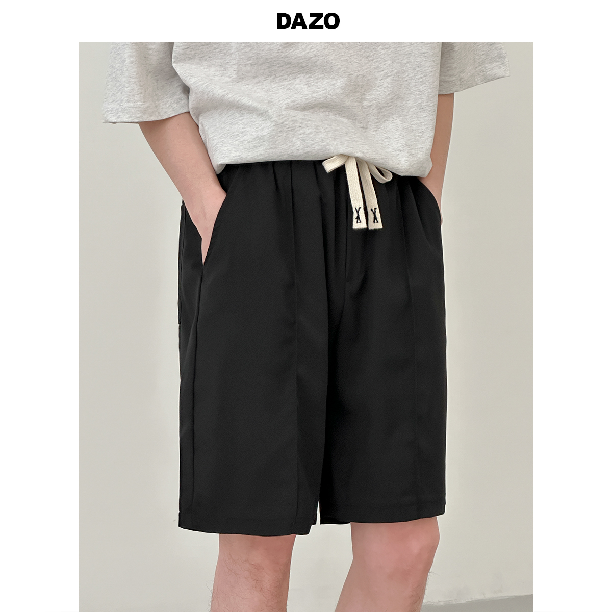 DAZO 抽繩短褲男夏季薄款直筒運動休閒五分褲純色百搭褲子