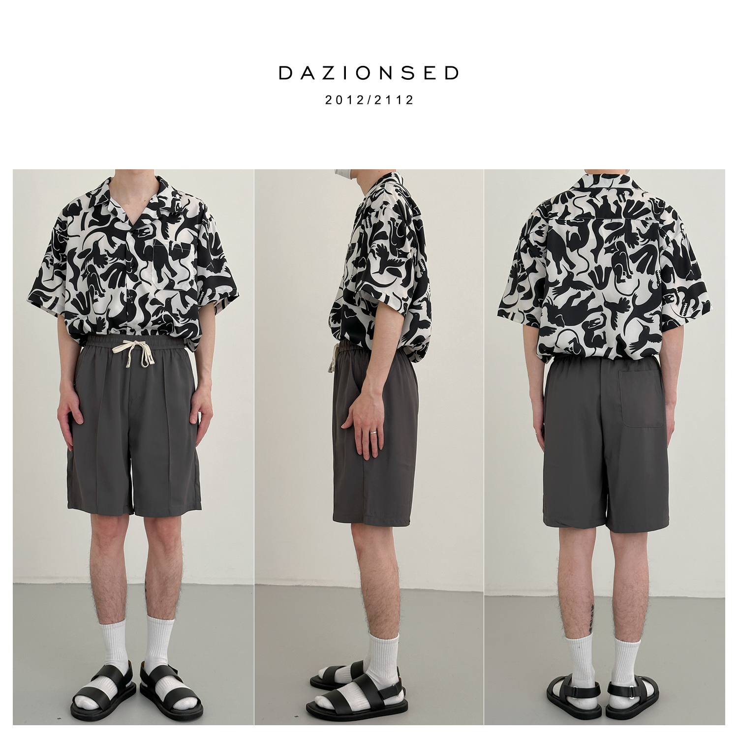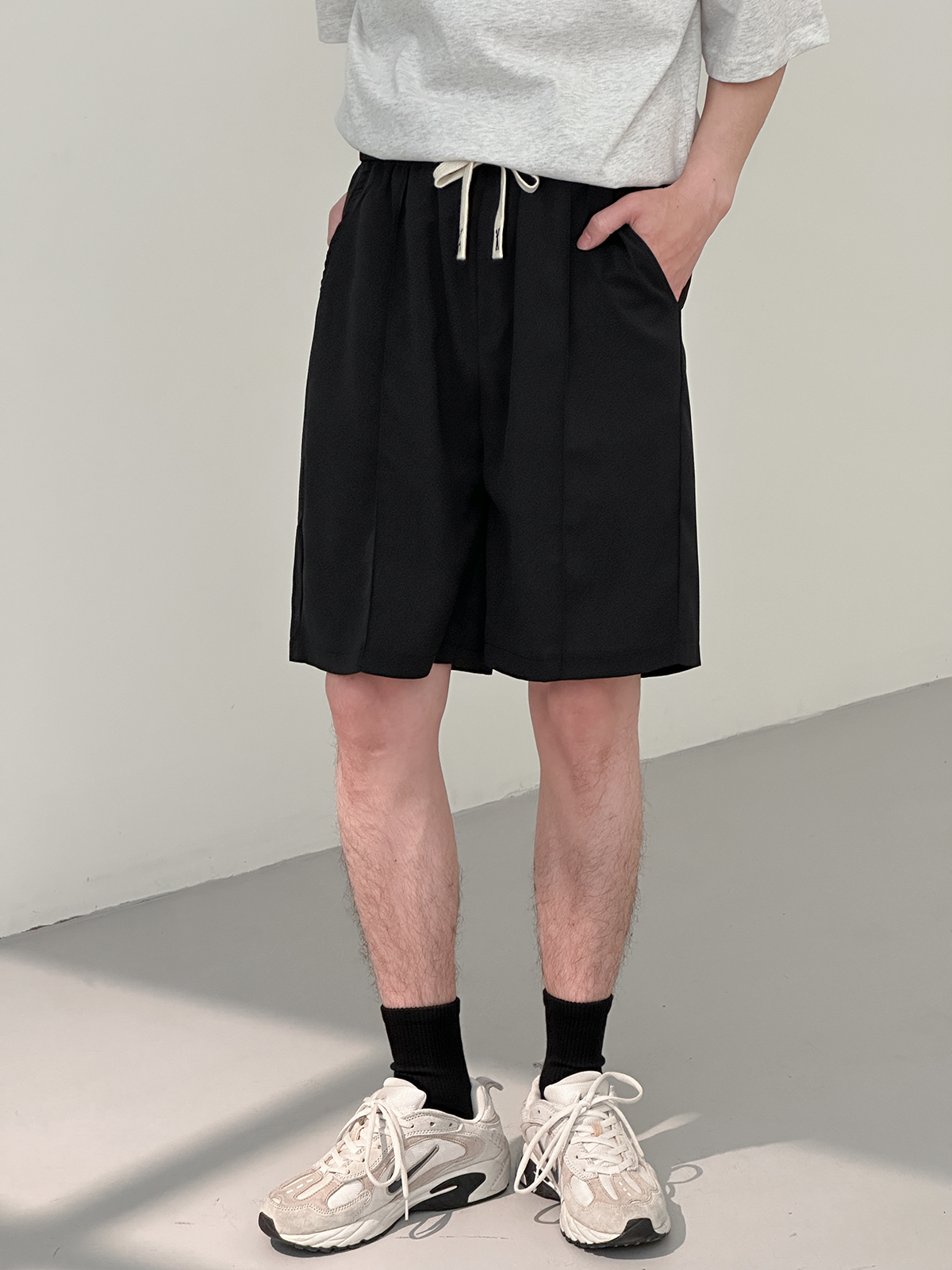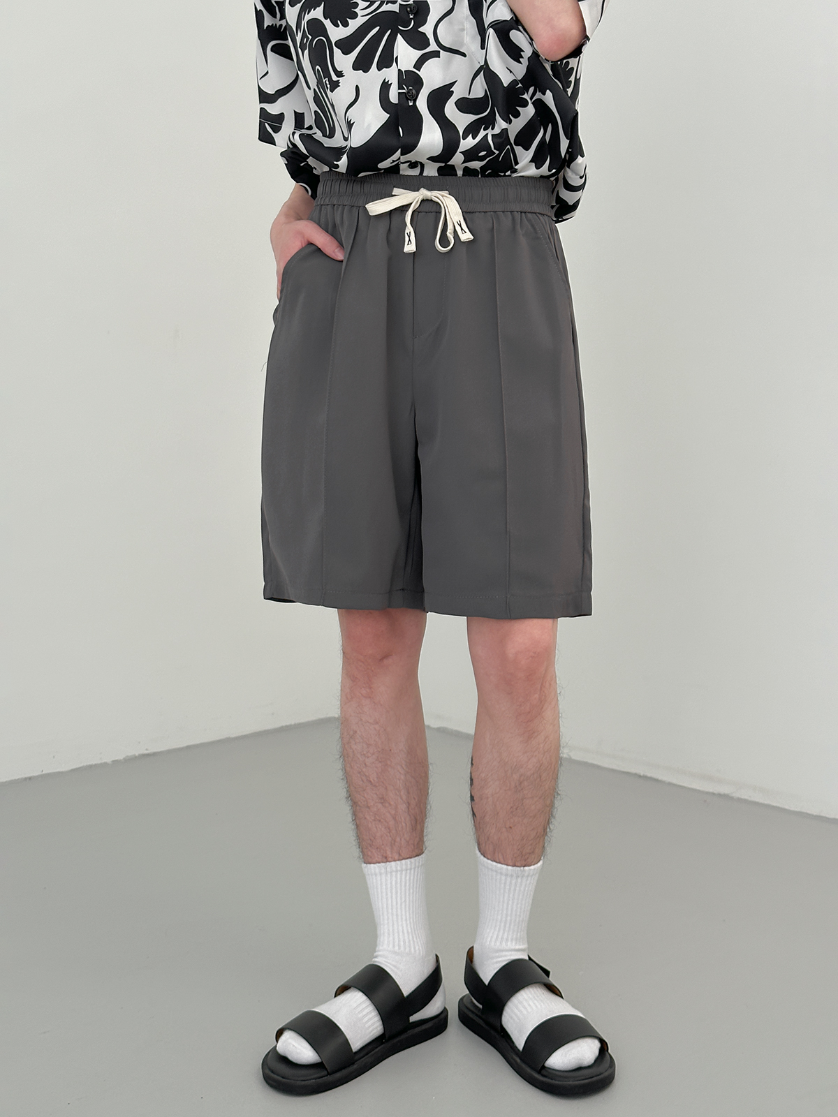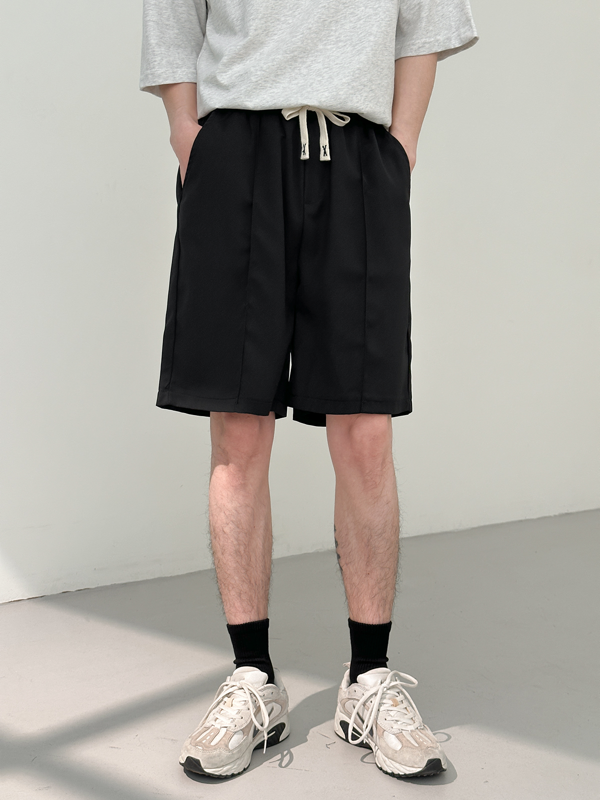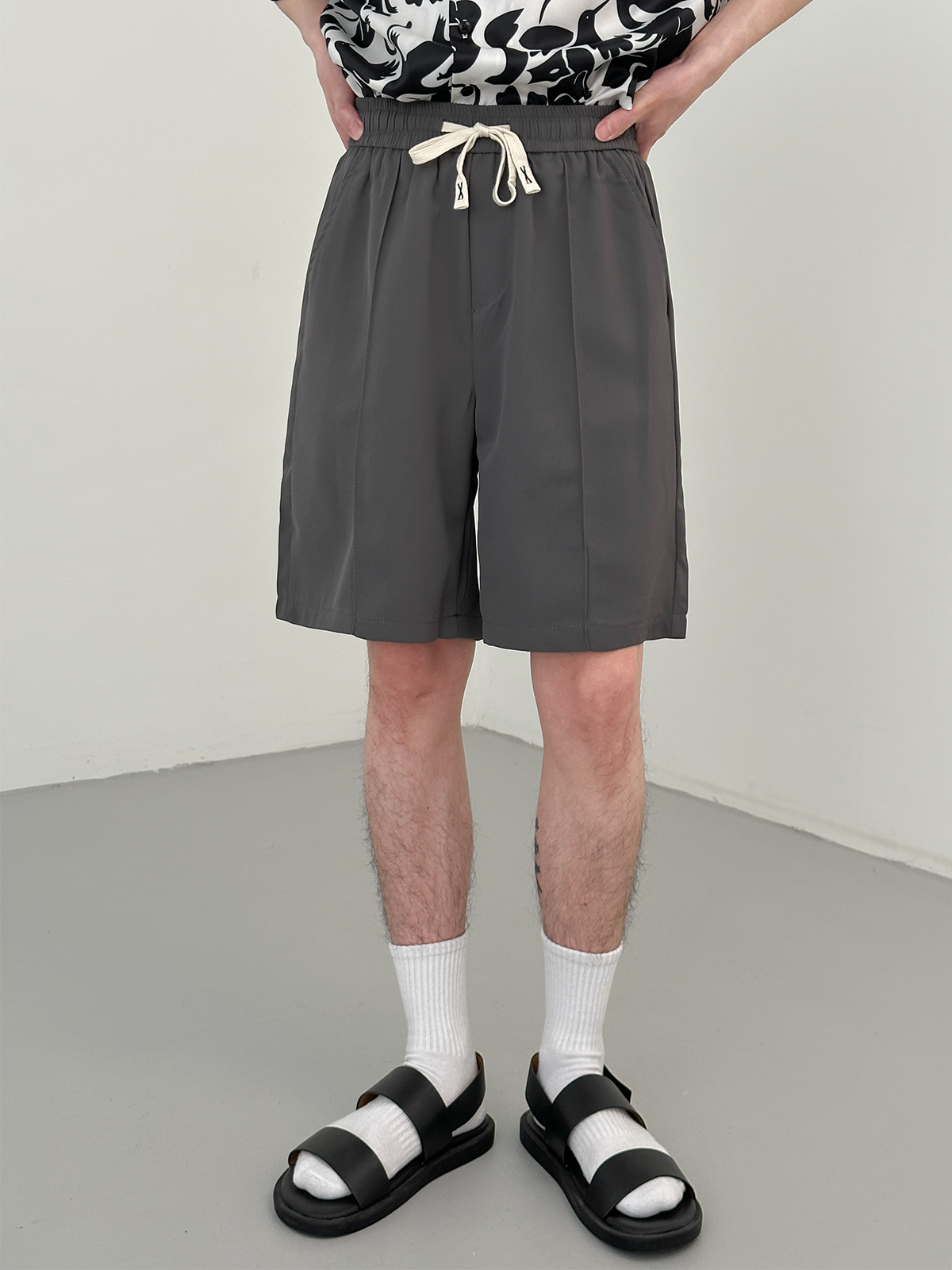 DAZO 抽繩短褲男夏季薄款直筒運動休閒五分褲純色百搭褲子