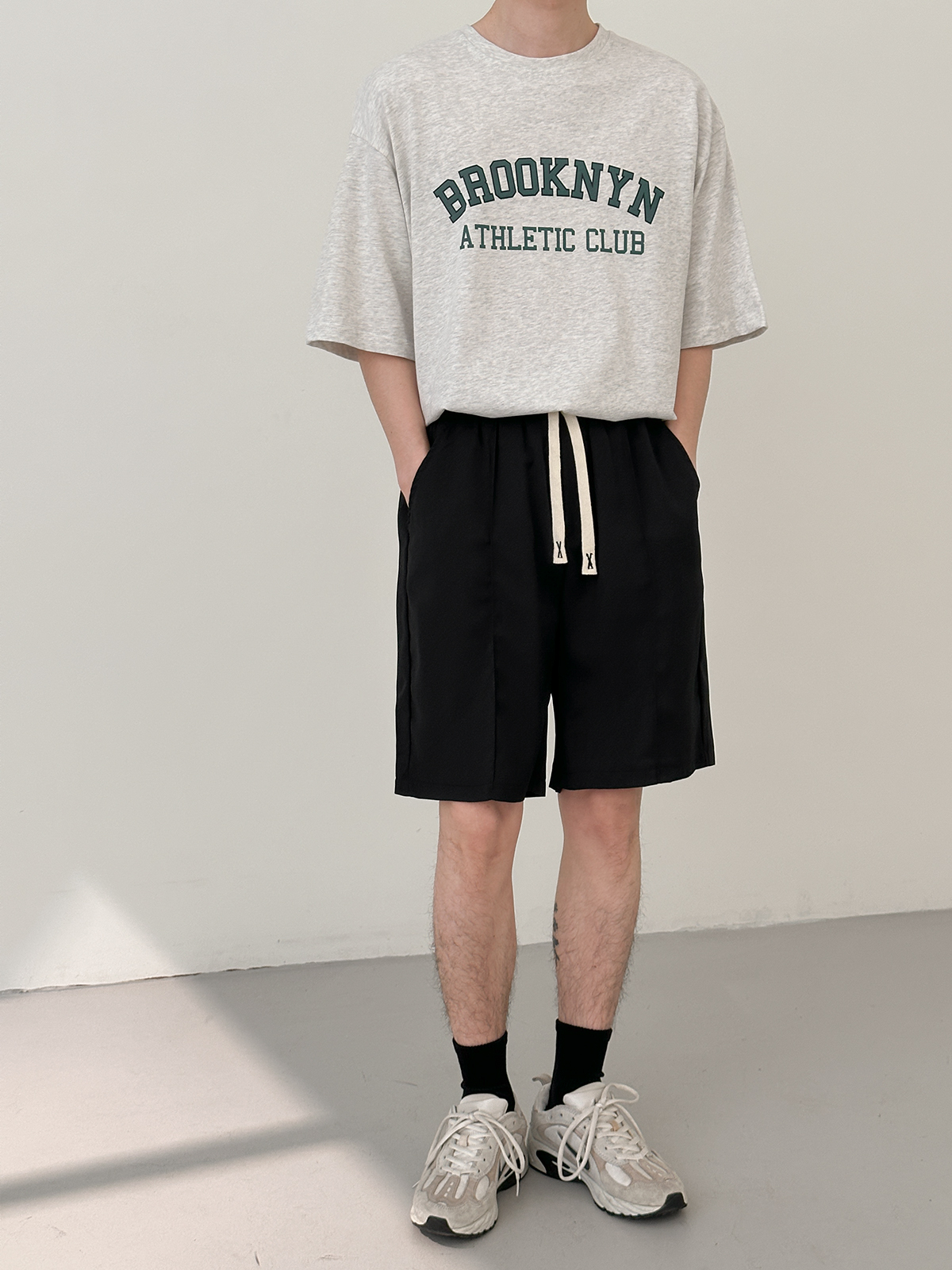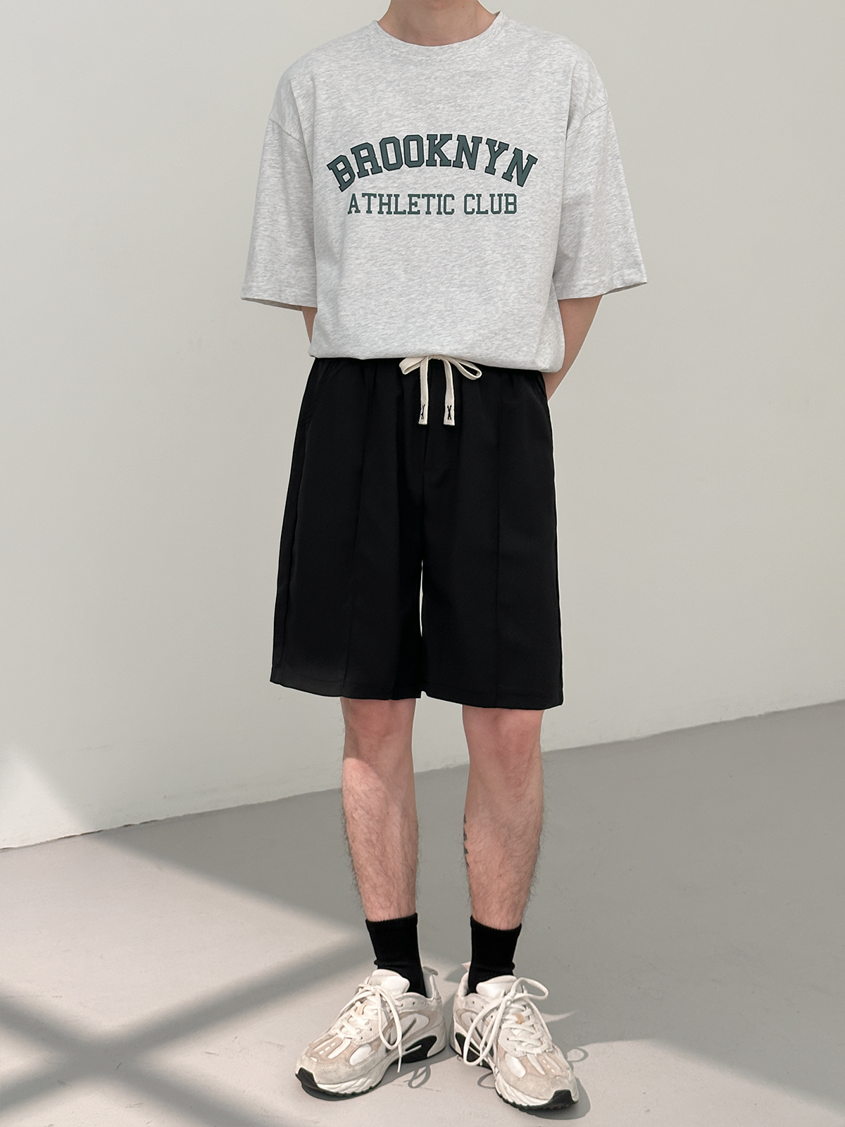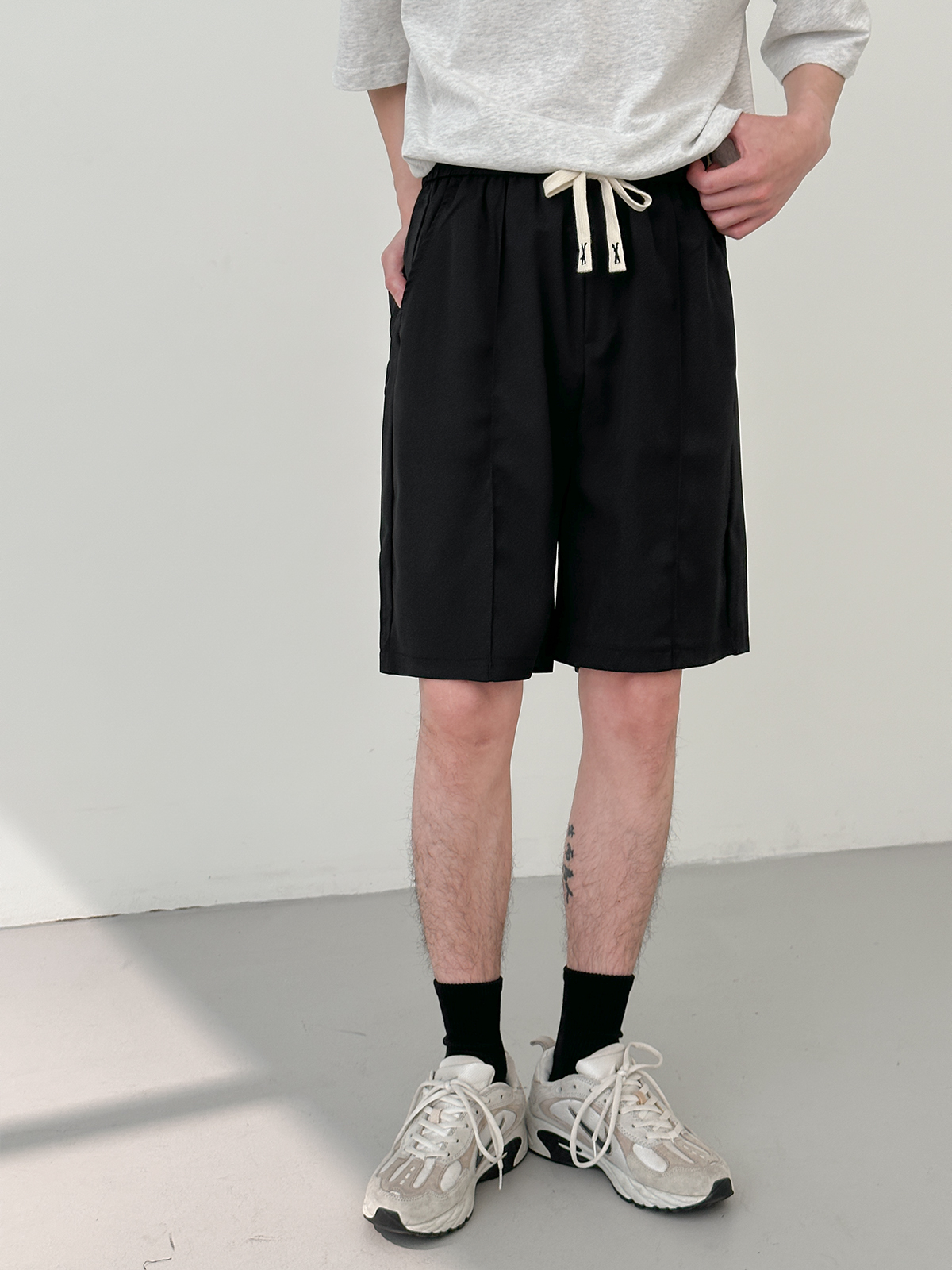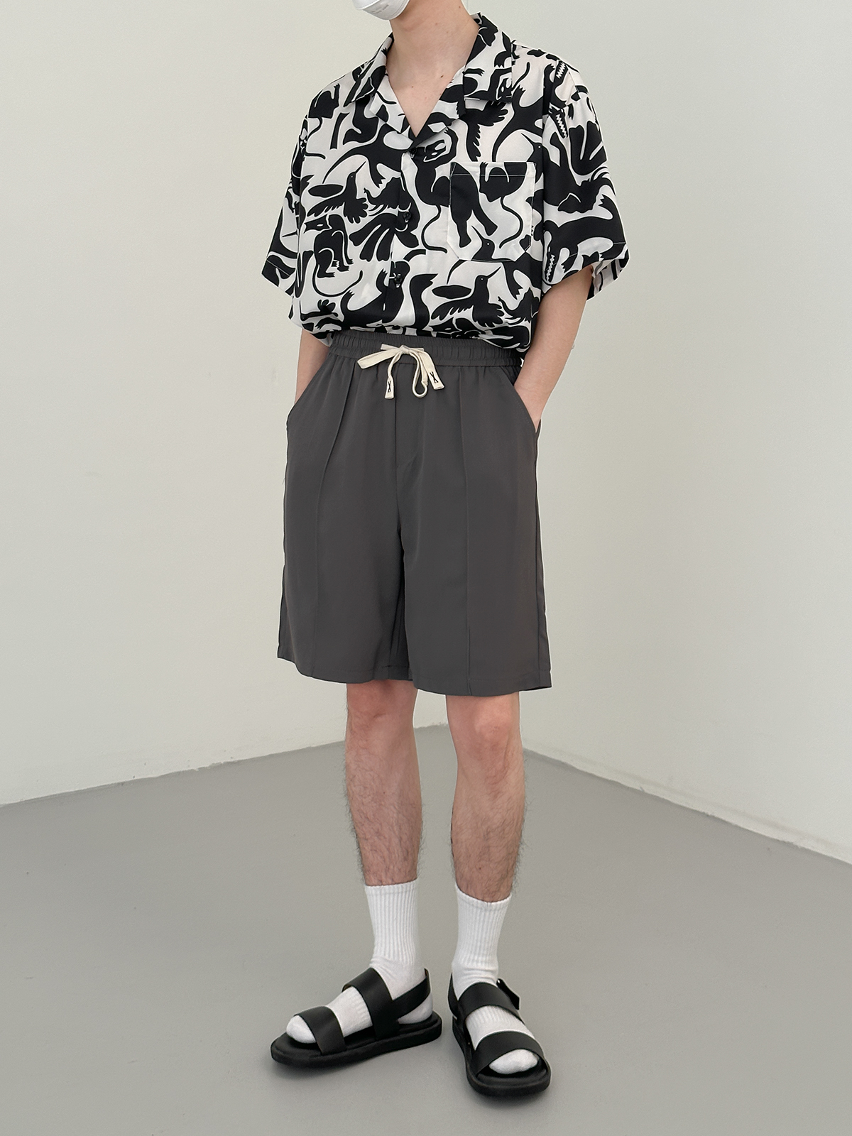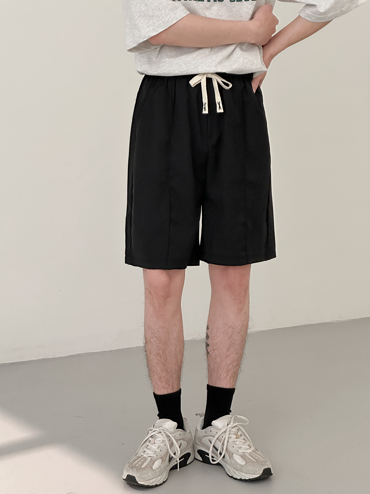 DAZO 抽繩短褲男夏季薄款直筒運動休閒五分褲純色百搭褲子