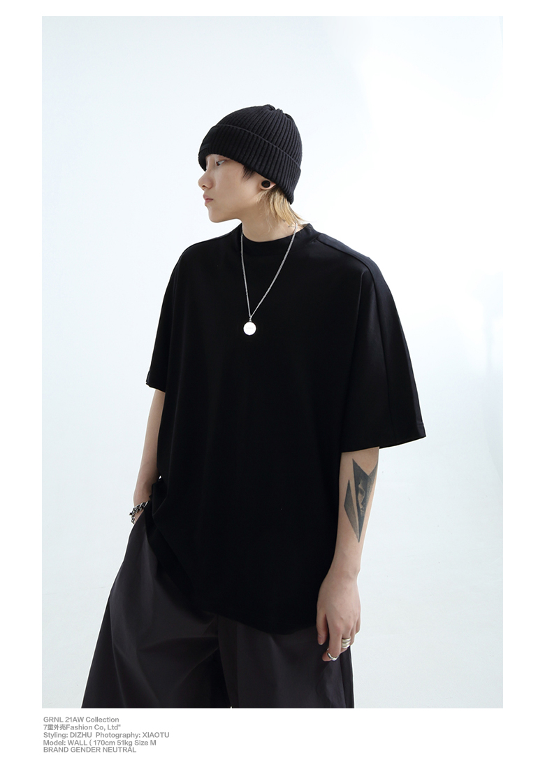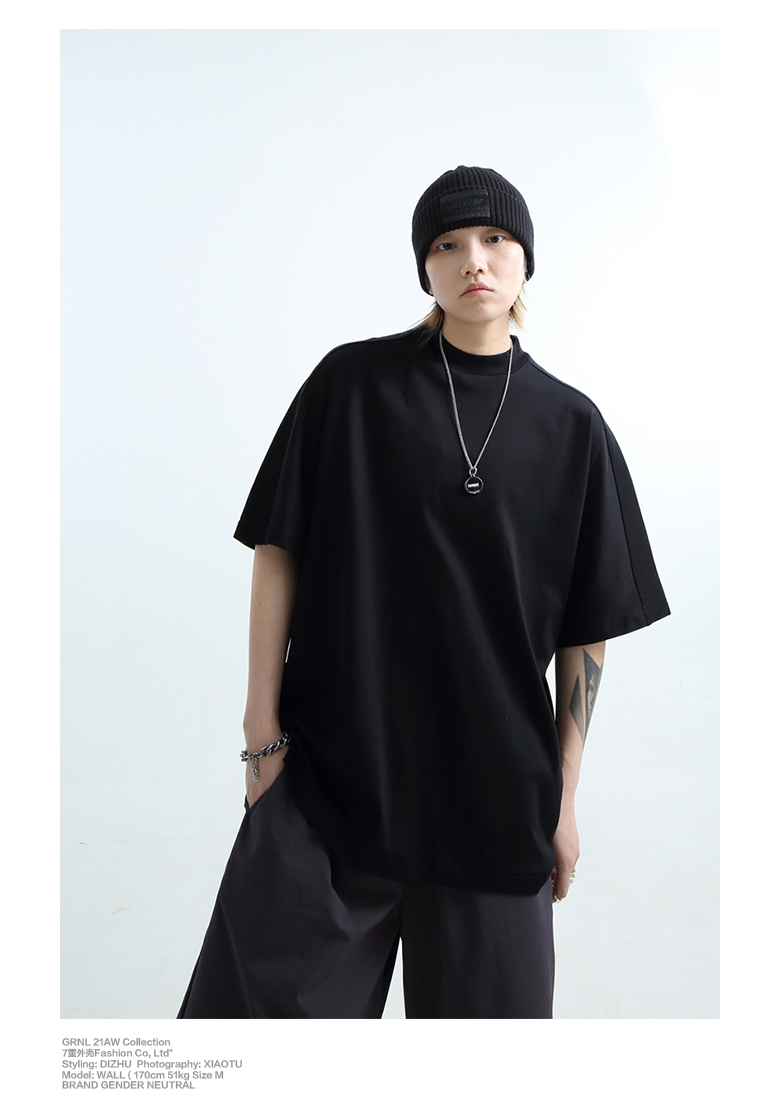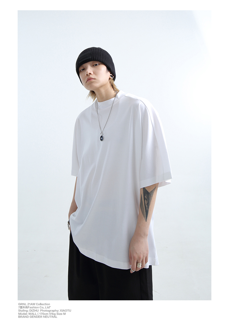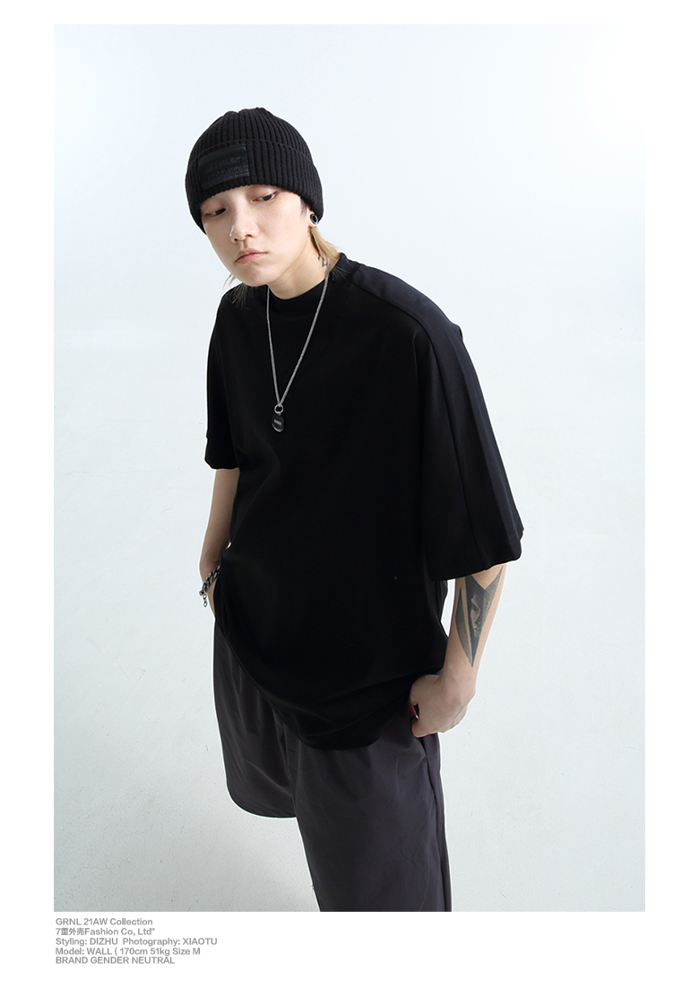 「GRNL」穿搭愉悅至上 液氨連肩袖廓形小立領免熨燙五分短袖T恤男女