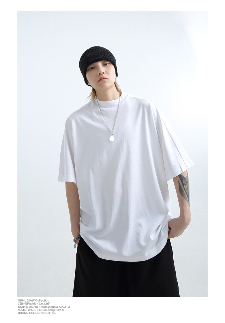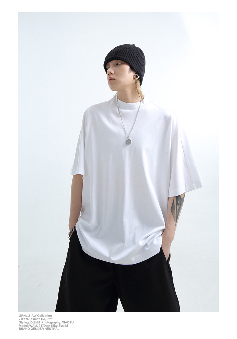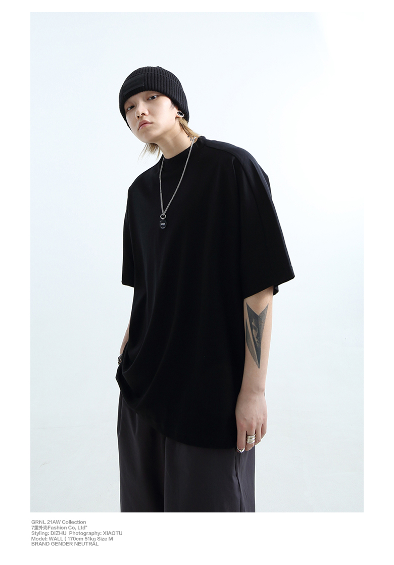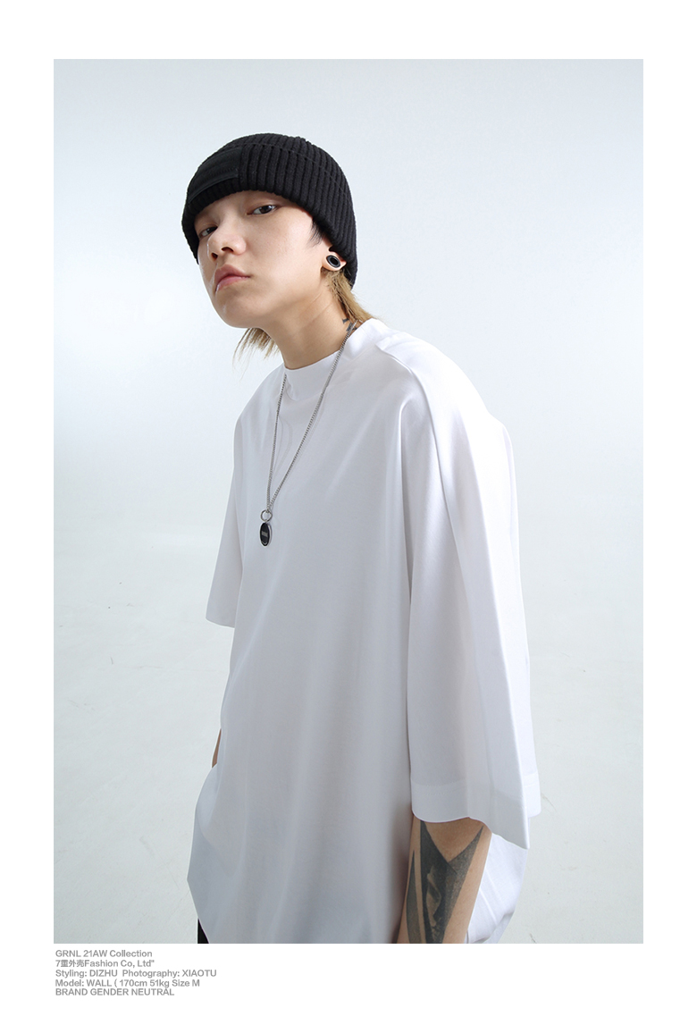 「GRNL」穿搭愉悅至上 液氨連肩袖廓形小立領免熨燙五分短袖T恤男女