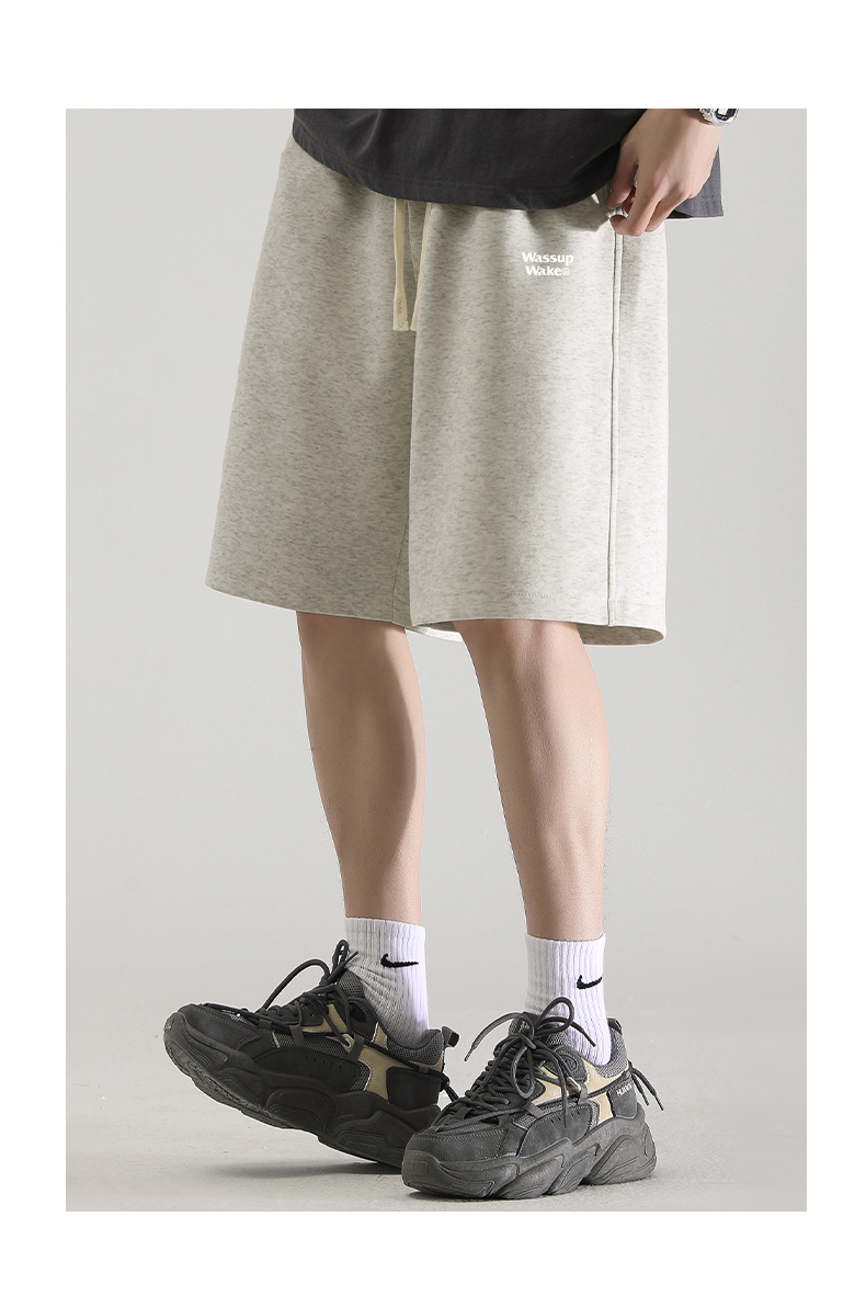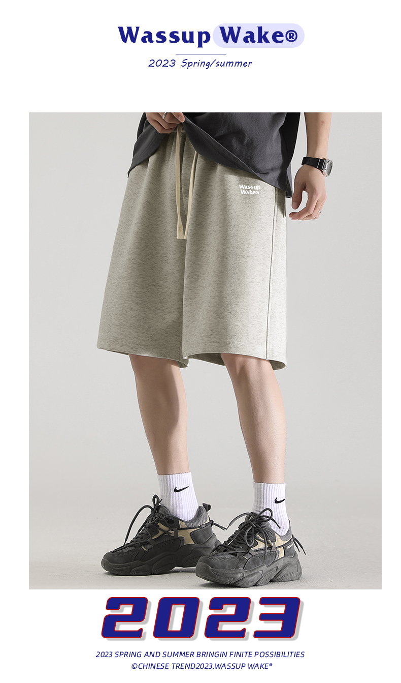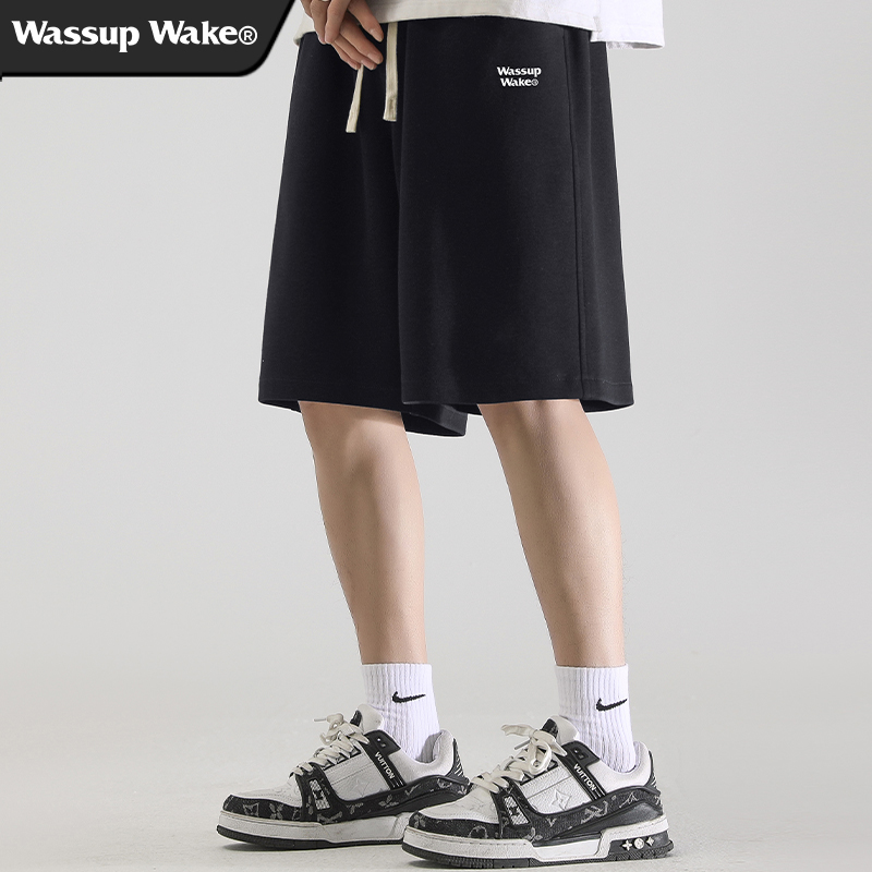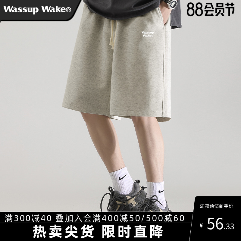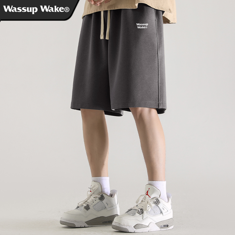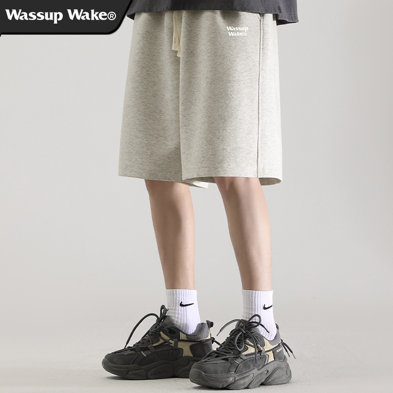 wassup wake灰色男士短褲男潮牌夏季新款美式運動休閒男生五分褲