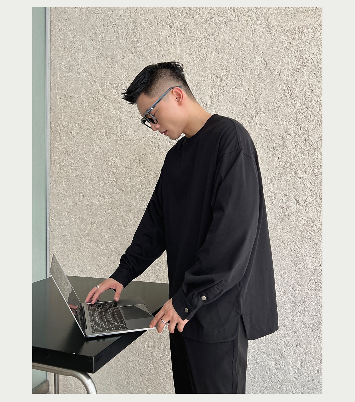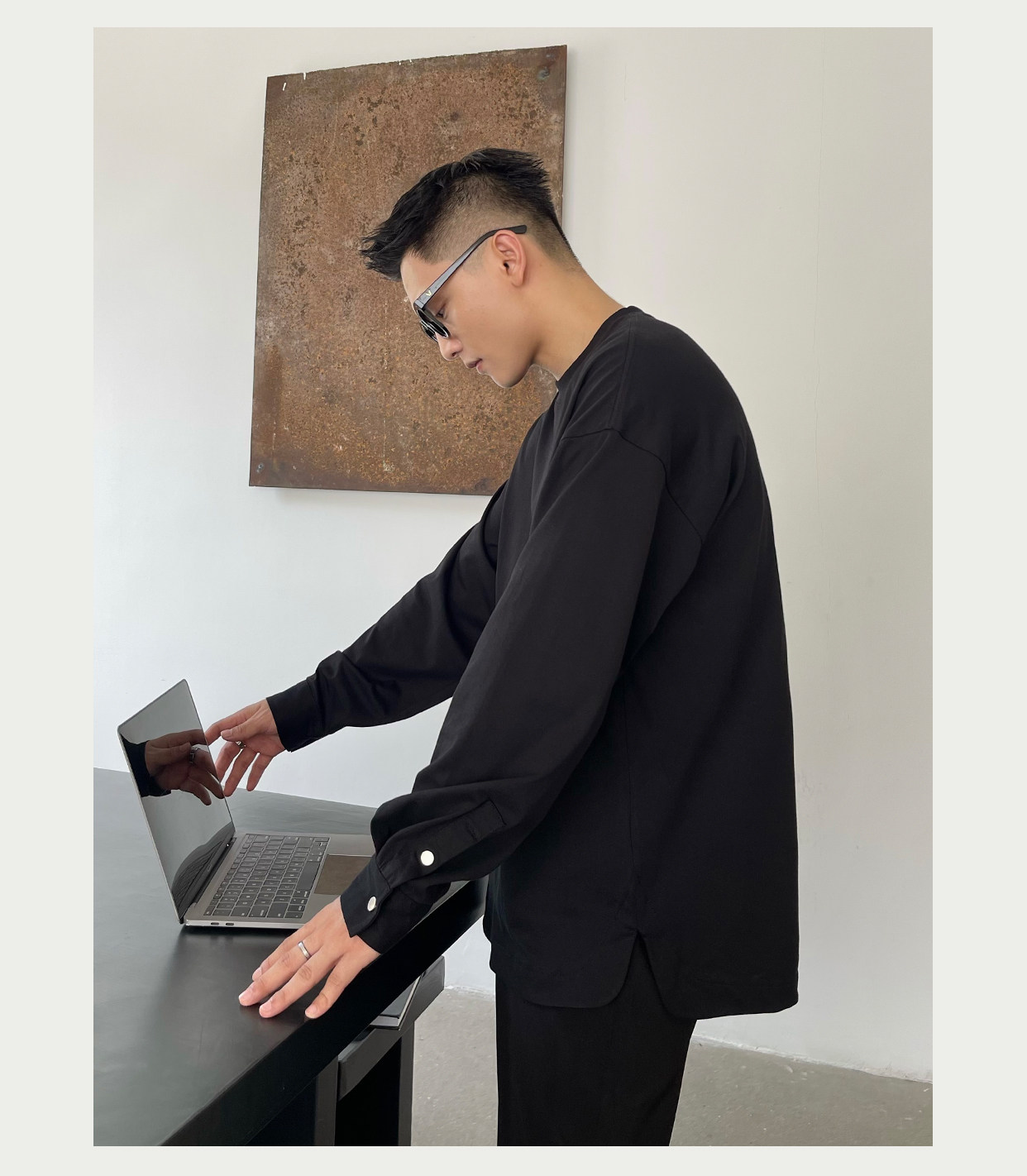 2022衛衣男潮ins潮牌新款下擺開叉圓領長袖純色百搭休閒寬鬆上衣