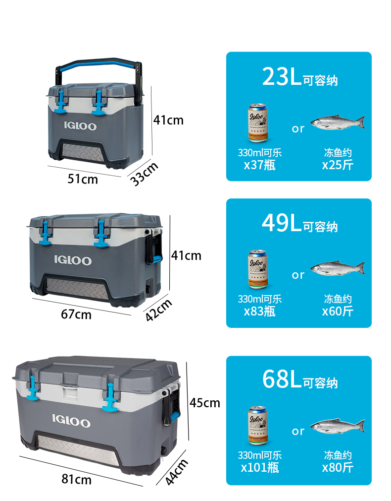 IGLOO易酷樂海釣箱保溫箱冷藏箱戶外小型冰桶釣魚箱海釣專用冰箱