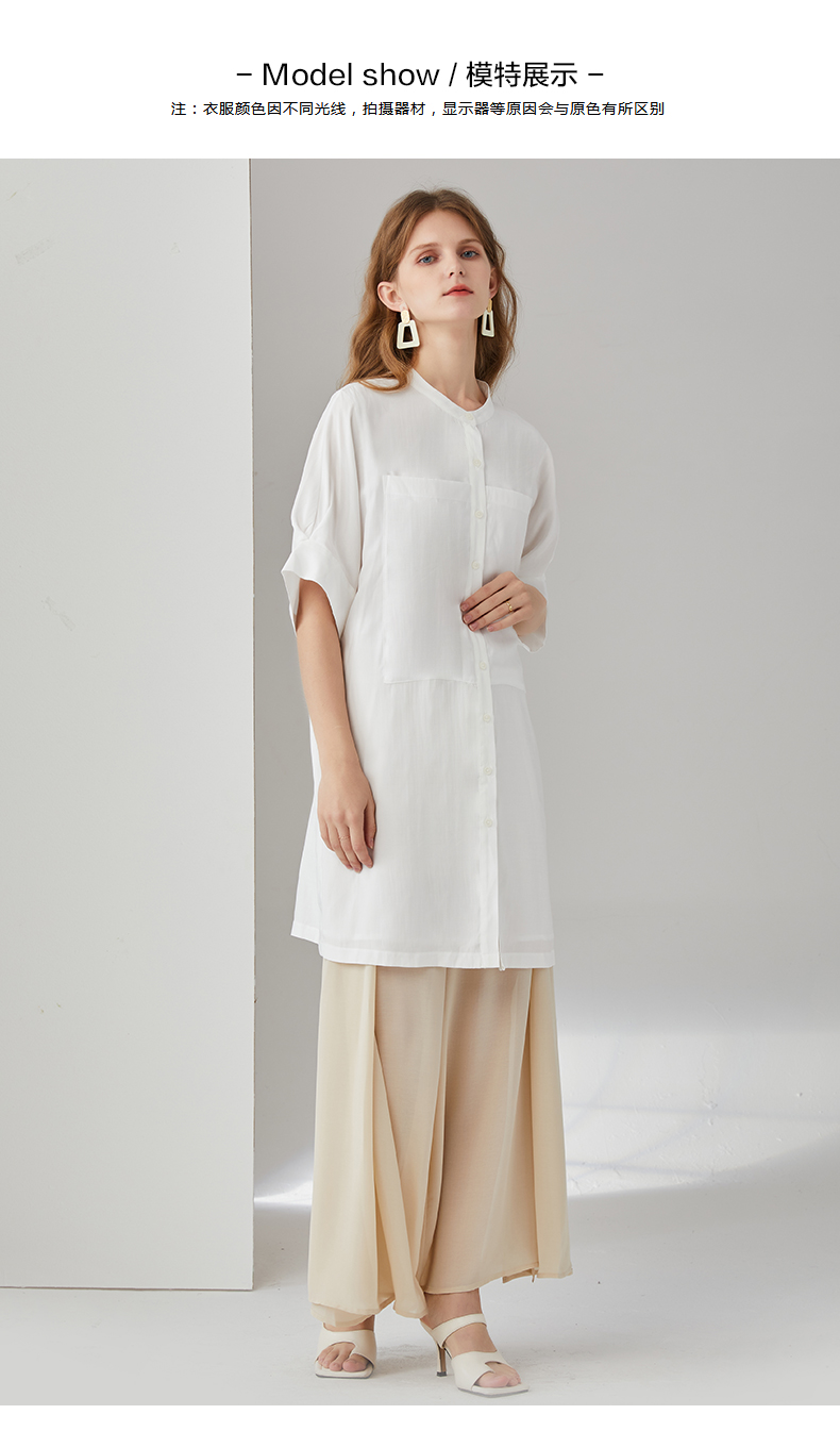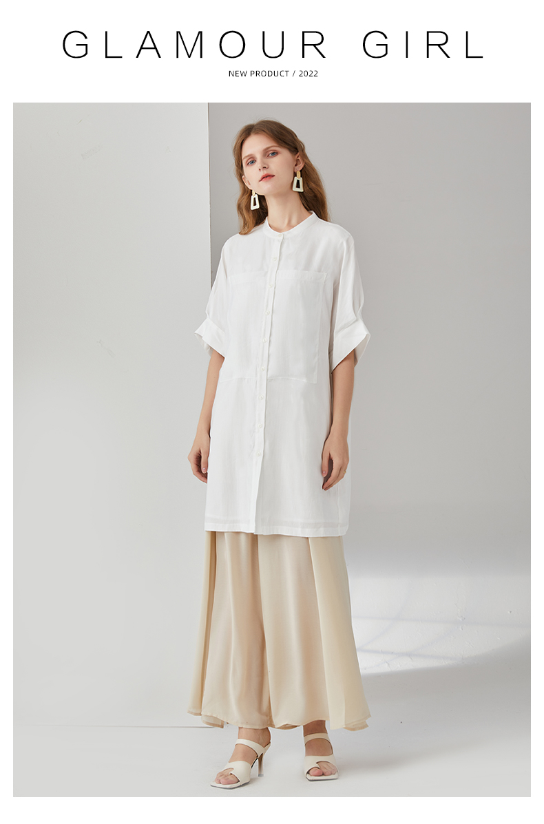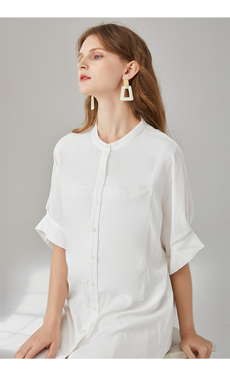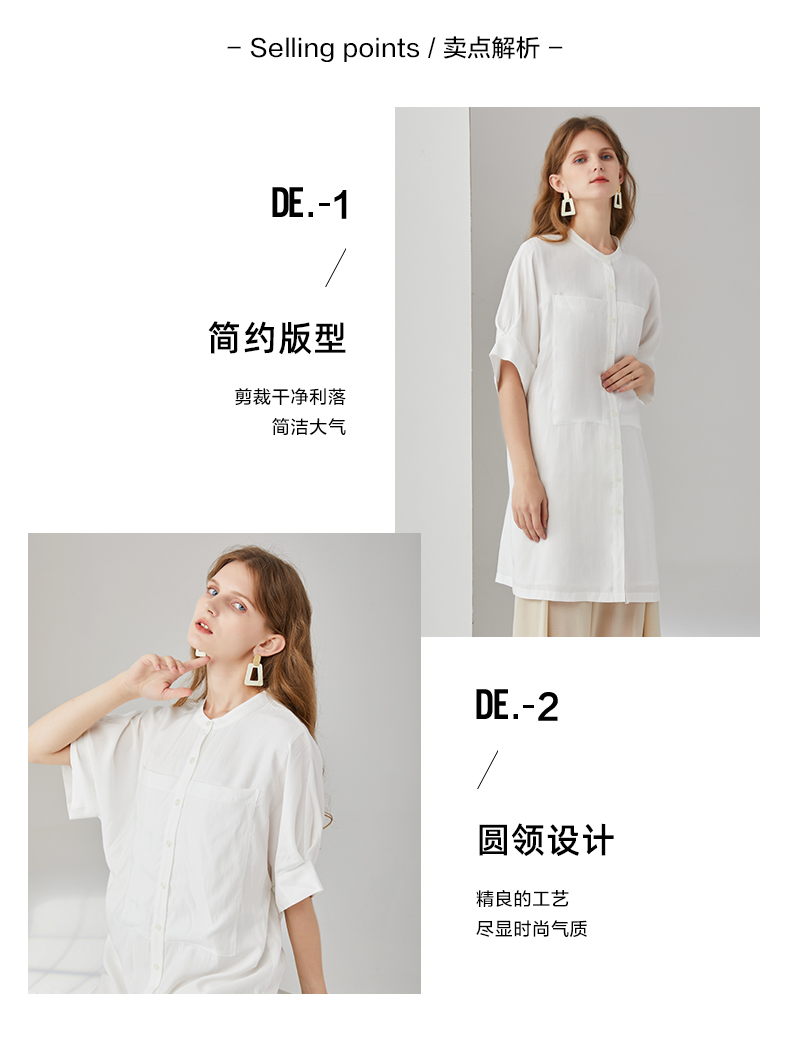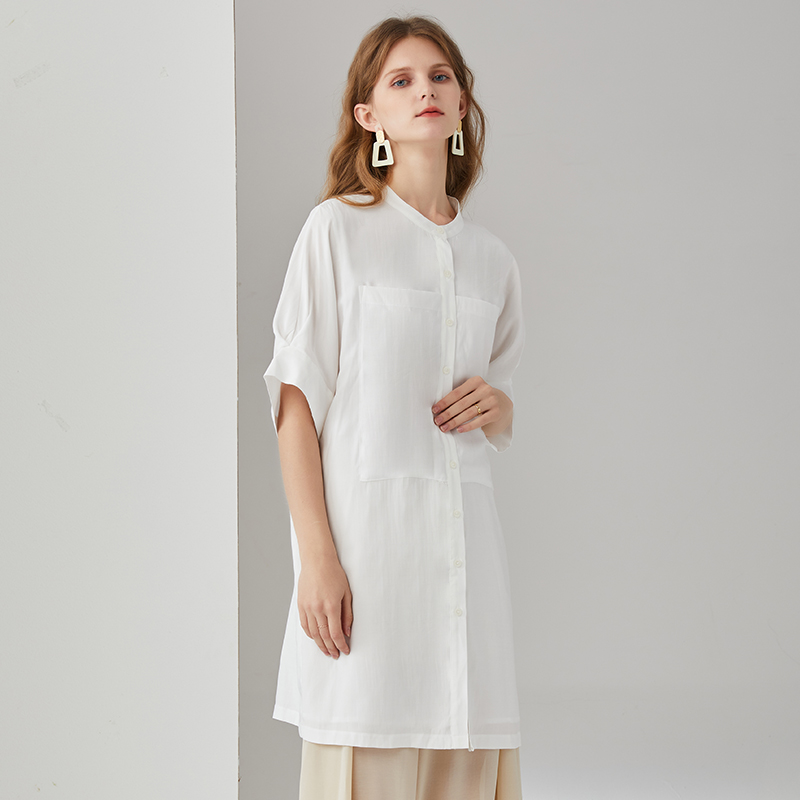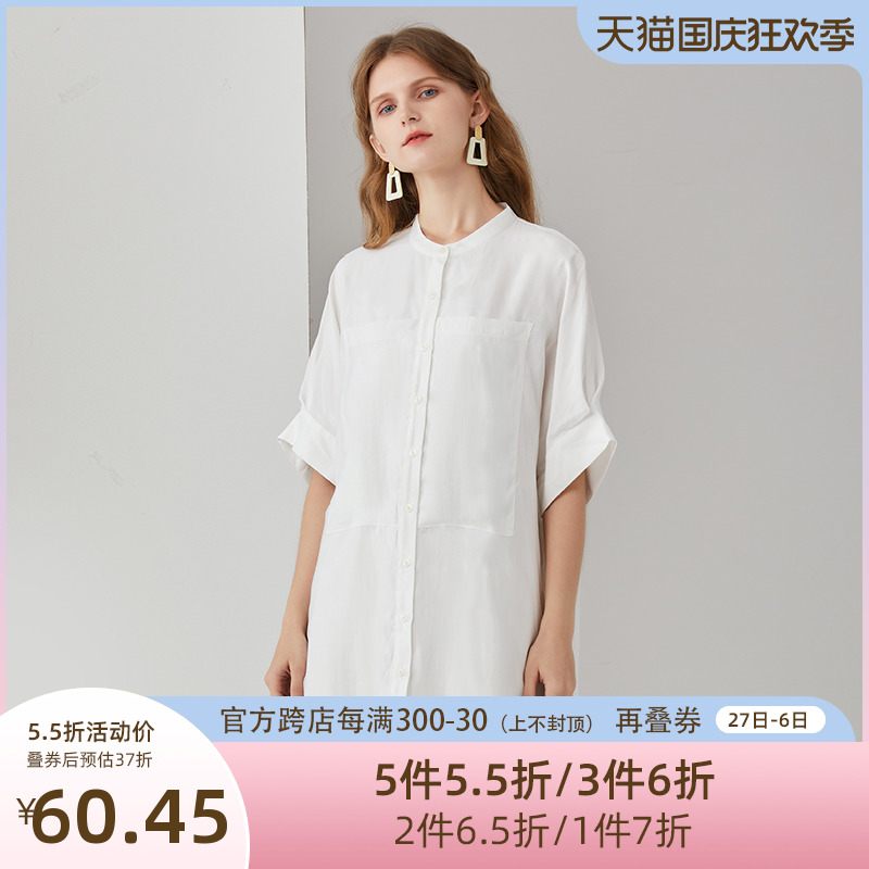 簡朵洋裝女夏季新款韓版通勤純白五分袖襯衫裙子G202125