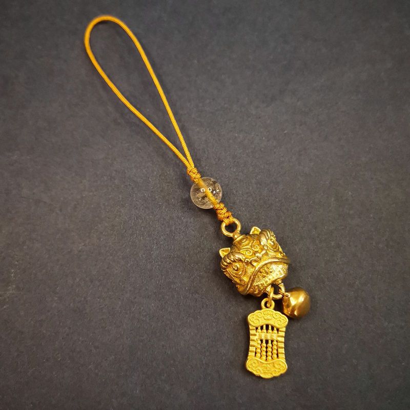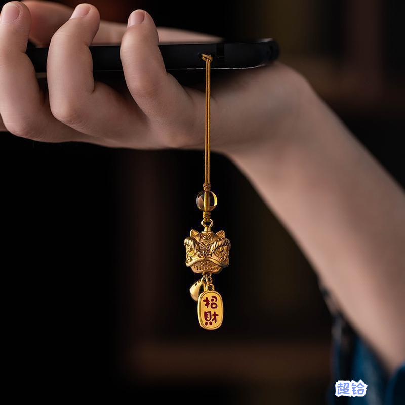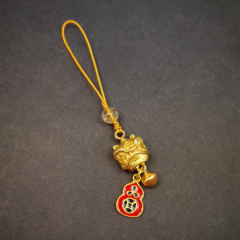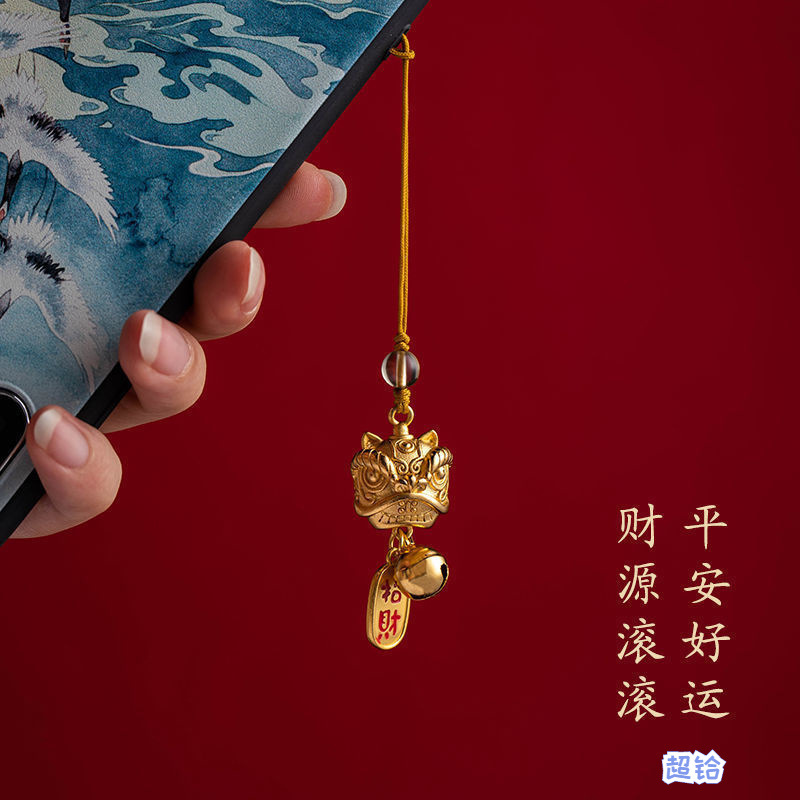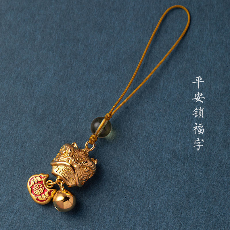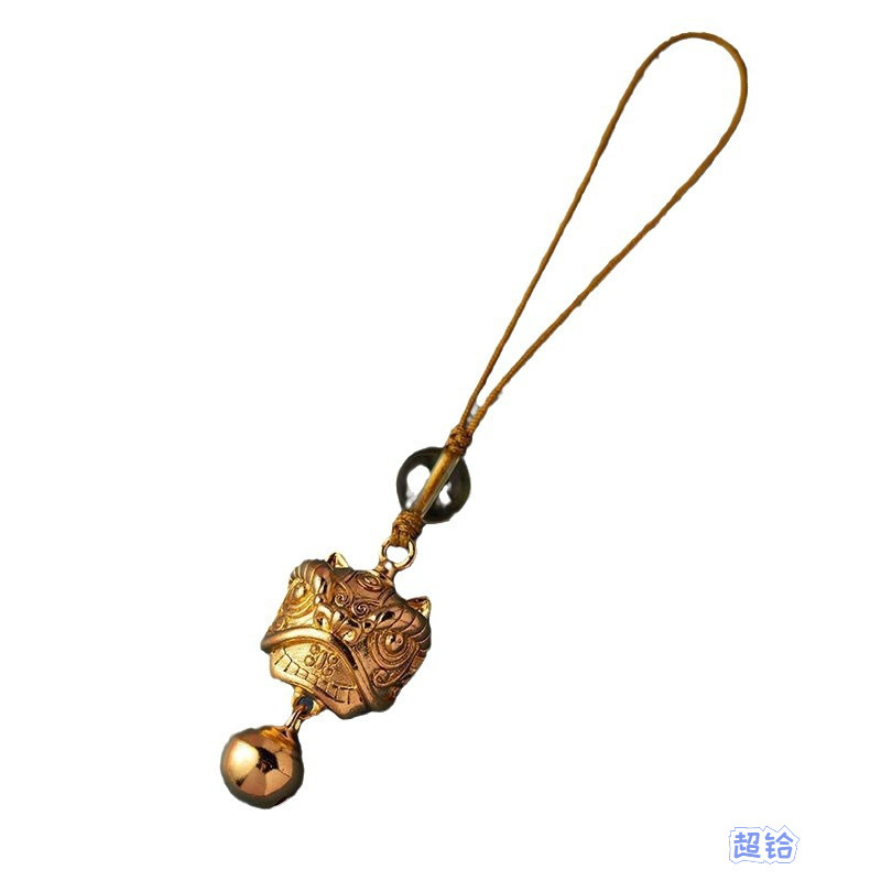 黄铜醒狮铃铛手机链挂件中国风吊坠挂饰包挂财源平安好运U盘挂绳