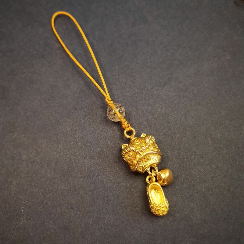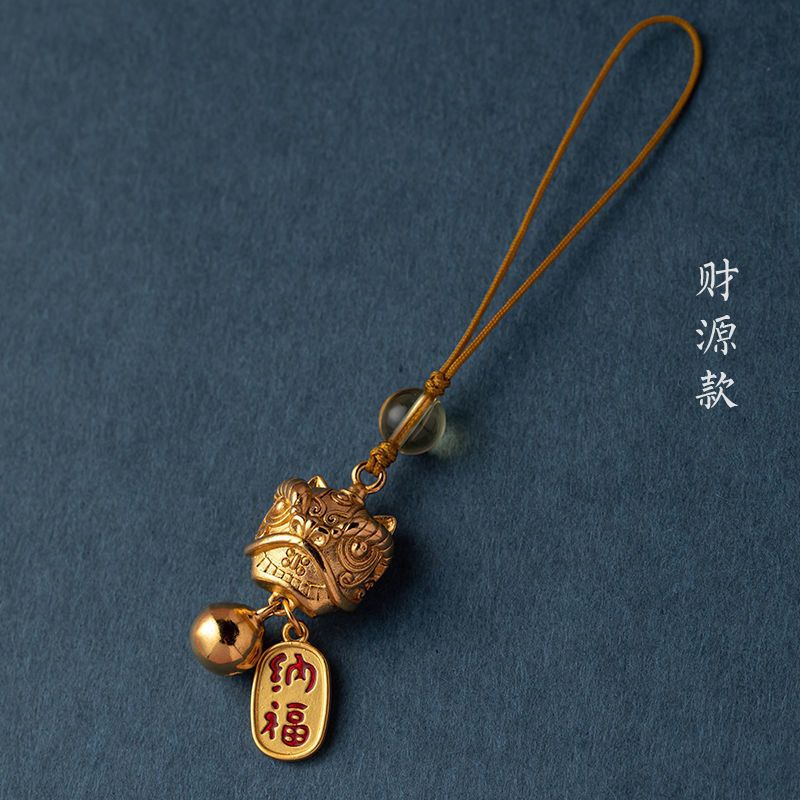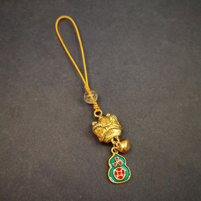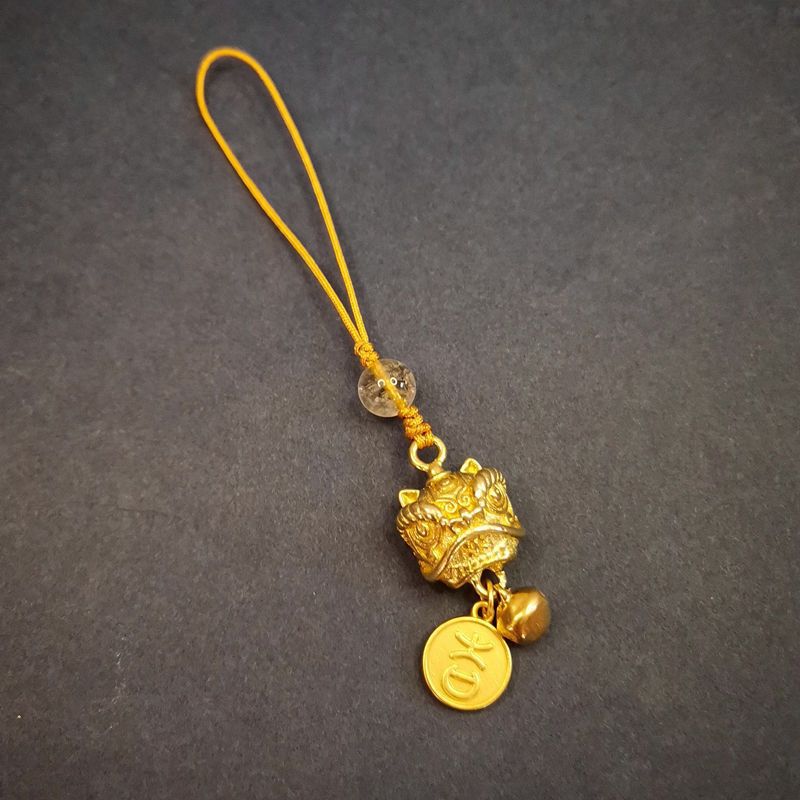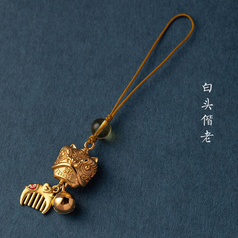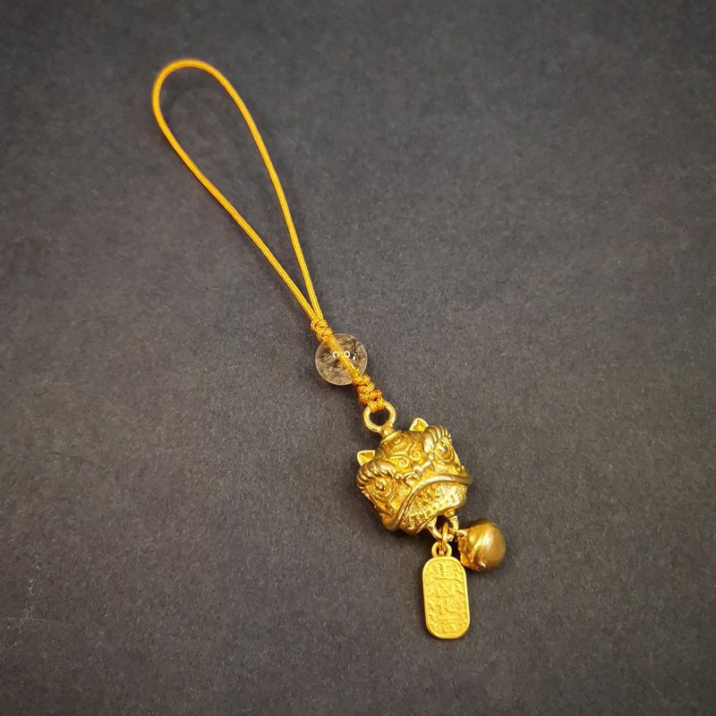 黄铜醒狮铃铛手机链挂件中国风吊坠挂饰包挂财源平安好运U盘挂绳