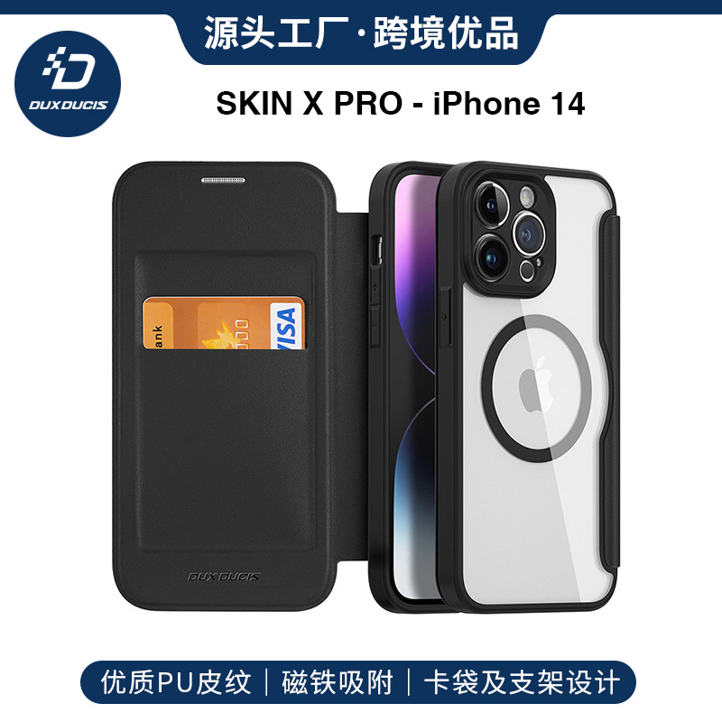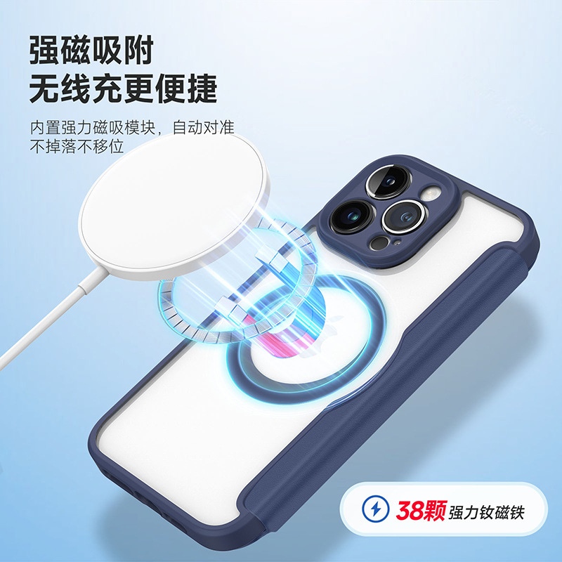 适用苹果15pro手机壳批发MagSafe强磁吸13翻盖插卡iphone14 case