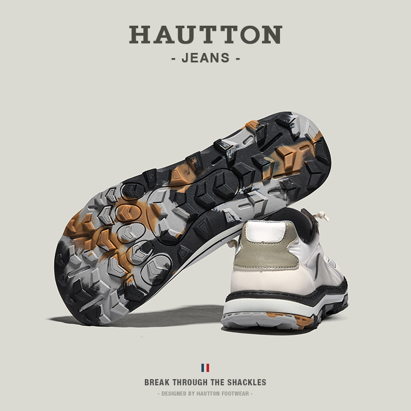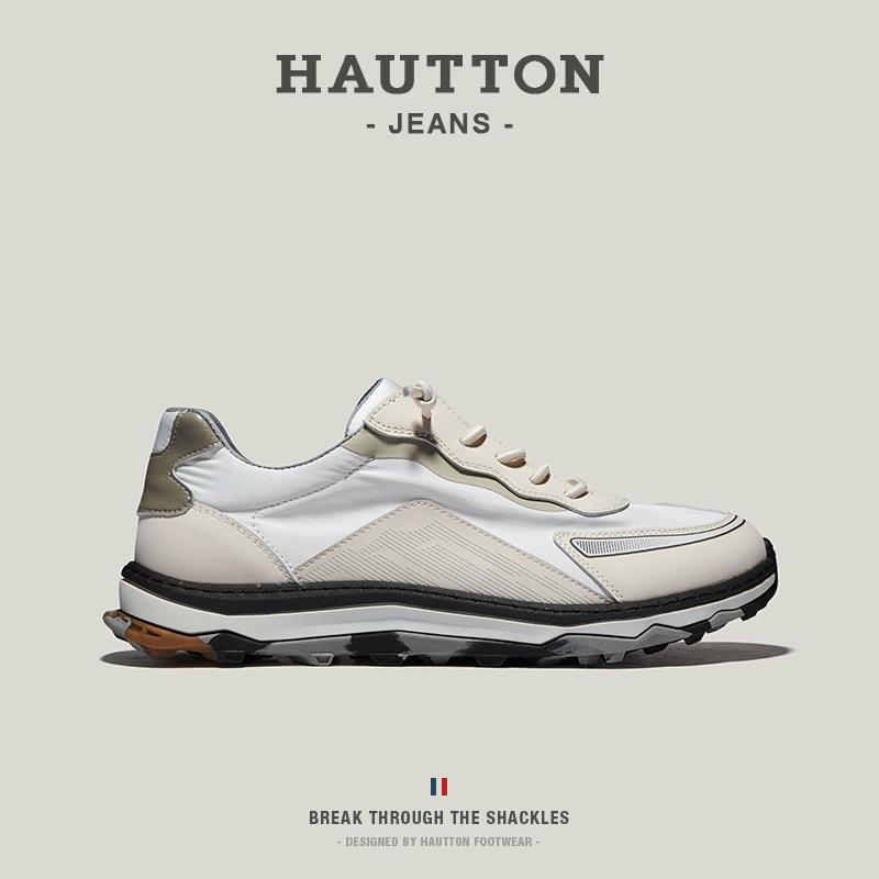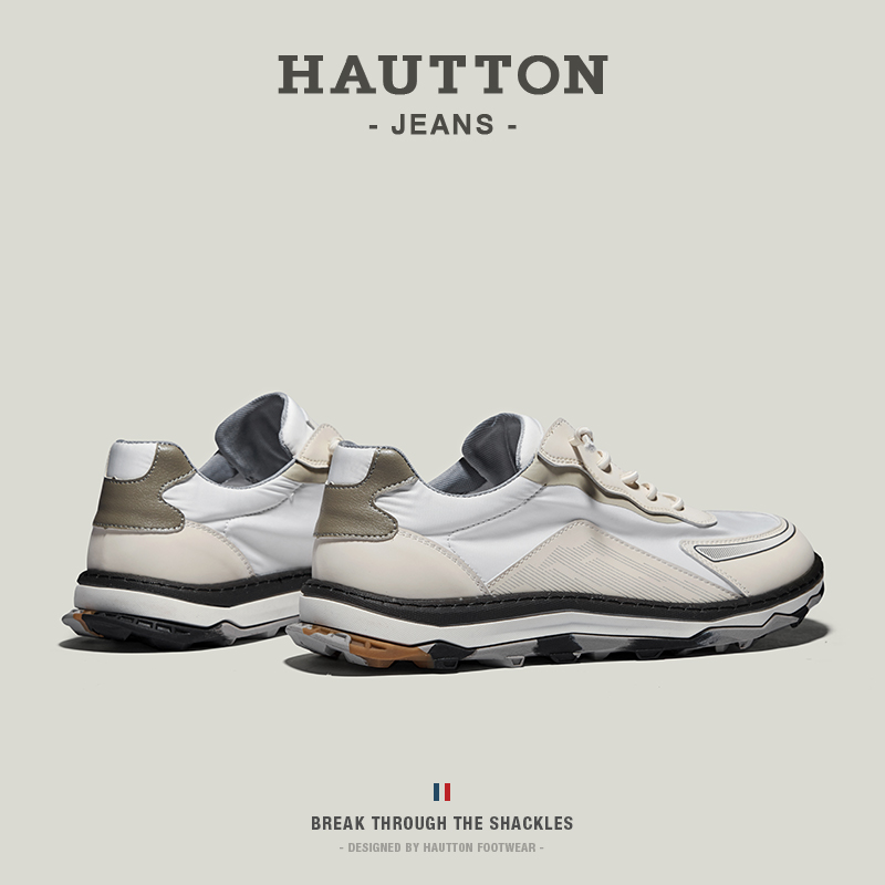 HauttonJeans男鞋夏季透氣2023新款休閒運動鞋男一腳蹬小白鞋板鞋