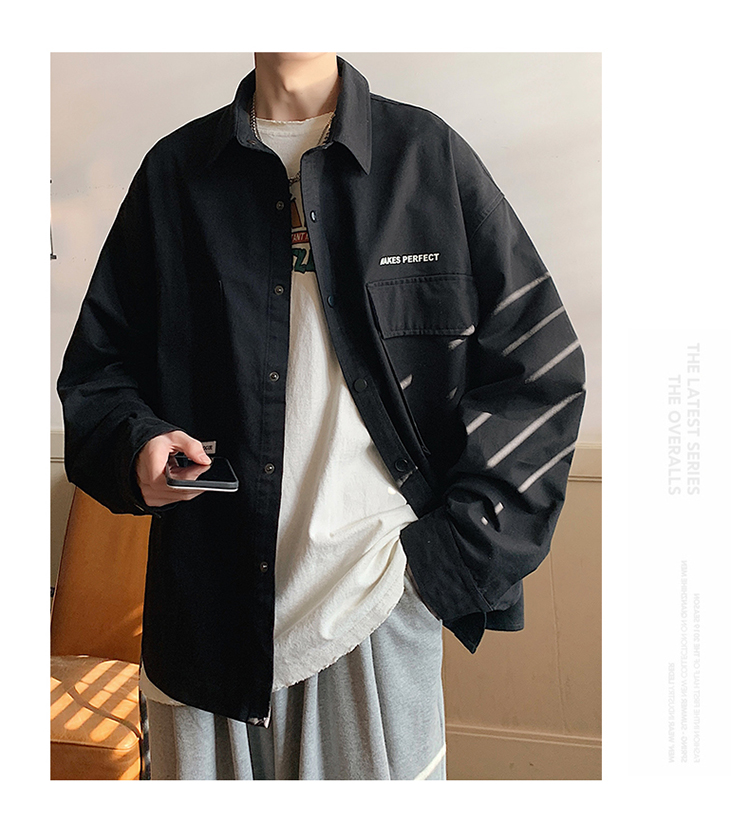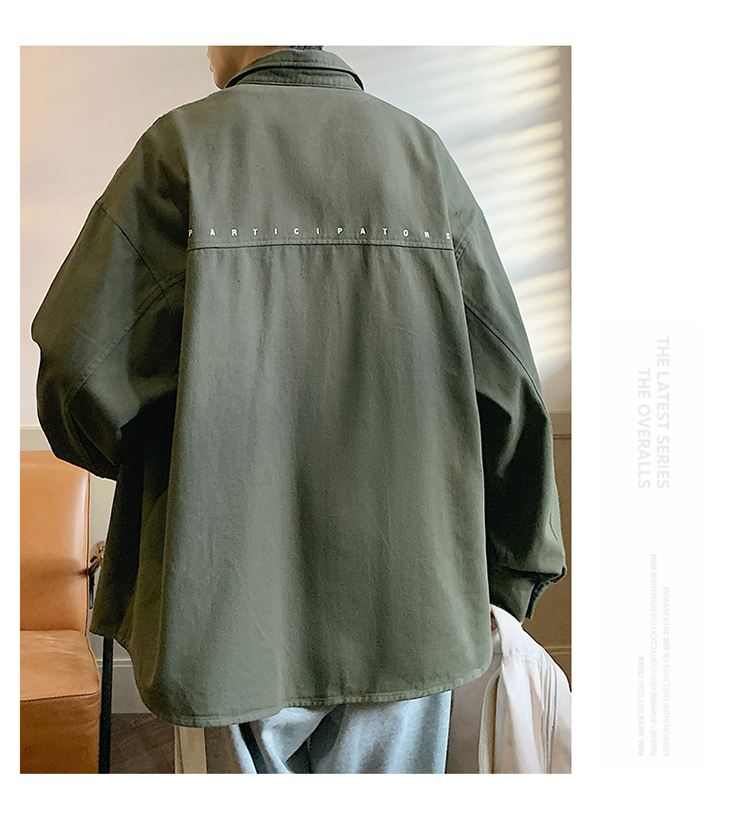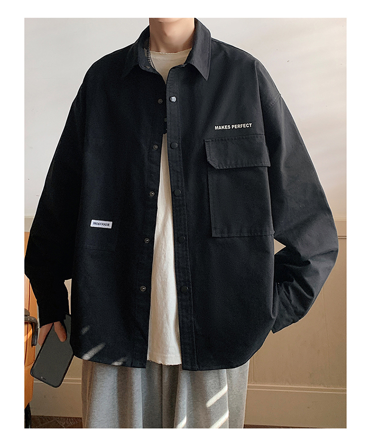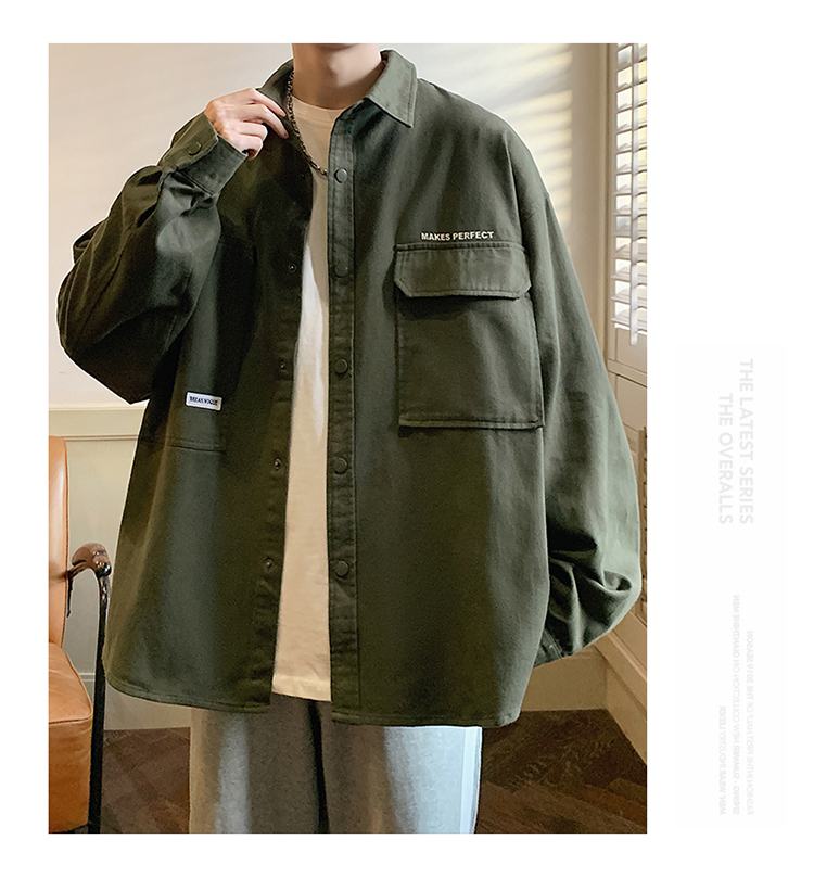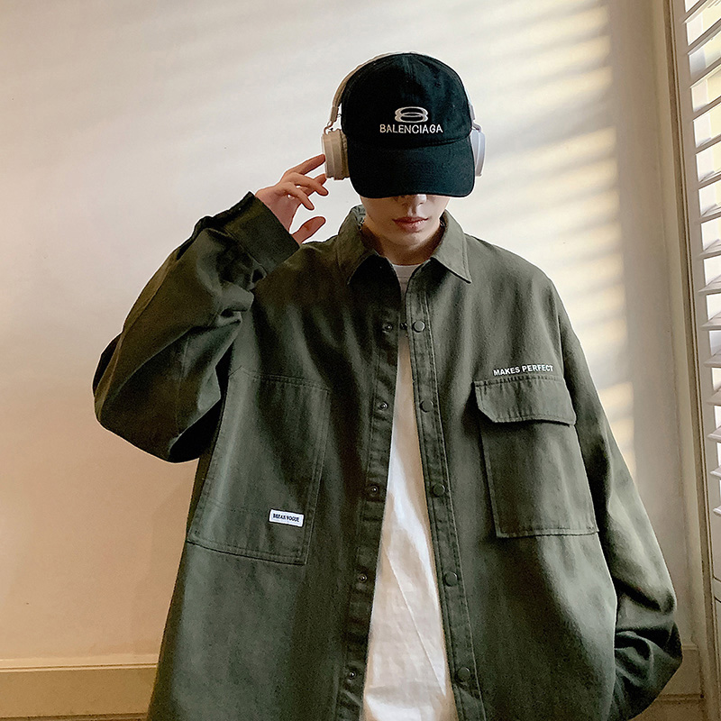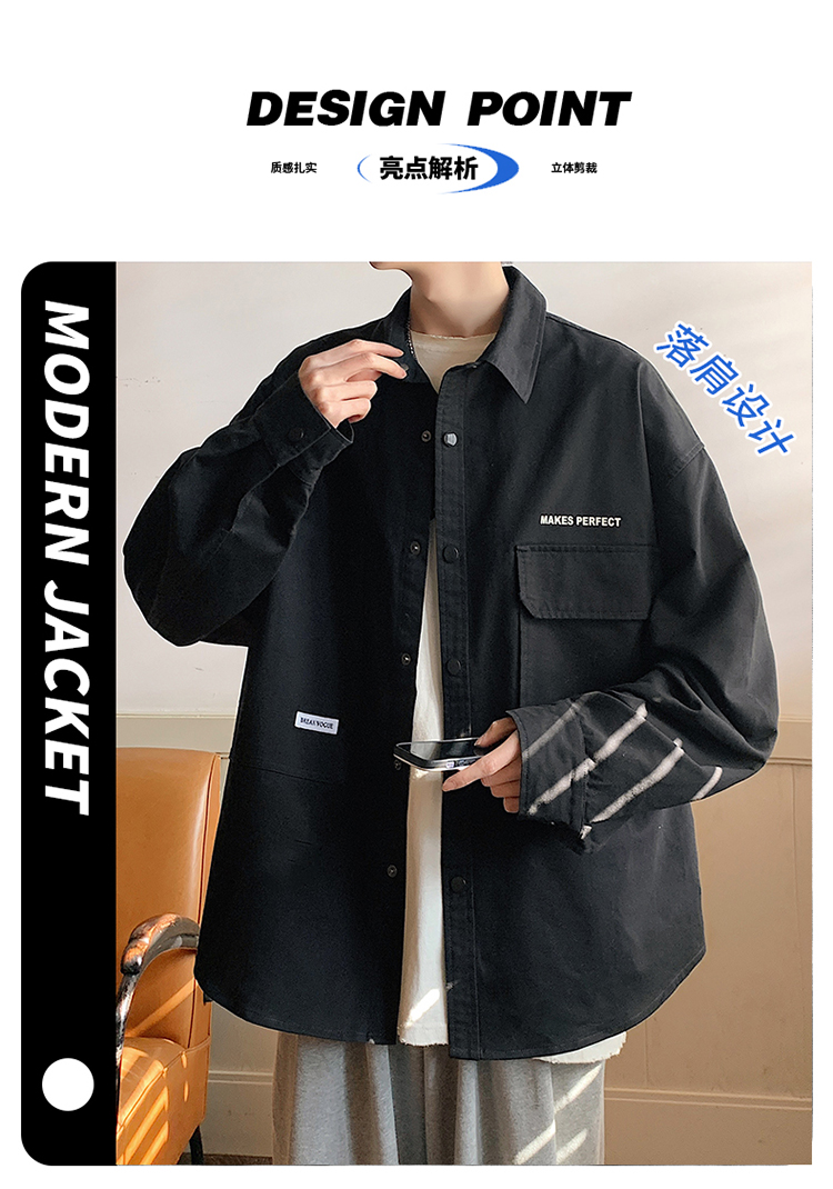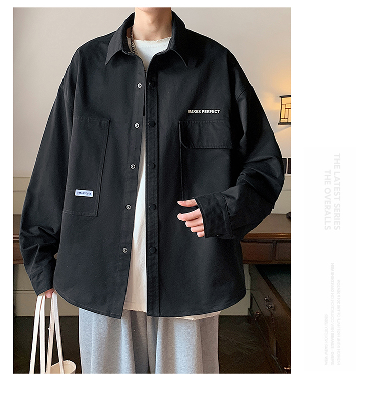 高級感重磅長袖襯衫男春秋情侶美式潮牌男生痞帥夾克襯衫工裝外套