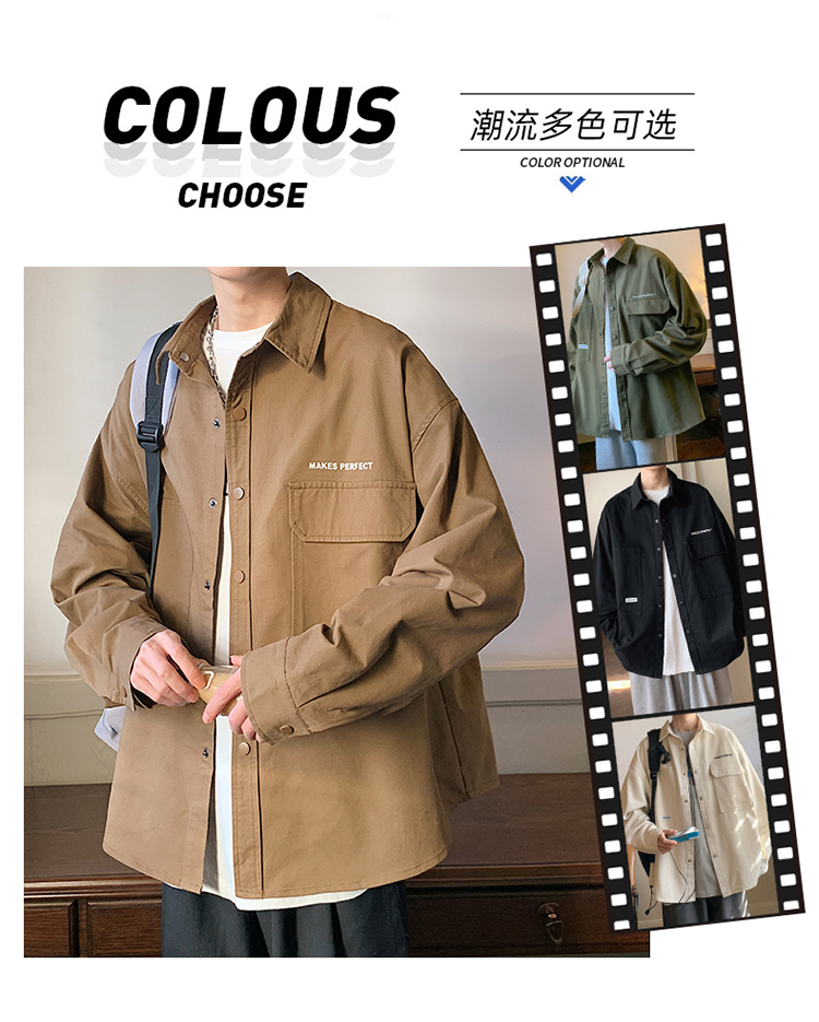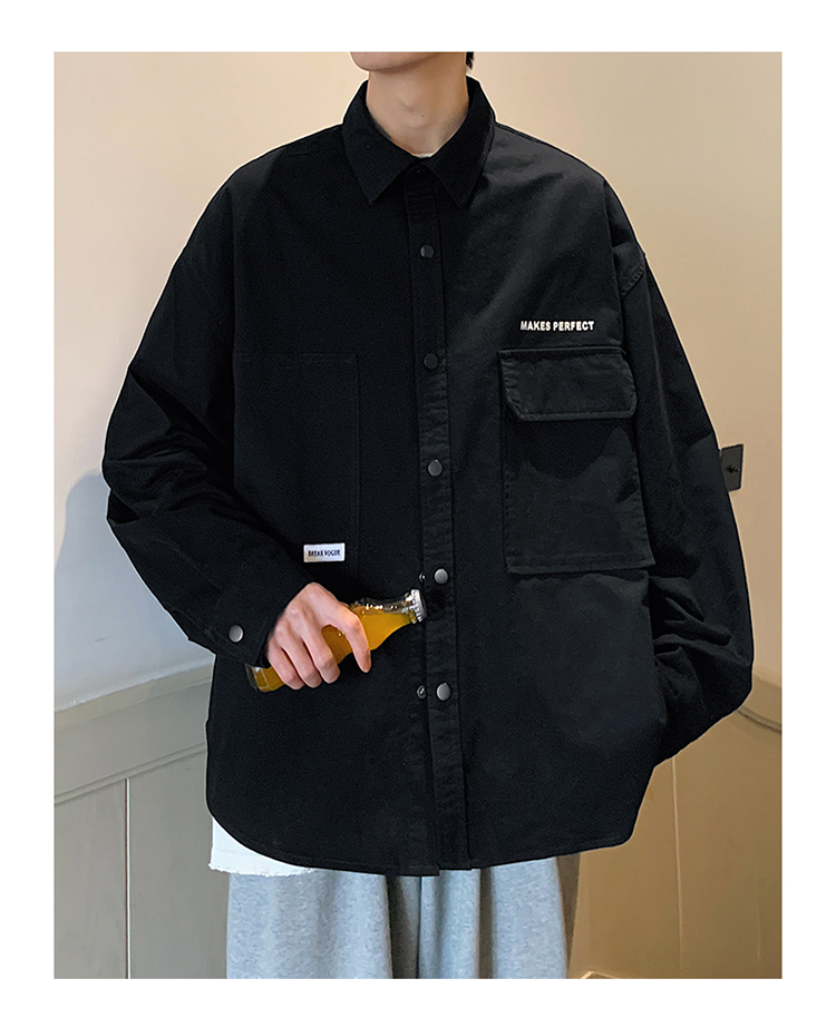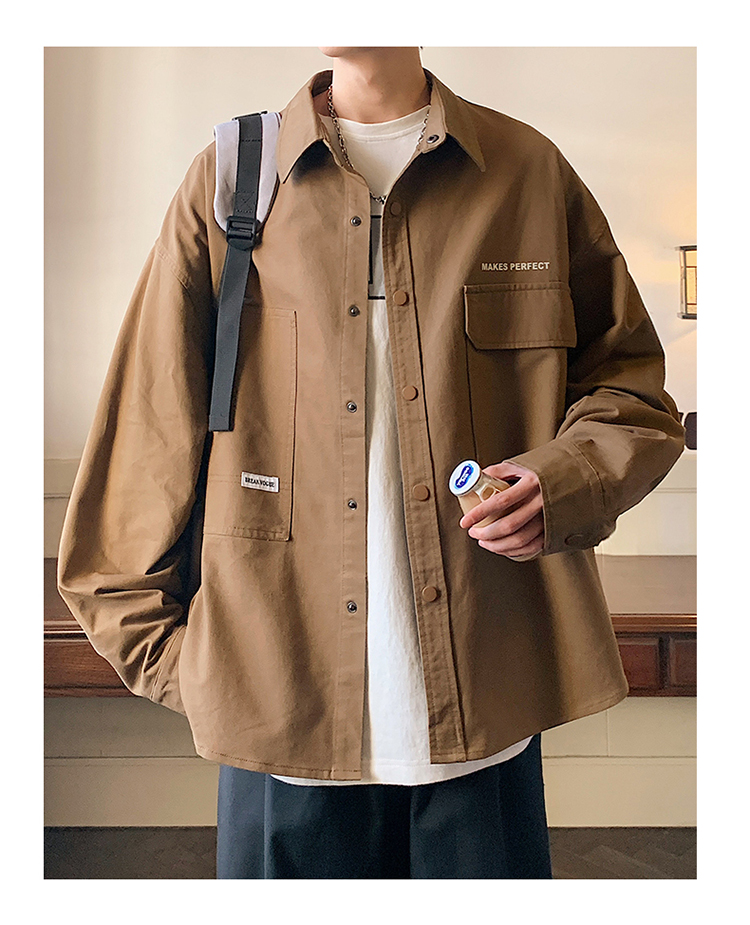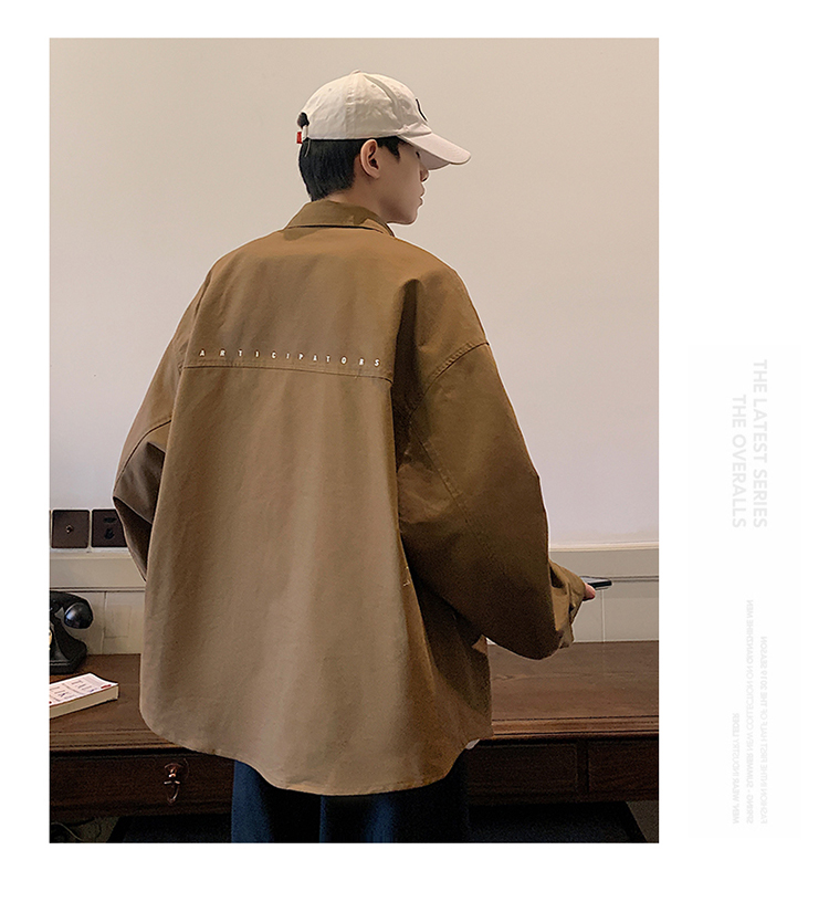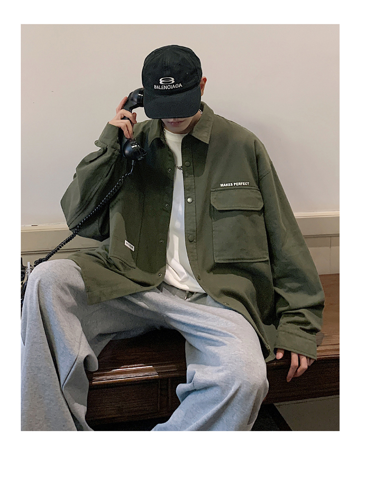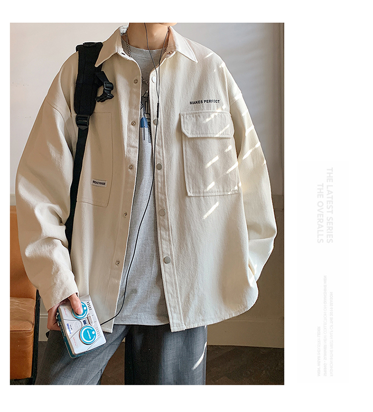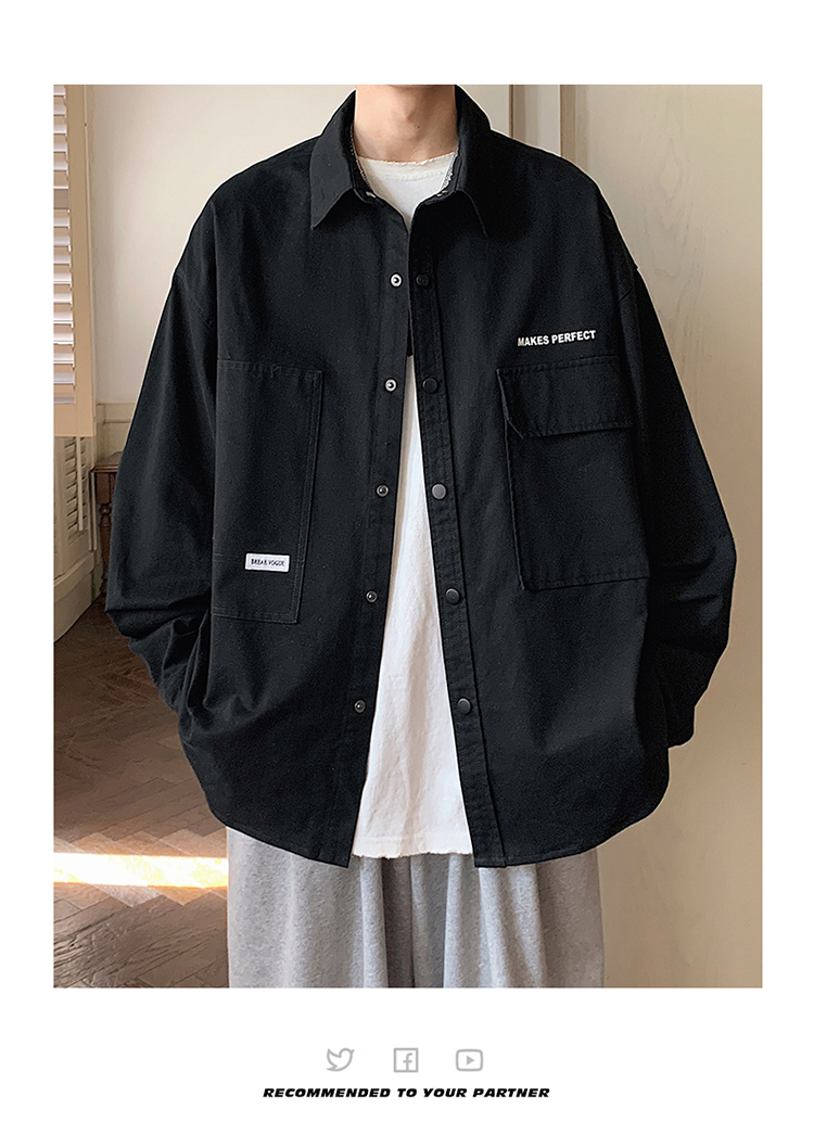高級感重磅長袖襯衫男春秋情侶美式潮牌男生痞帥夾克襯衫工裝外套