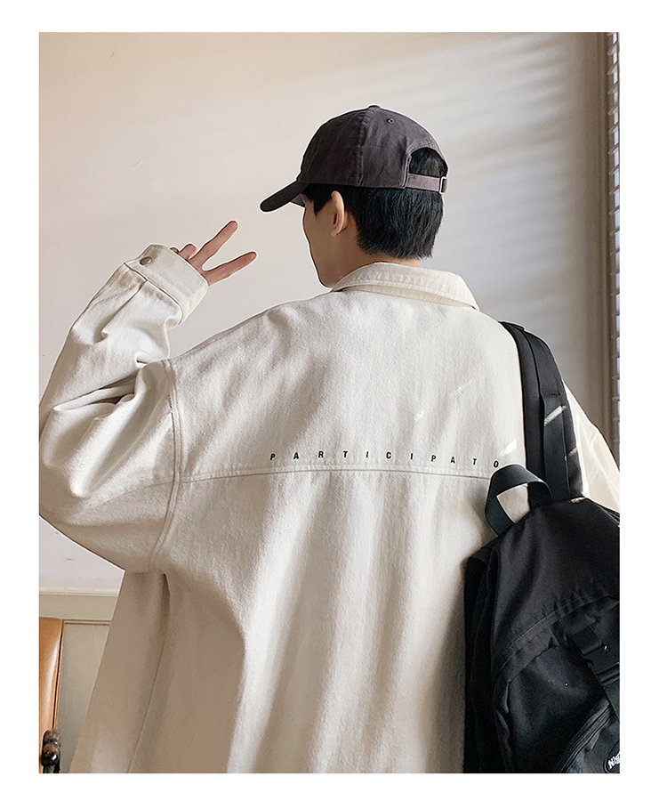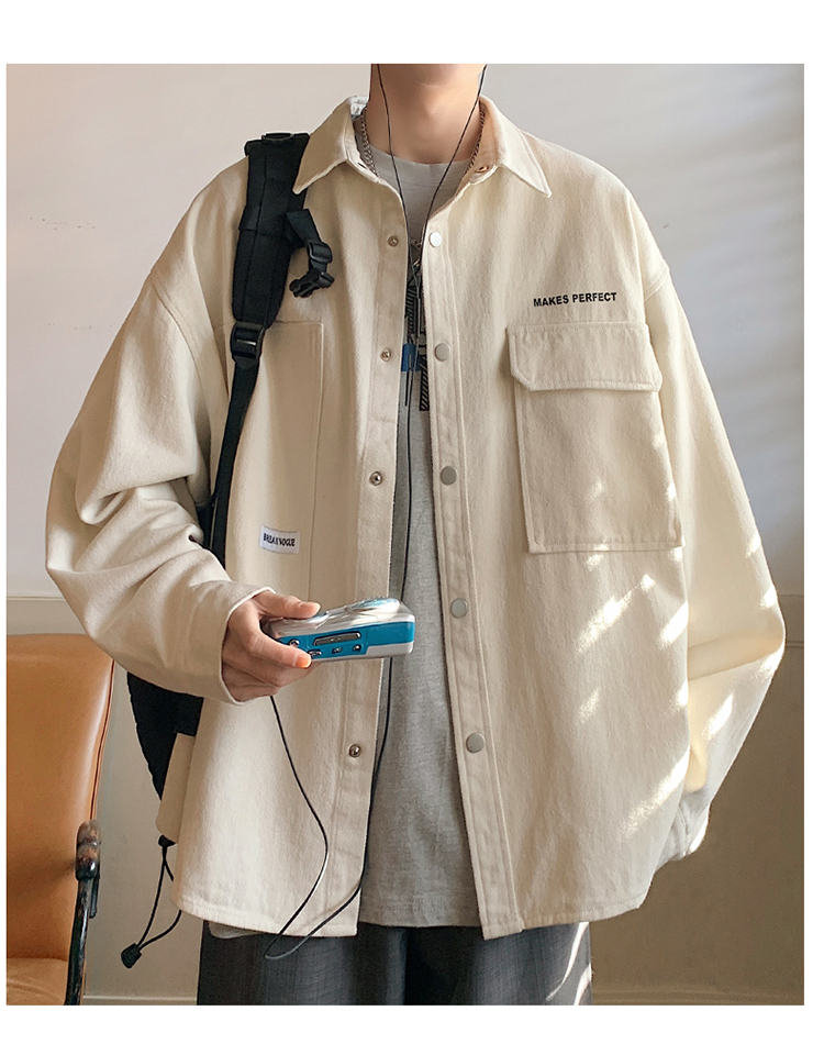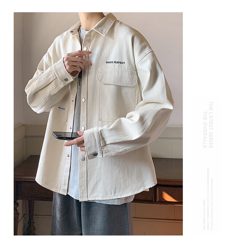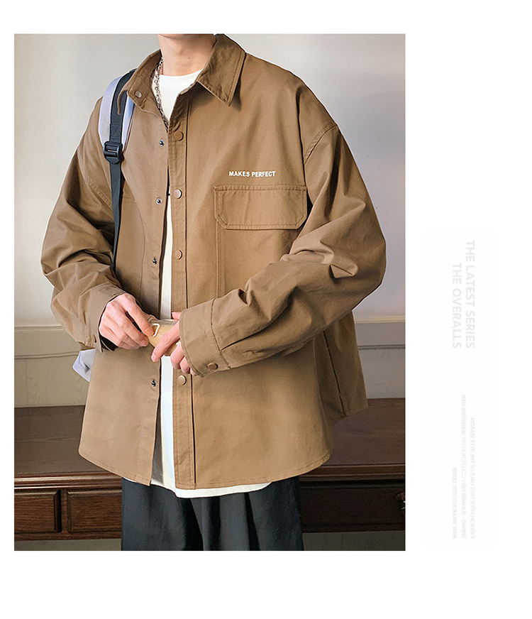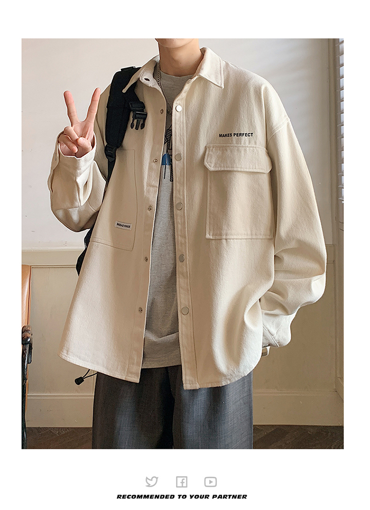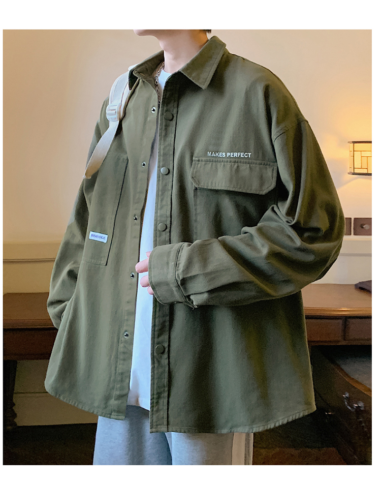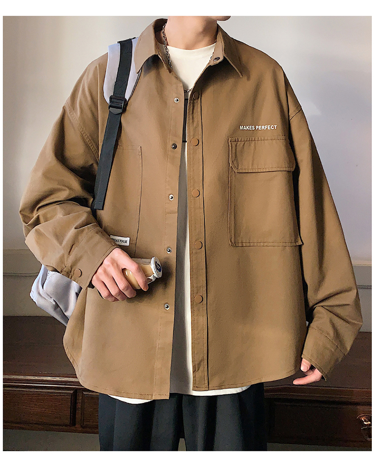 高級感重磅長袖襯衫男春秋情侶美式潮牌男生痞帥夾克襯衫工裝外套
