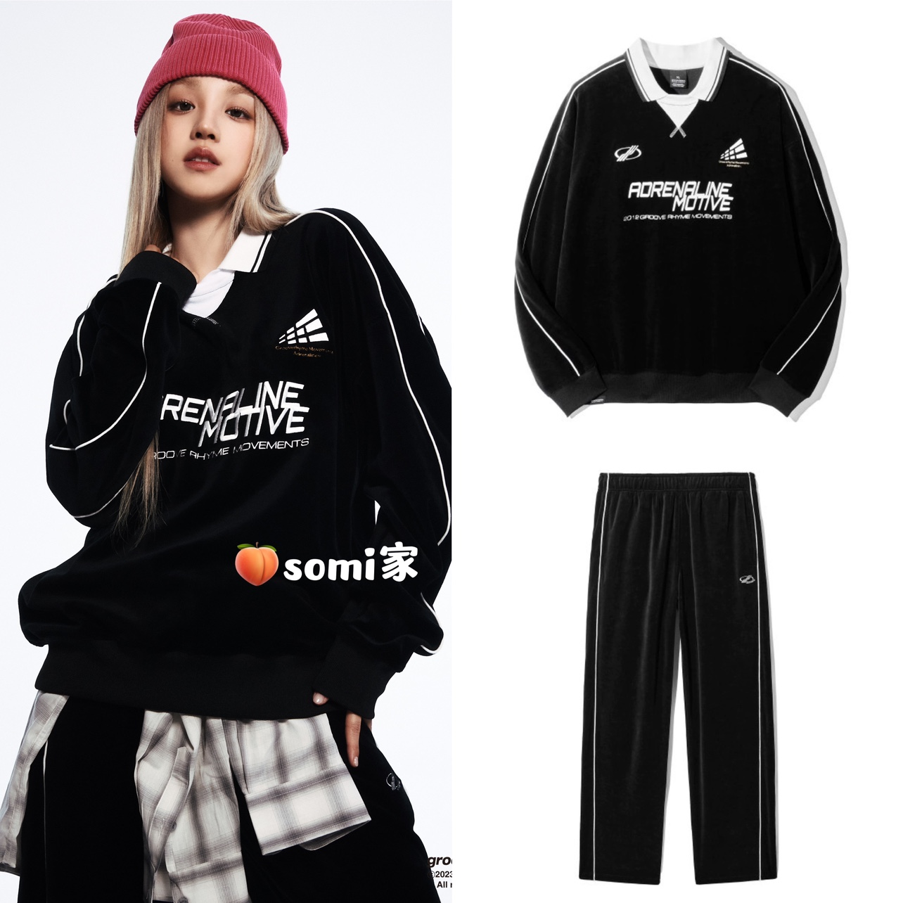 【送小卡】somi家 韓國grooverhyme學院風絲絨衛衣套裝宋雨琦同款