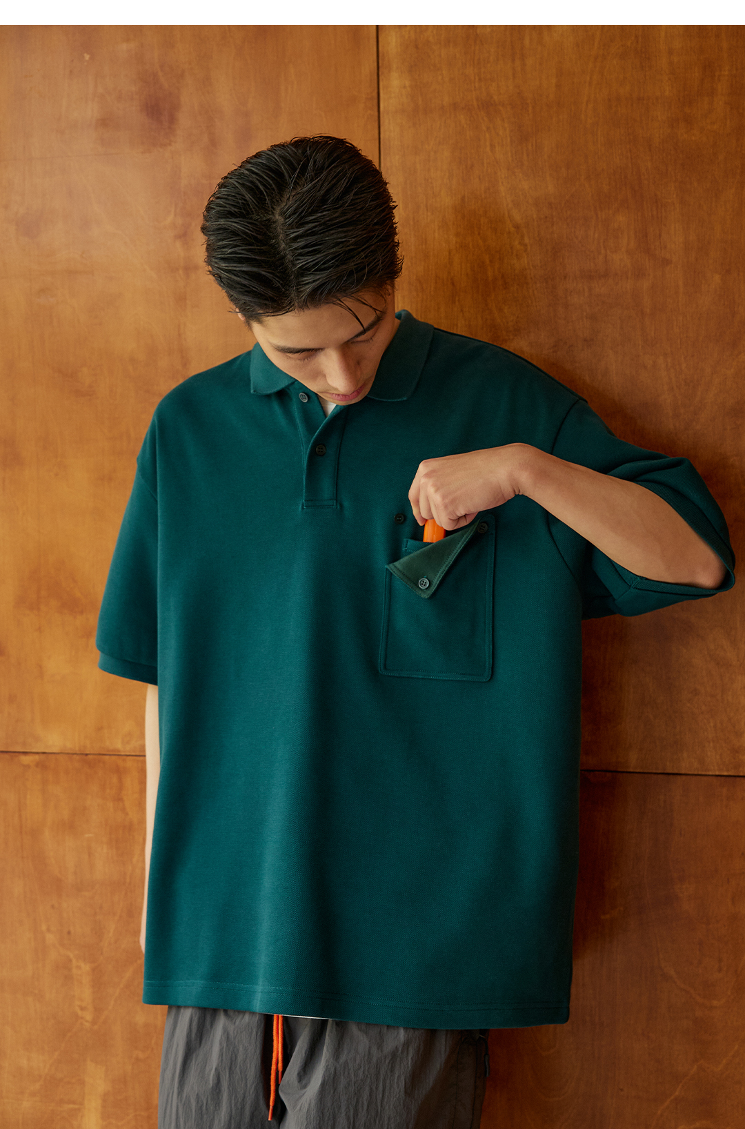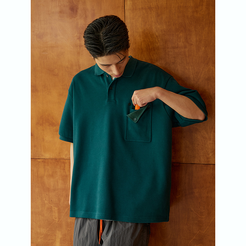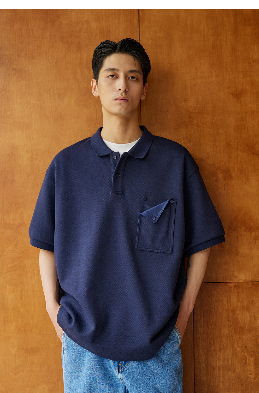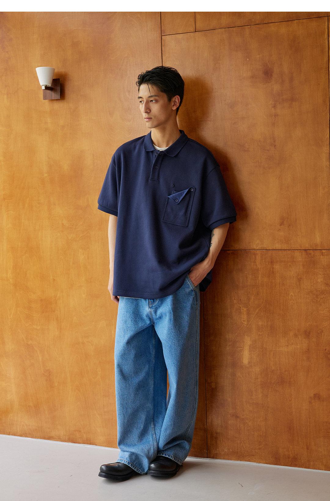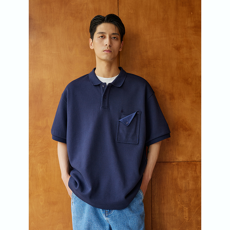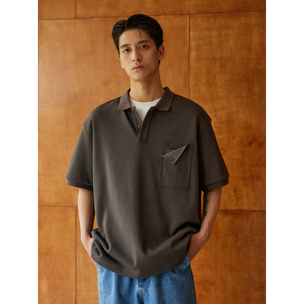 Crissrex Store NGOARMY 鈕釦口袋短袖Polo衫基礎寬鬆男女Cityboy