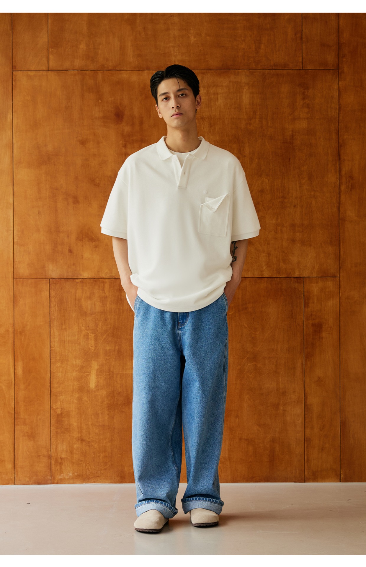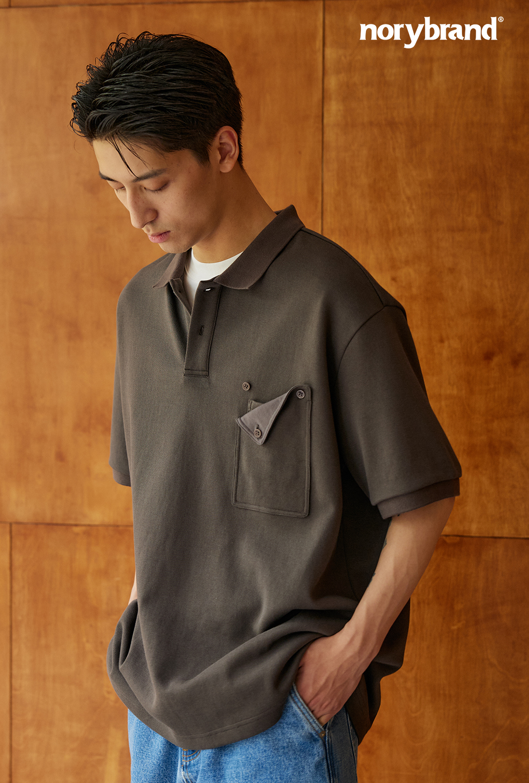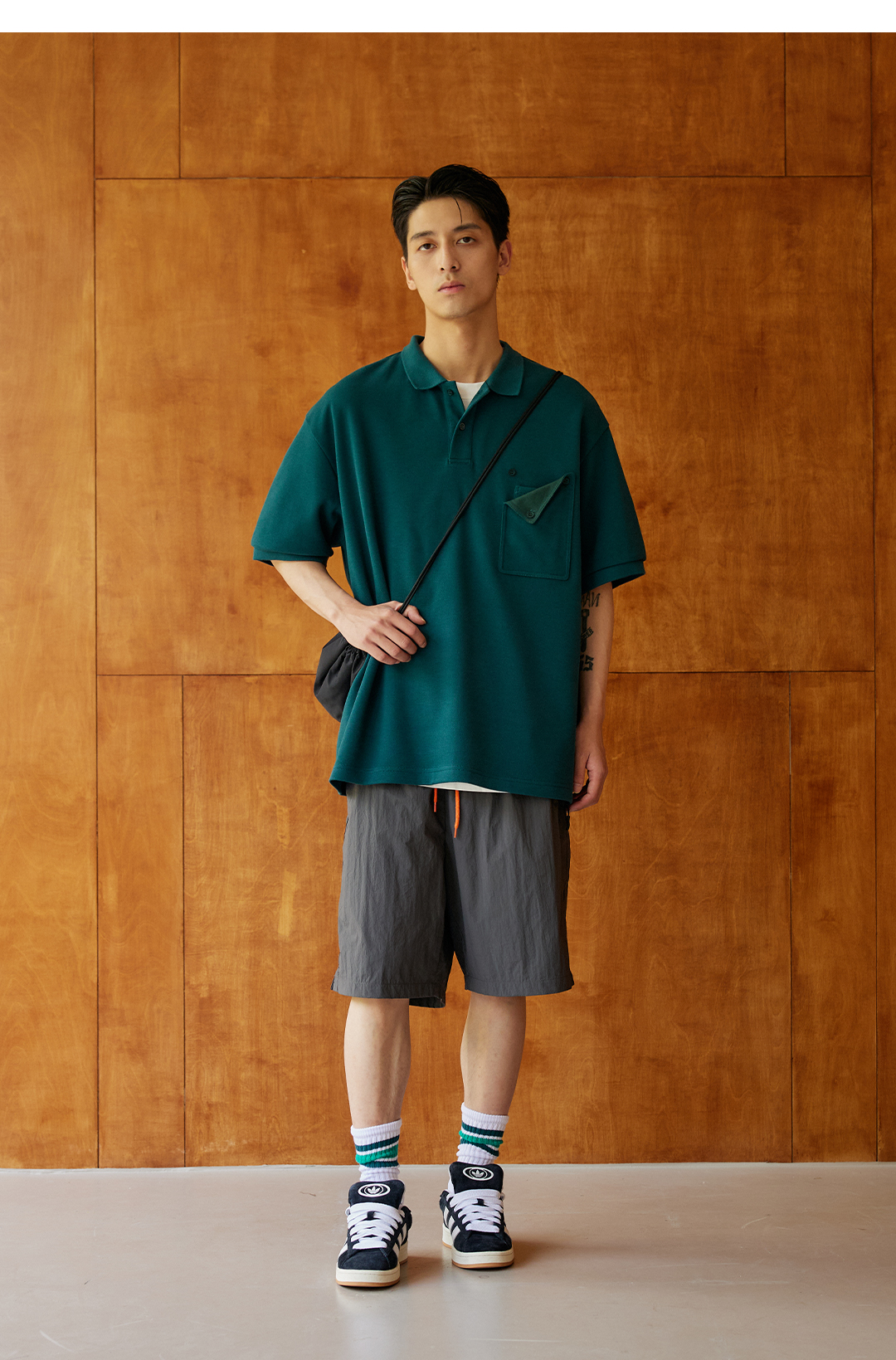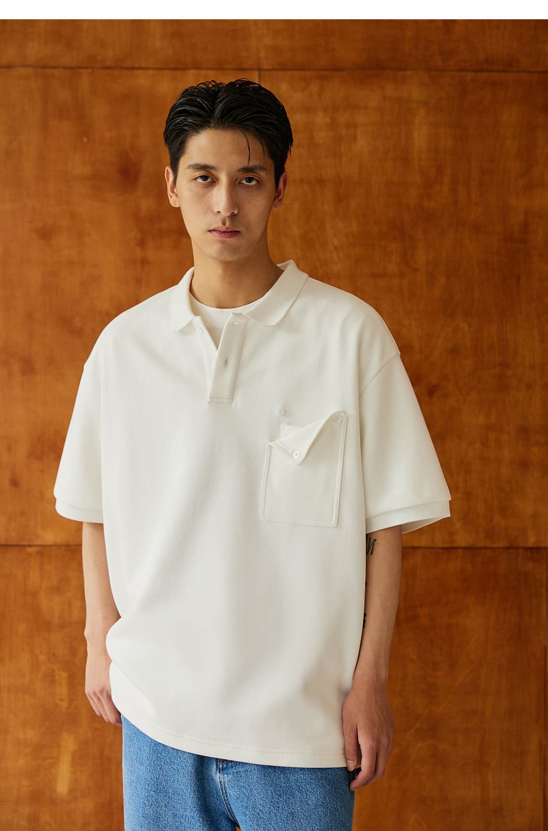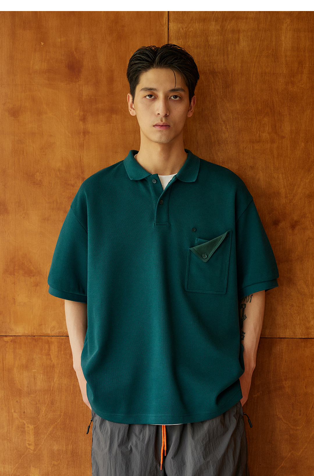 Crissrex Store NGOARMY 鈕釦口袋短袖Polo衫基礎寬鬆男女Cityboy