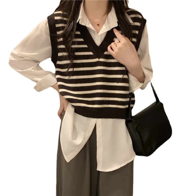 韩版条纹款简约百搭系列针织马甲女2022秋季上新短款显瘦毛衣马甲