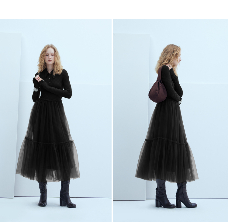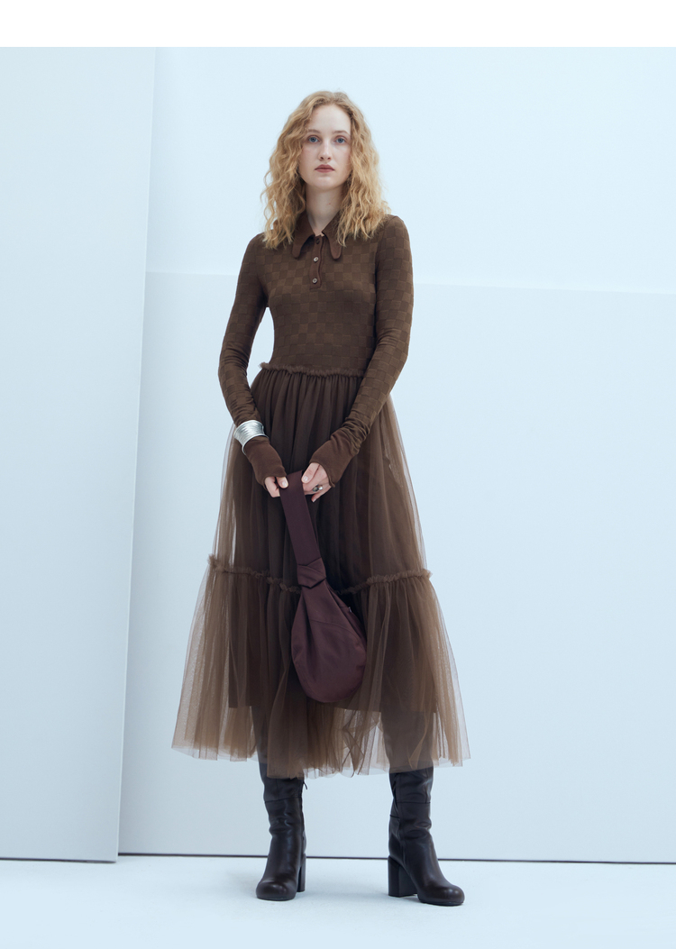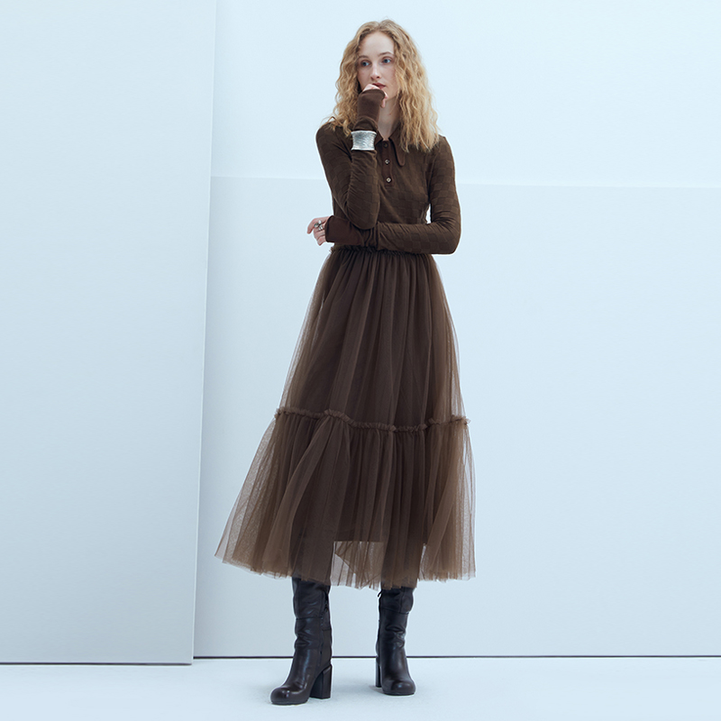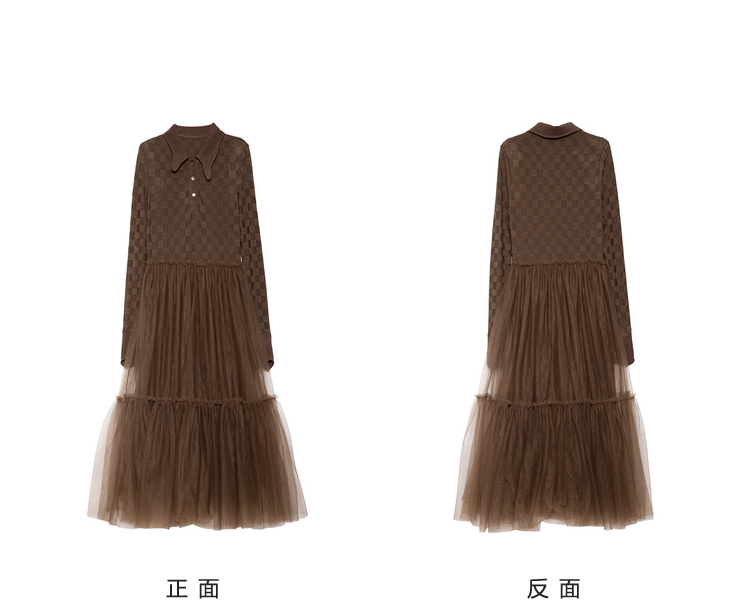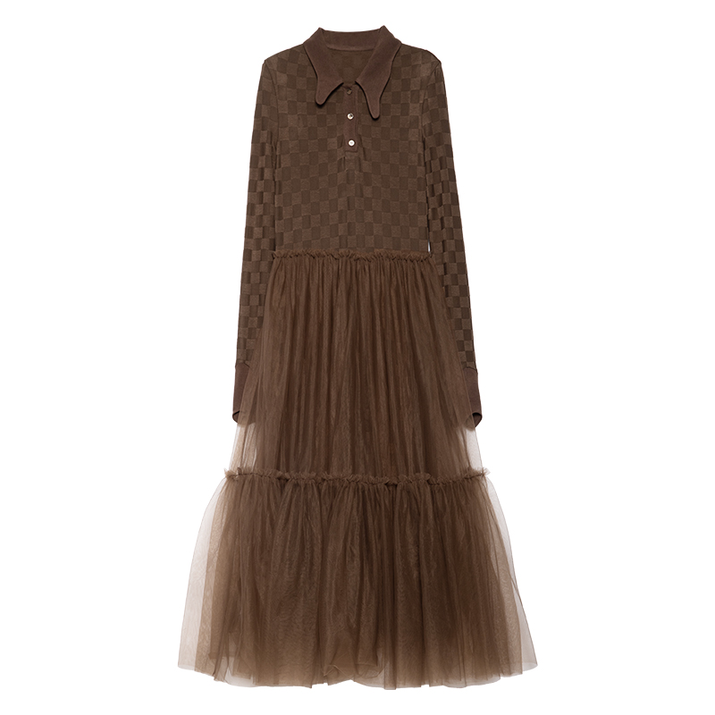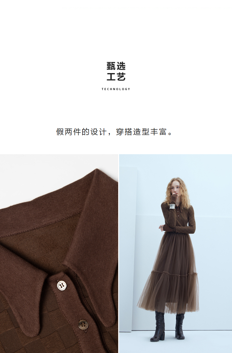 半圓原創設計2023春秋季新款假兩件半開式翻領針織洋裝輕盈