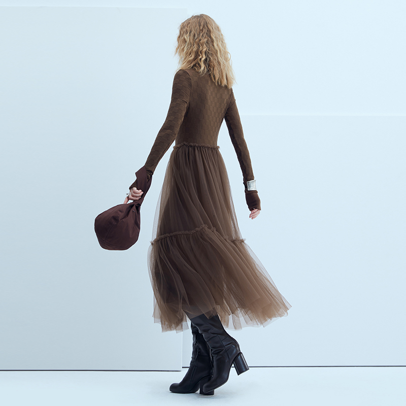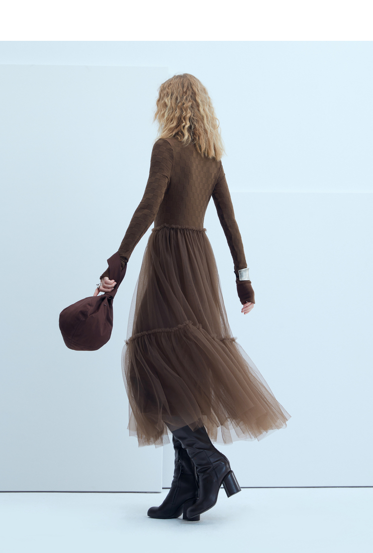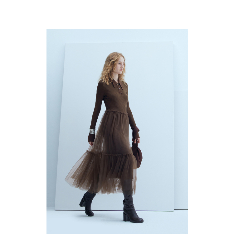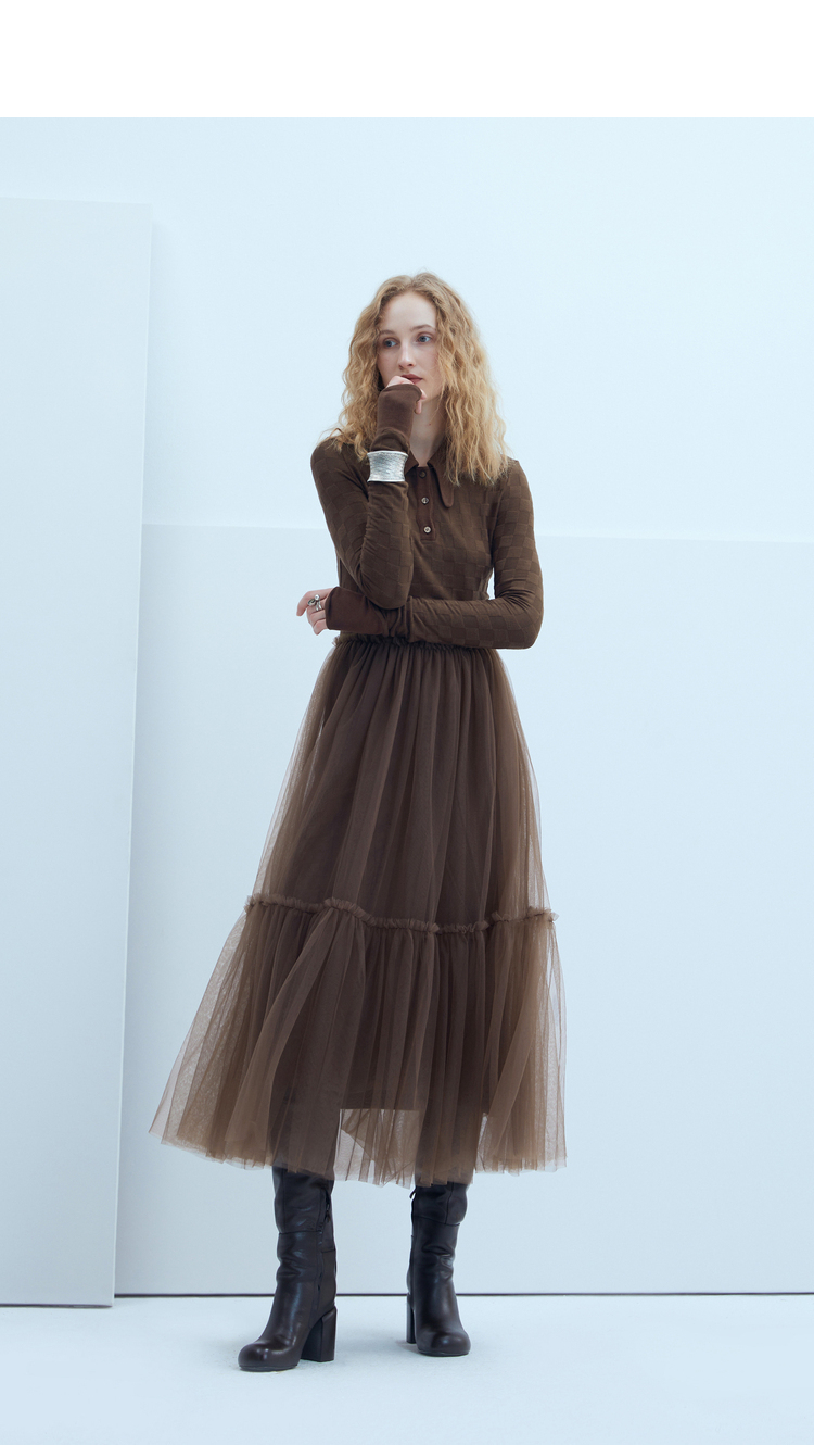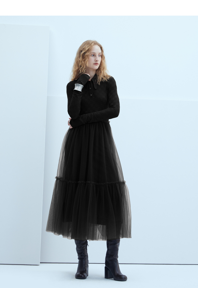 半圓原創設計2023春秋季新款假兩件半開式翻領針織洋裝輕盈