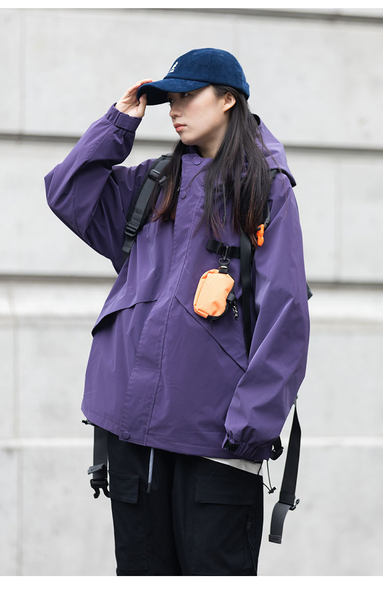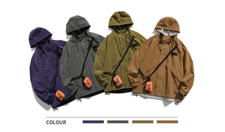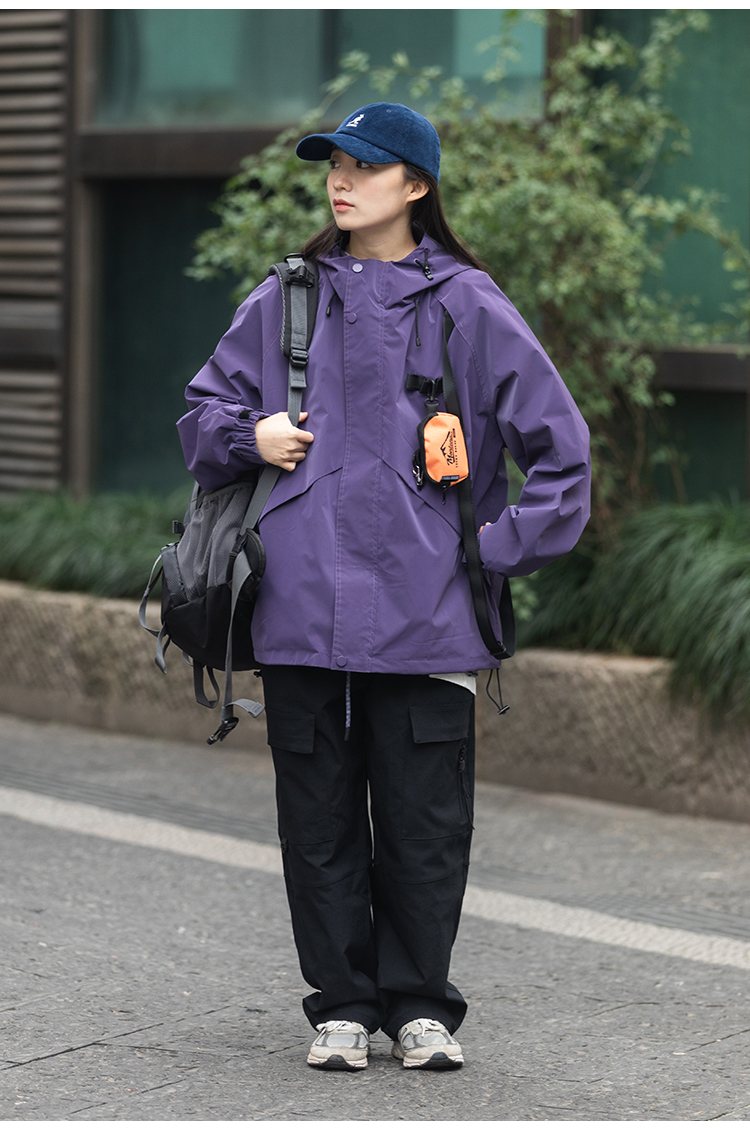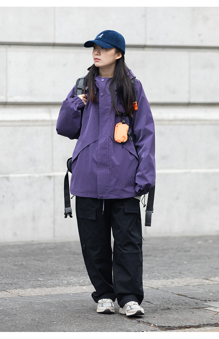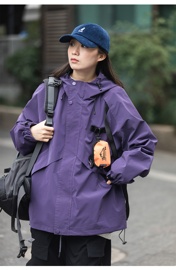 Focos(送包包)日系復古寬鬆男女連帽夾克外套衝鋒衣2023春新款