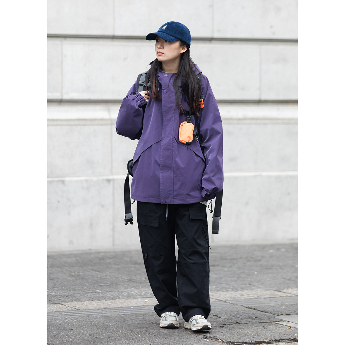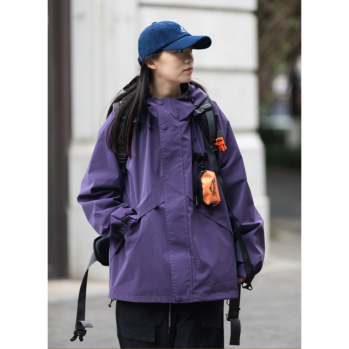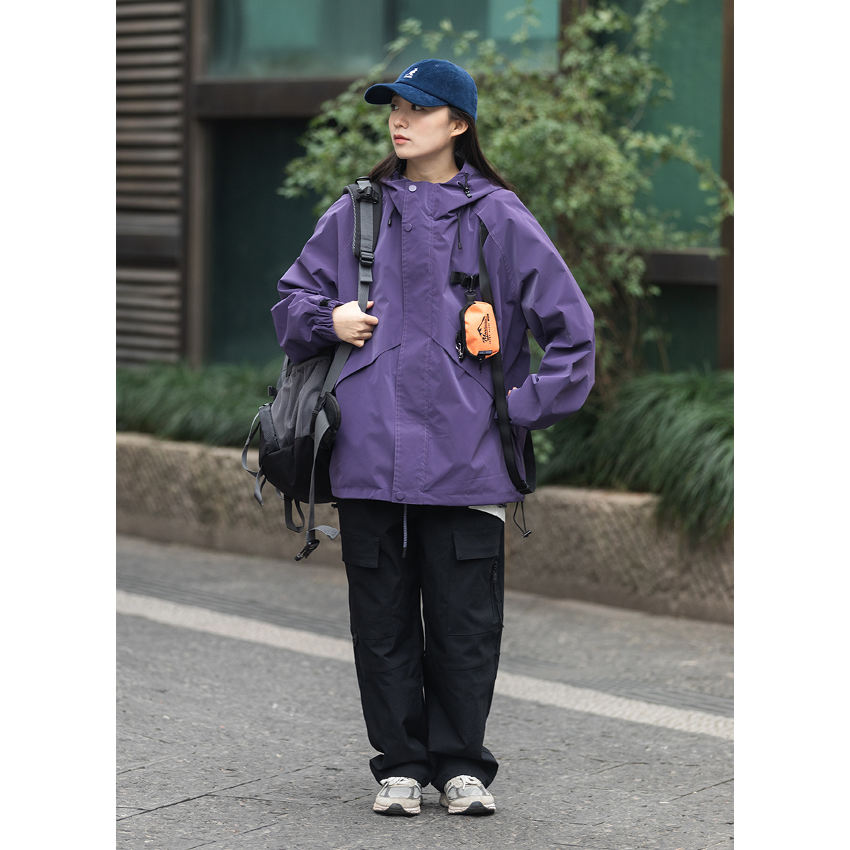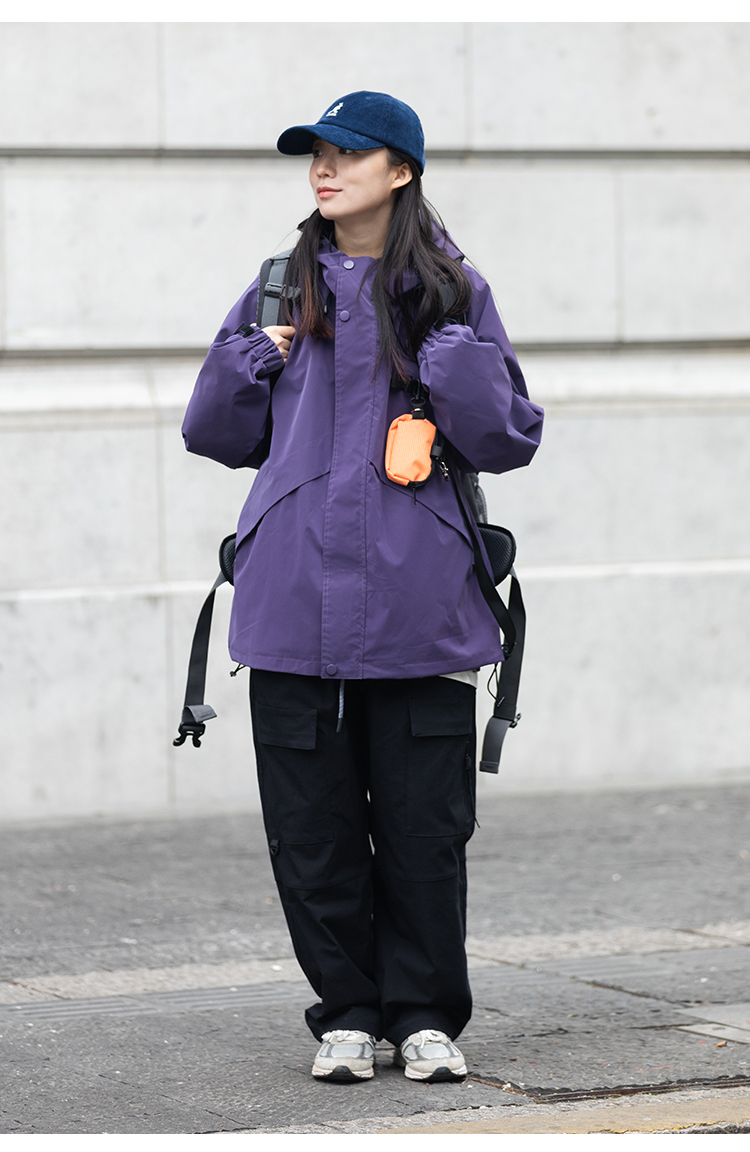Focos(送包包)日系復古寬鬆男女連帽夾克外套衝鋒衣2023春新款