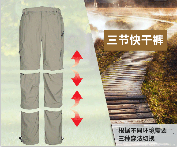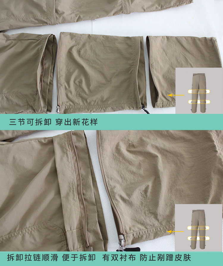 夏季戶外登山釣魚防曬三節可拆卸速乾褲七分九分短褲多口袋透氣薄