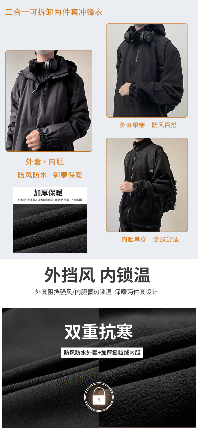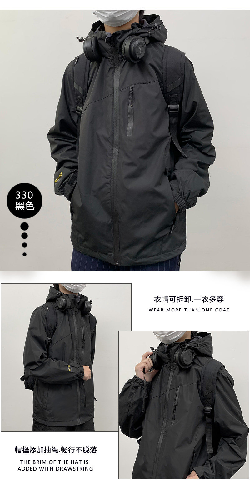 木村叔dk美式衝鋒衣男款外套女春秋款戶外防風防水三合一可拆卸