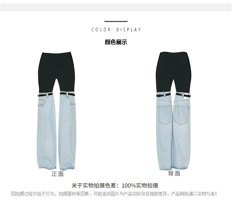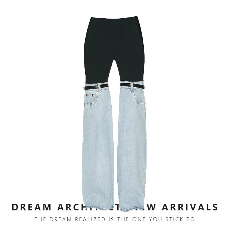 設計感小眾美式復古皮帶高腰直筒闊腿拖地牛仔褲長褲喇叭褲子女秋