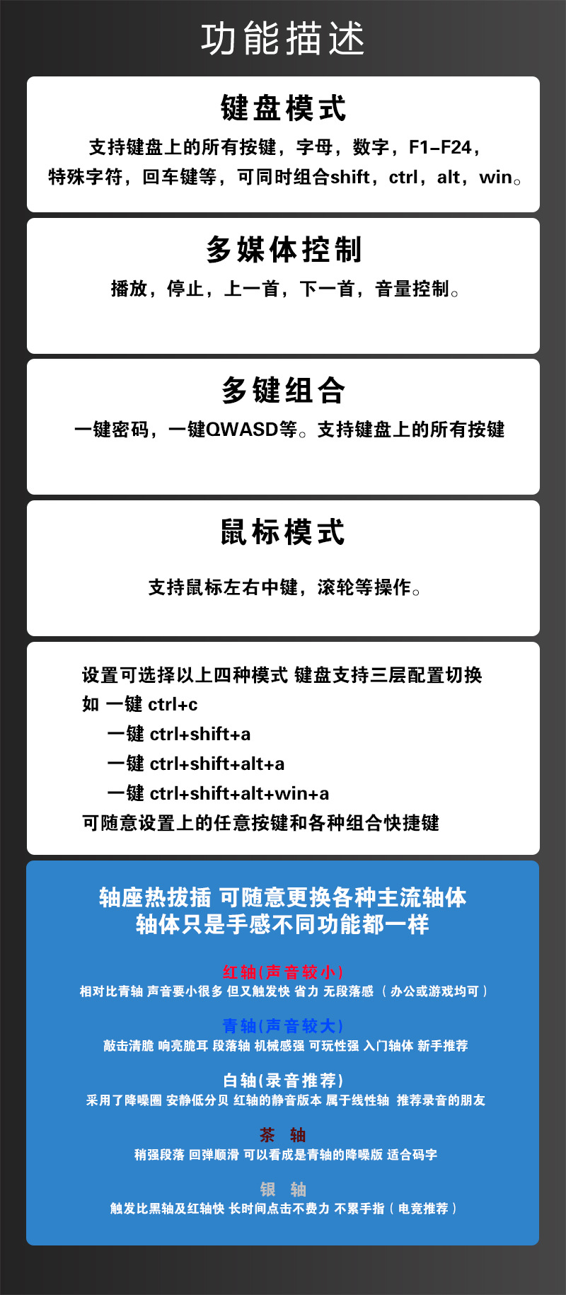 蓝牙有线无线自定义键盘宏快捷键电竞游音迷你机械客制化热插拔
