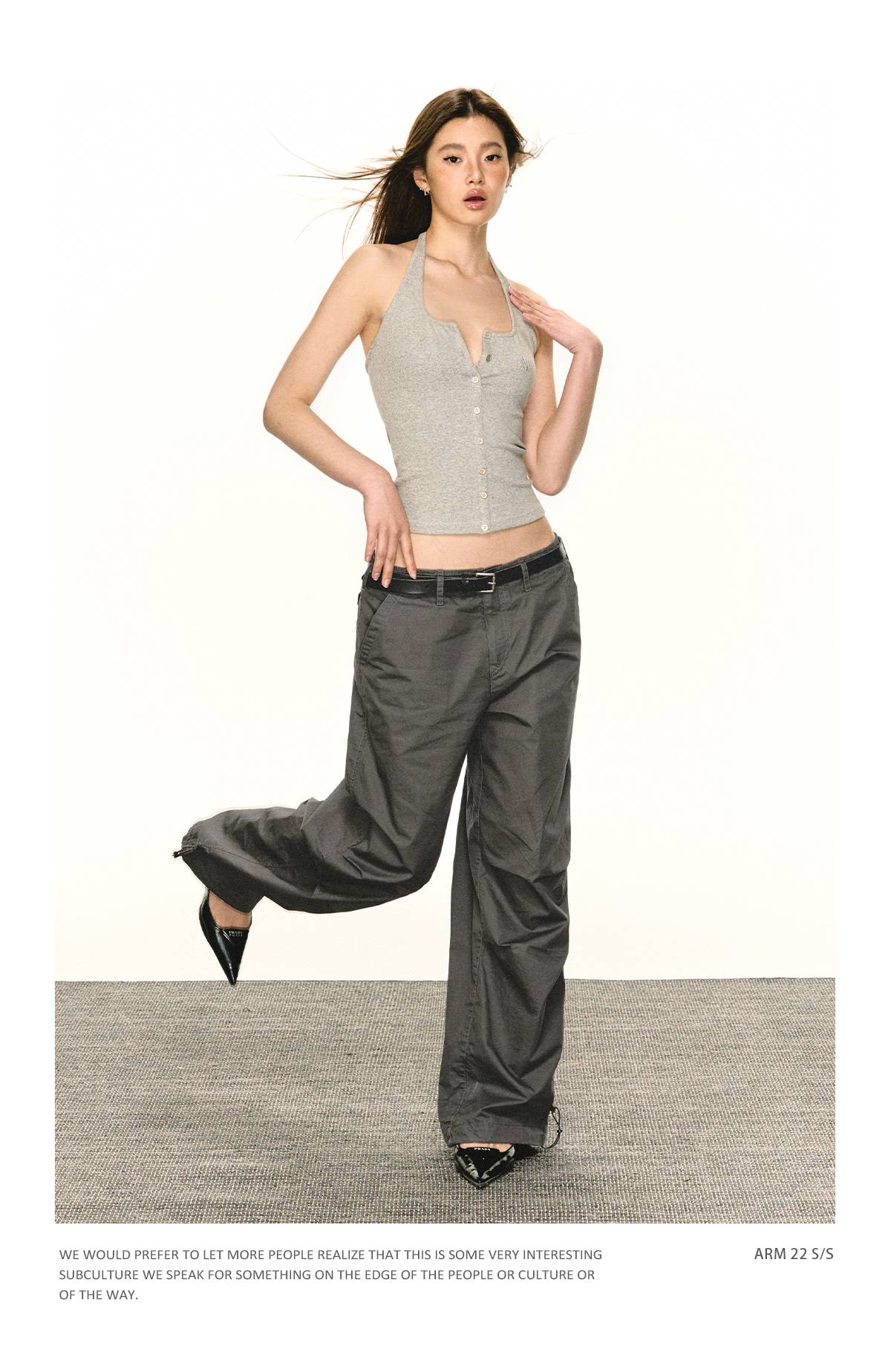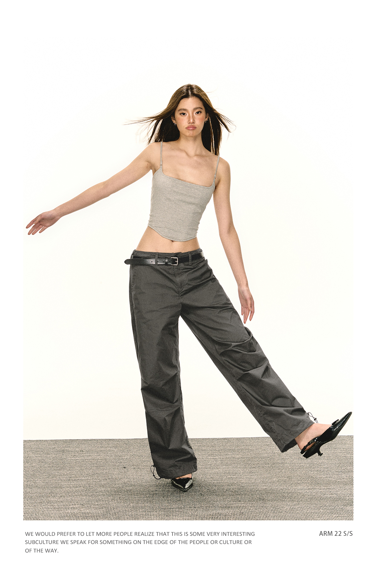 Ariseism美式復古寬鬆休閒工作服褲女2023夏季新款辣妹薄款傘兵褲子
