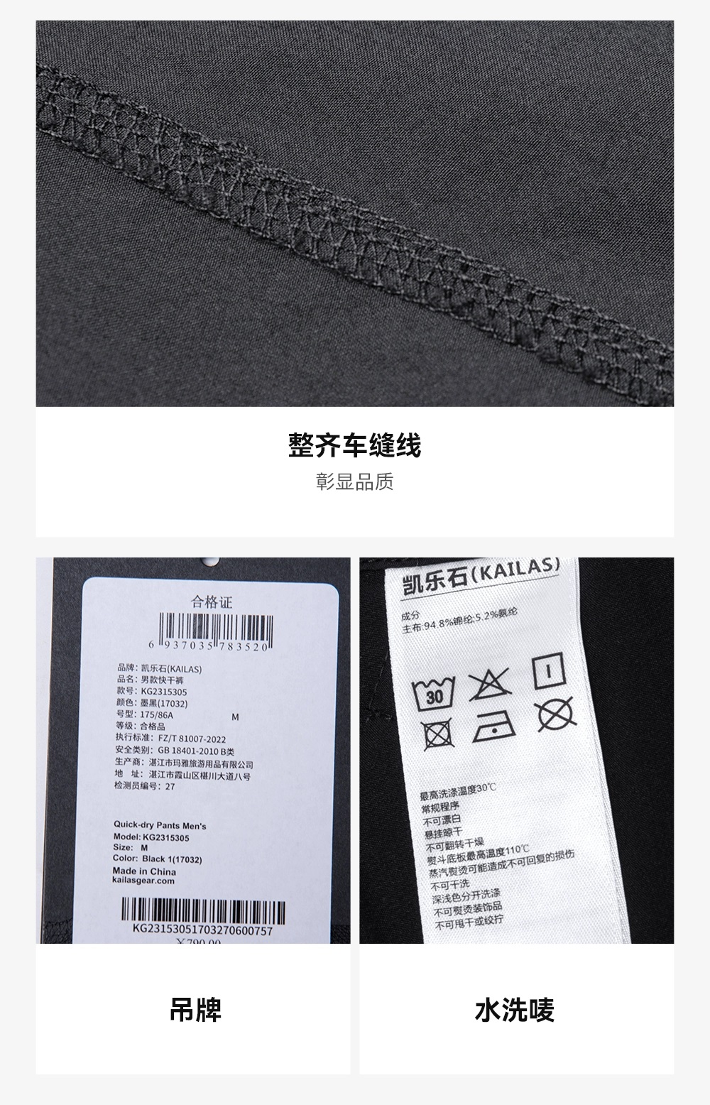 23款凱樂石男式春夏束腳九分速乾褲輕薄透氣彈力快乾褲KG2315305