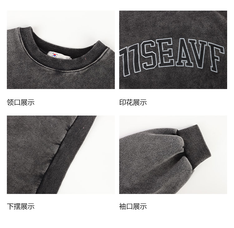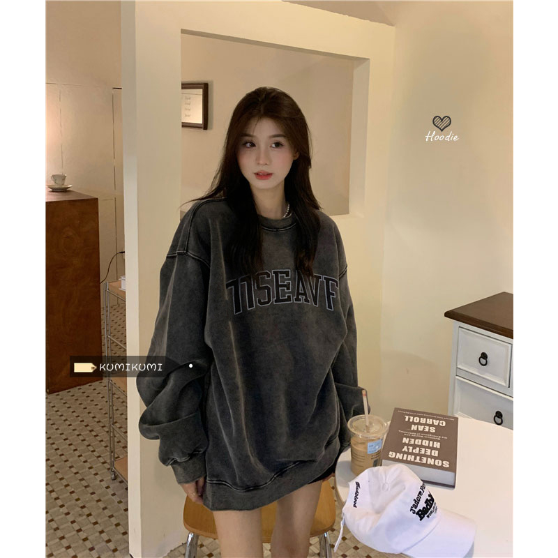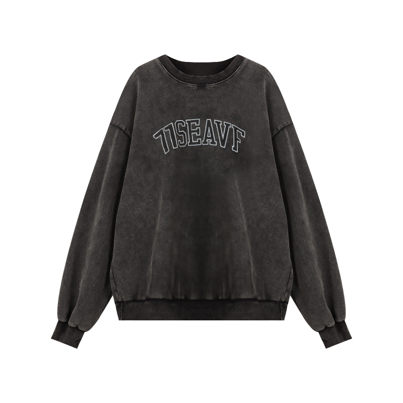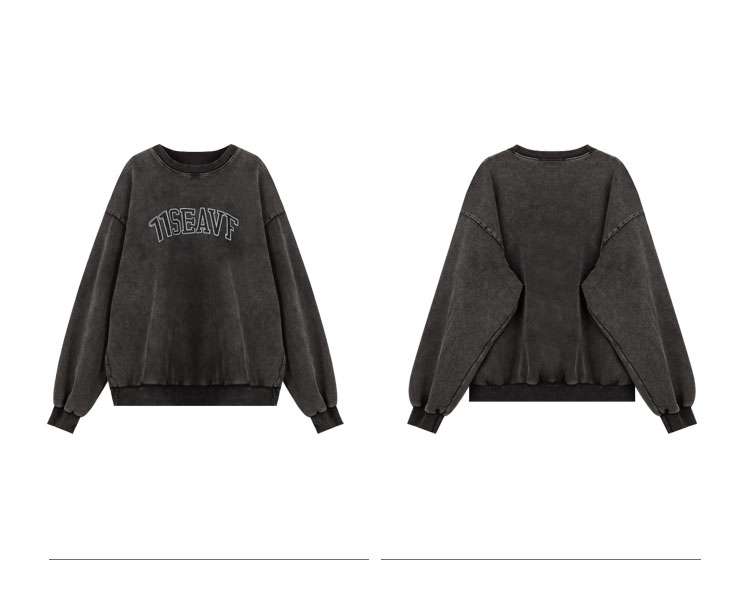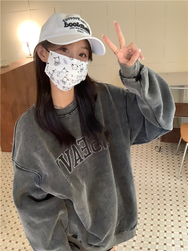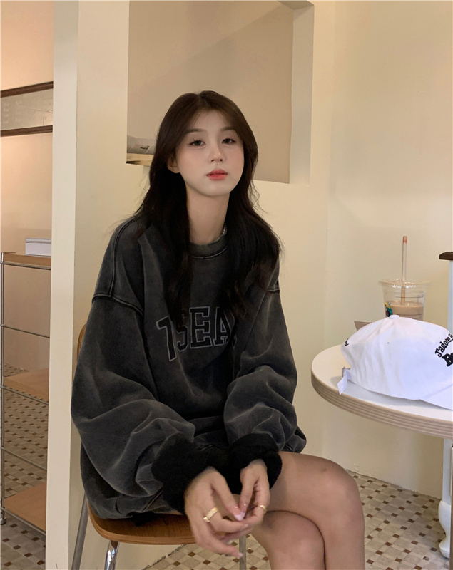 美式復古做舊休閒百搭厚棉T外套女秋季圓領無帽套頭寬鬆中長版上衣
