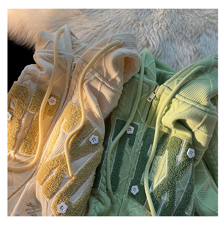 Jew4room奶綠色美式藝術生復古外套ins男生連帽開衫情侶寬鬆衛衣